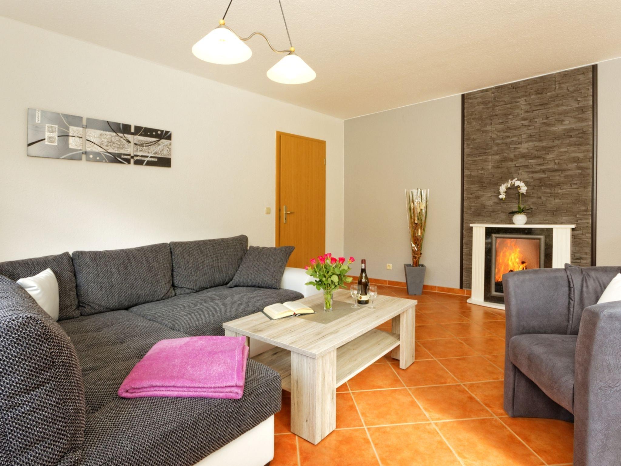 Große Wohnung im 1. OG mit 1 Schlafzimmer mit Babyreisebett und 1 aufbettbaren Wohnzimmer und WLAN.