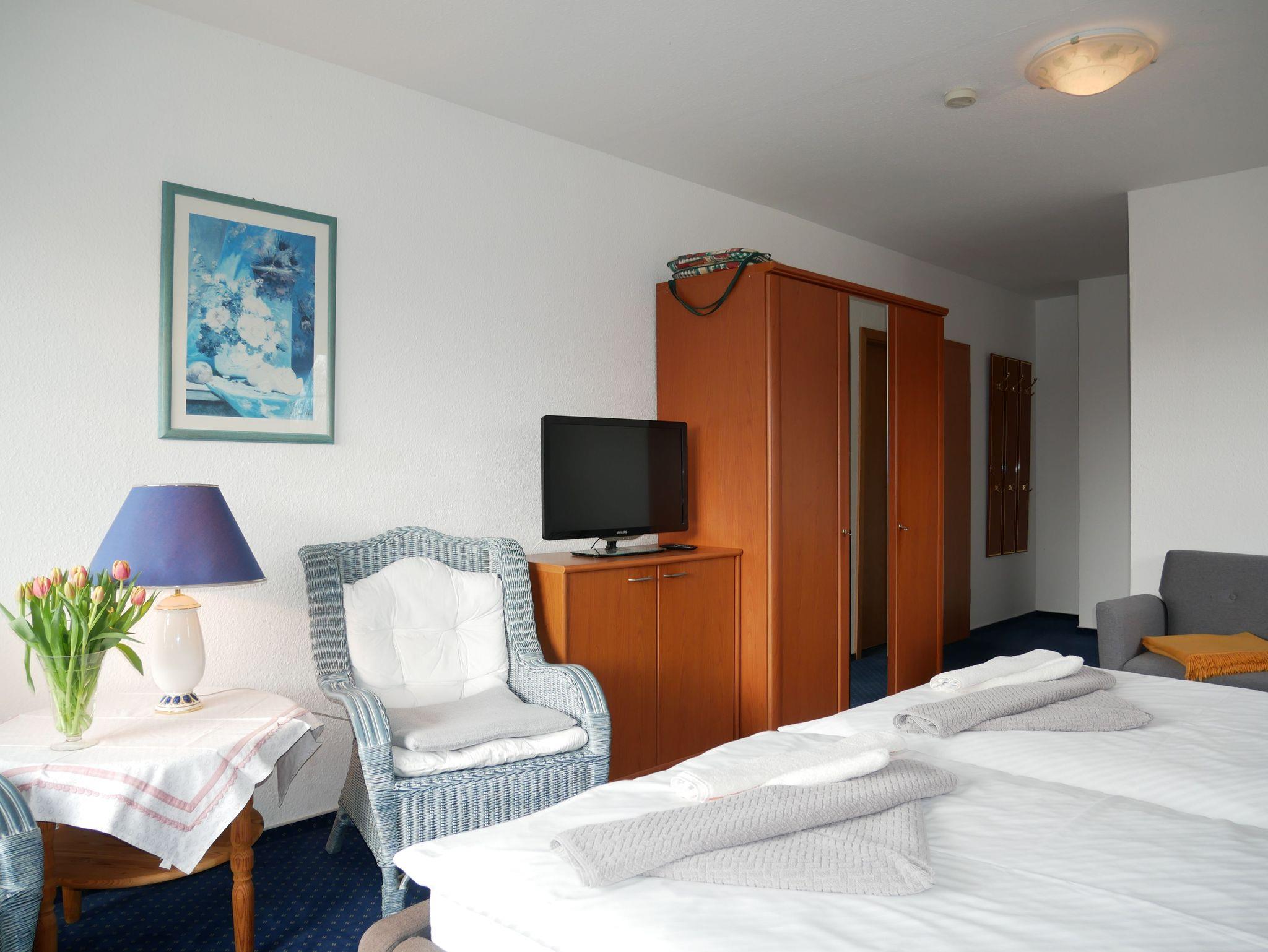 Das Doppelzimmer ist mit einem Doppelbett, einer Sitzecke, einen Flachbild-TV und einen Radio ausgestattet.