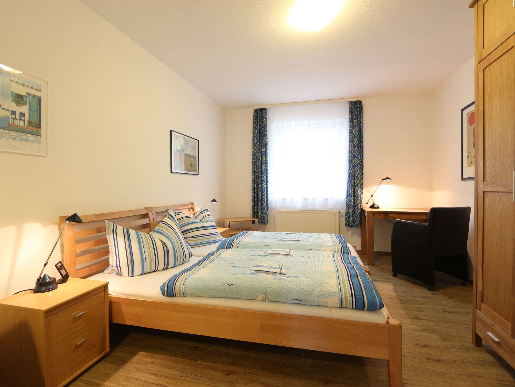 • Ein Schlafzimmer mit zwei Einzelbetten (je 90 x 200 cm), 2 Sessel und einem Kleiderschrank.