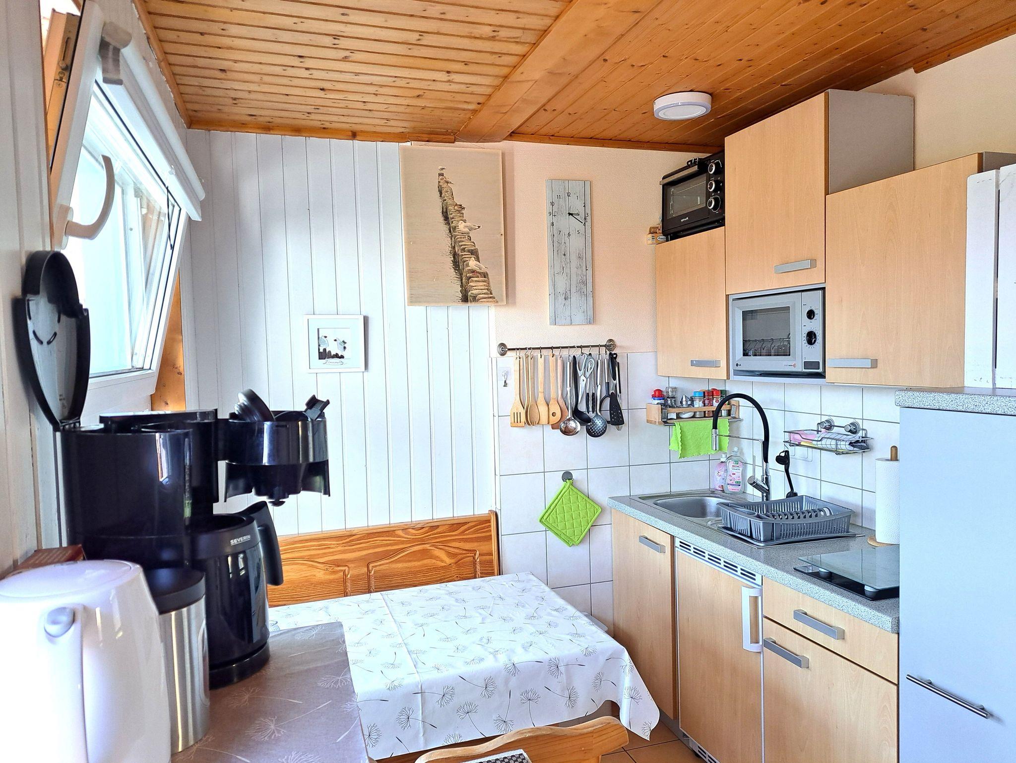 Geräumiger Bungalow mit 2 Schlafzimmern und einem Wohnraum mit Essecke und Küchenzeile. Auf der Terrasse stehen Ihnen Gartenmöbel & ein Strandkorb zum Relaxen zur Verfügung.