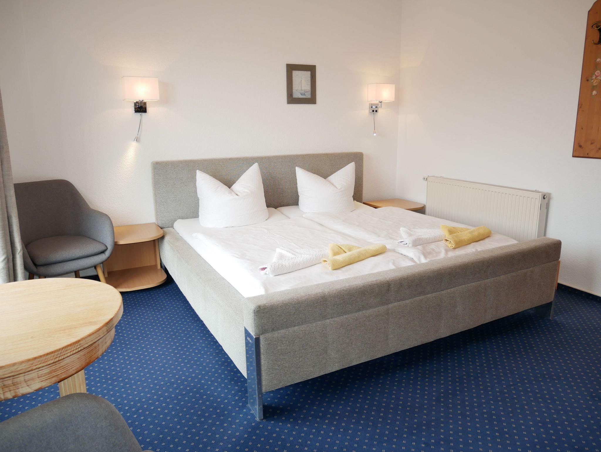Das Doppelzimmer ist mit einem Doppelbett, einer Sitzecke, einem Flachbild-TV und einem Radio ausgestattet.