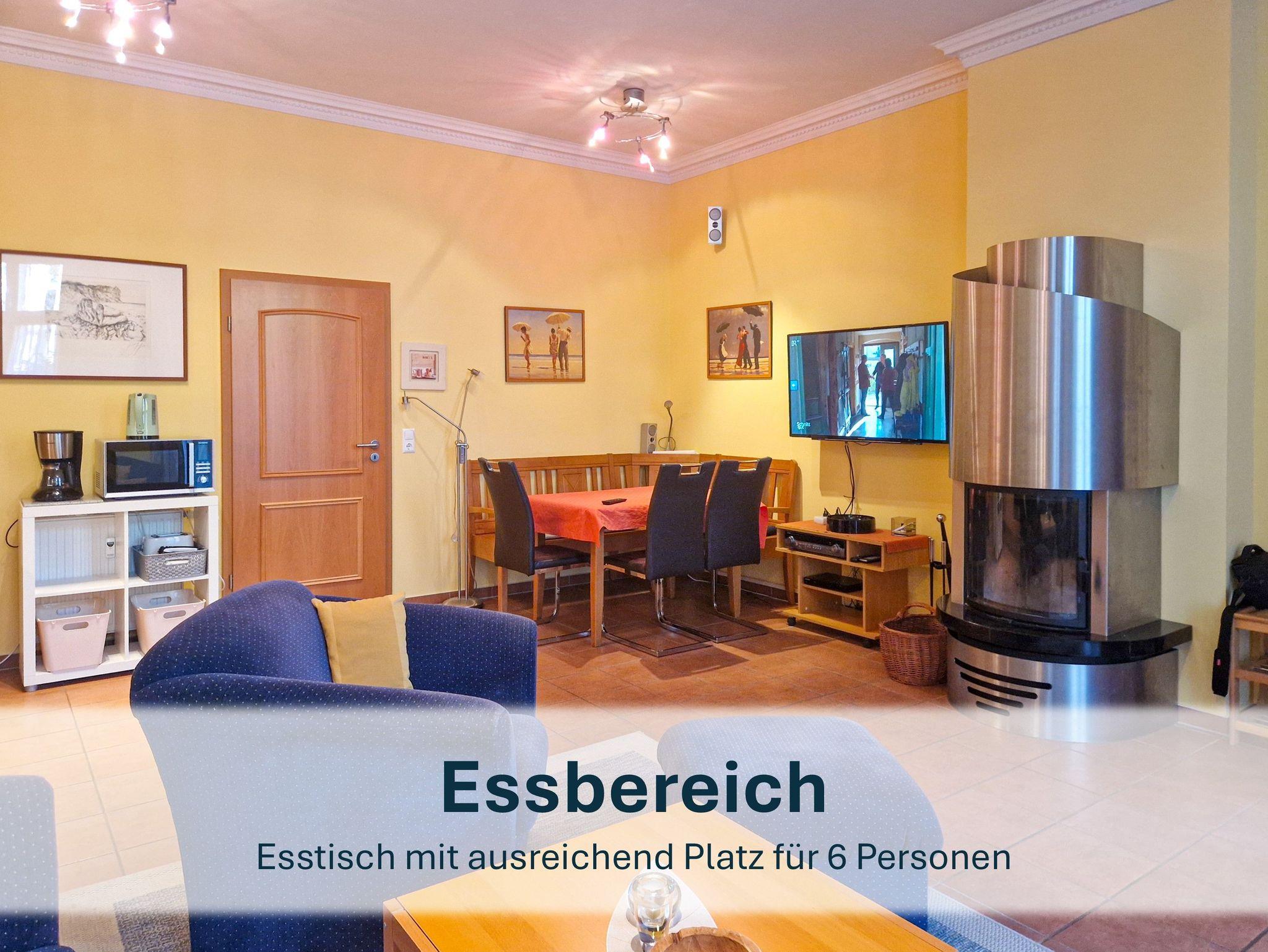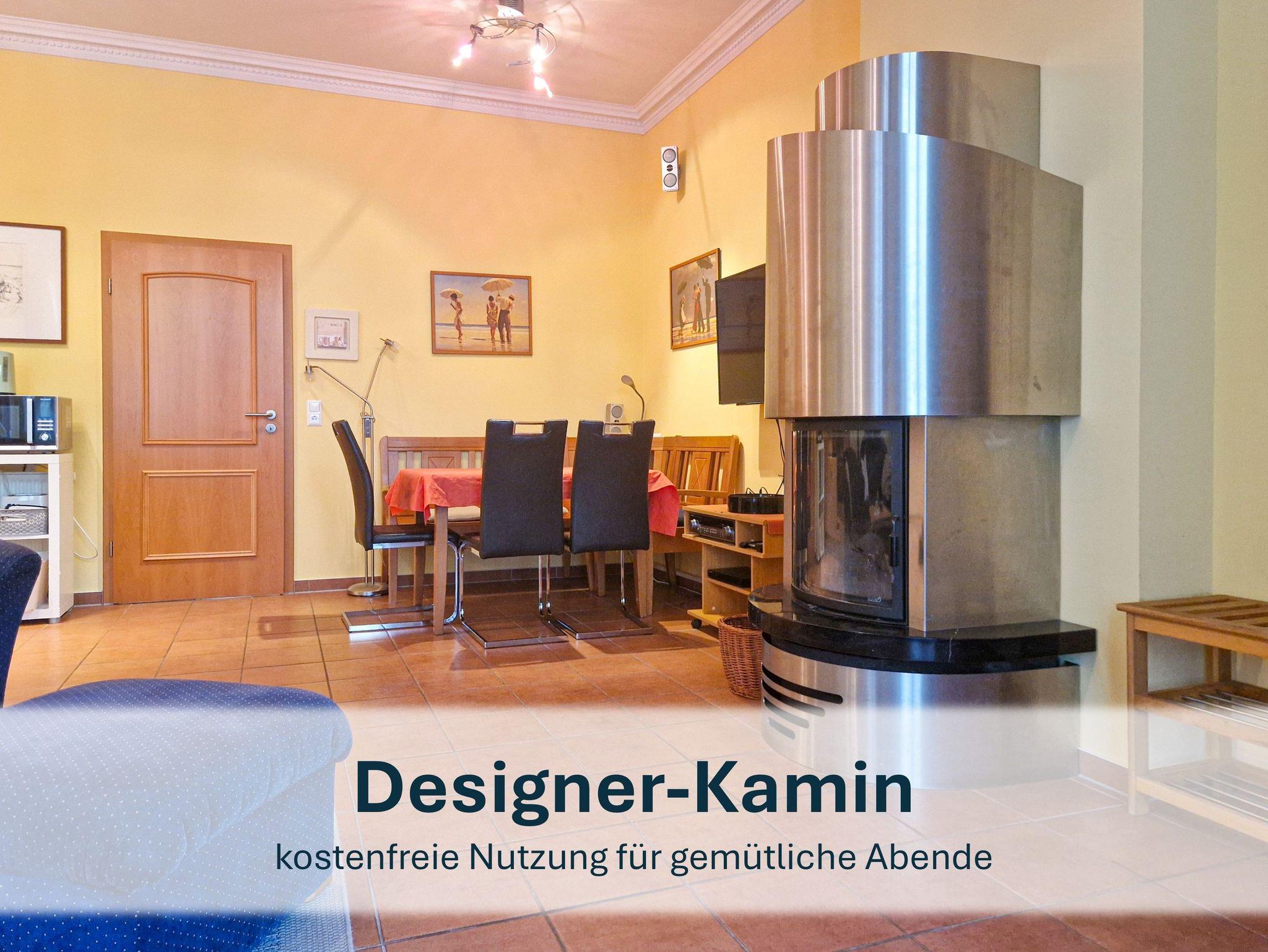 Die stilvolle Wohnung im Erdgeschoss bietet Ihnen auf großzügigen 65 m² höchsten Komfort. Das großzügige Wohn-/Esszimmer besticht durch eine bequeme Sitzecke mit Doppelbettschlafsofa für 2 Personen und einer Essecke. Der Designer-Kamin sorgt für eine gemütliche Atmosphäre, während die hochwertige Technik mit Surround-Anlage und großem Flachbildfernseher für echtes Kinofeeling sorgt.