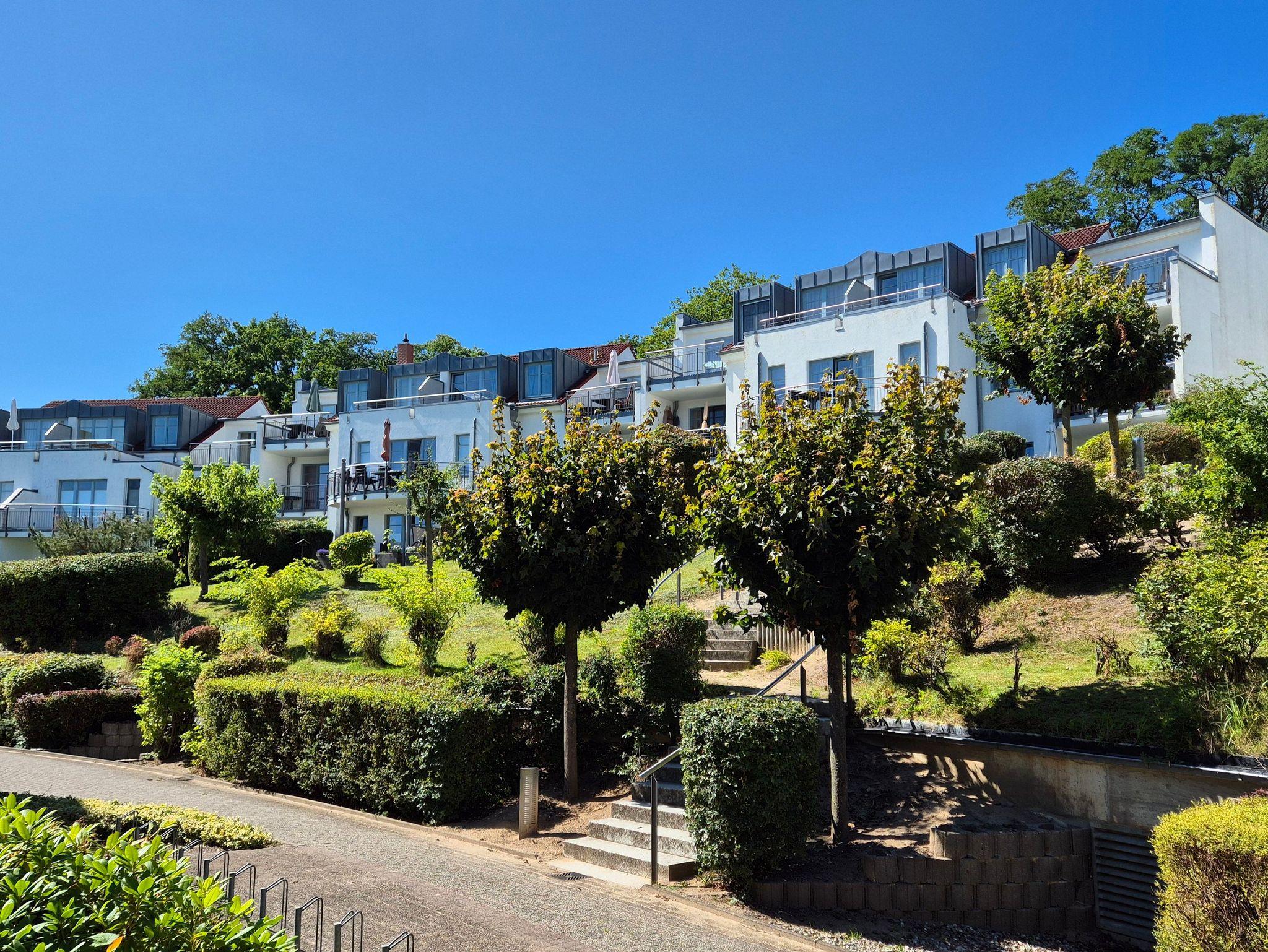 Die Ferienwohnung Nr. 32 mit 1 Terrasse befindet sich im Erdgeschoss der Residenz Bellevue in 17454 Zinnowitz, Heimweg 11 und bietet einen herrlichen Blick auf das Umfeld und die Landschaft.