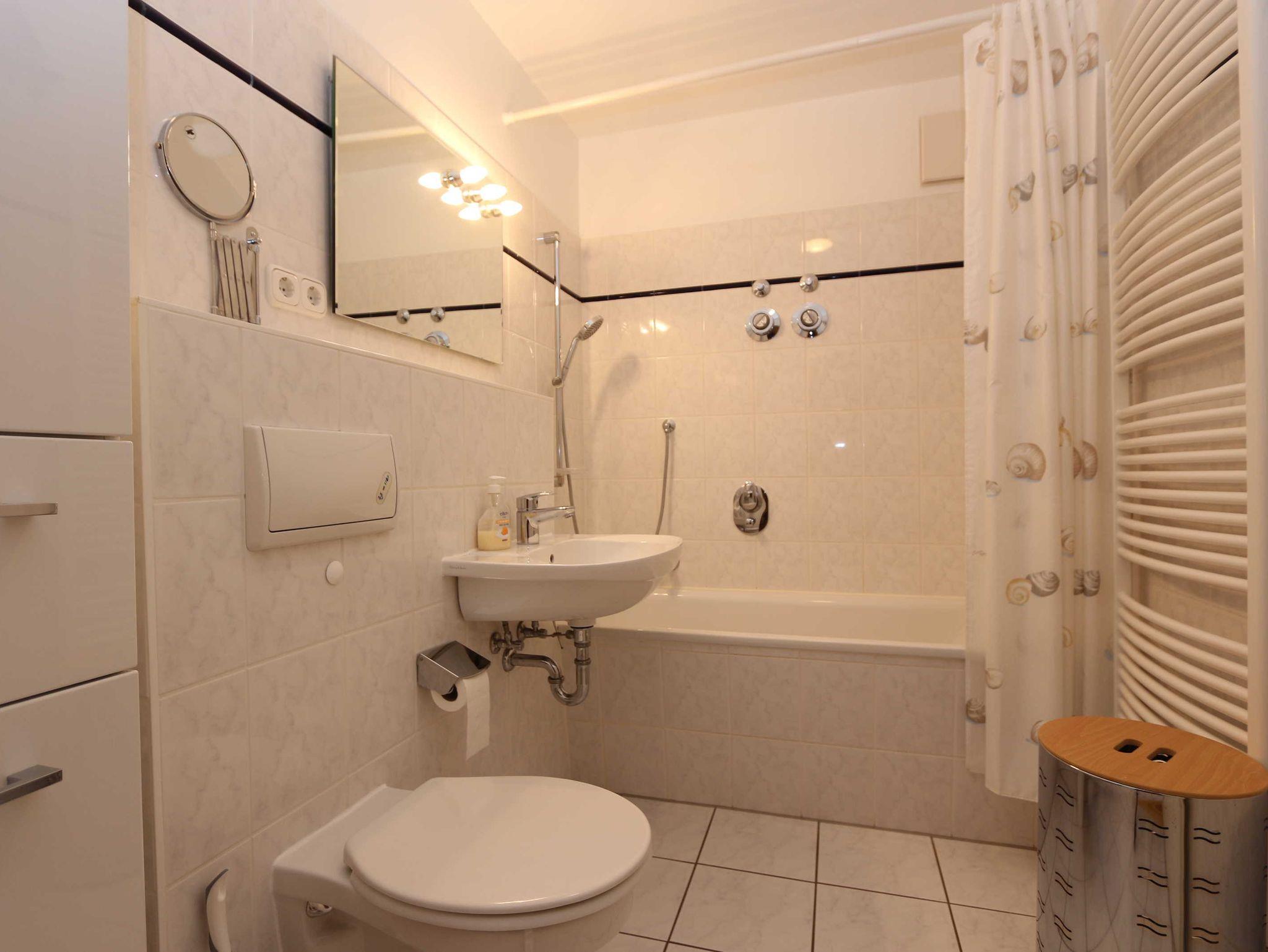 • Bad mit Badewanne und Handtuchtrockenheizkörper.