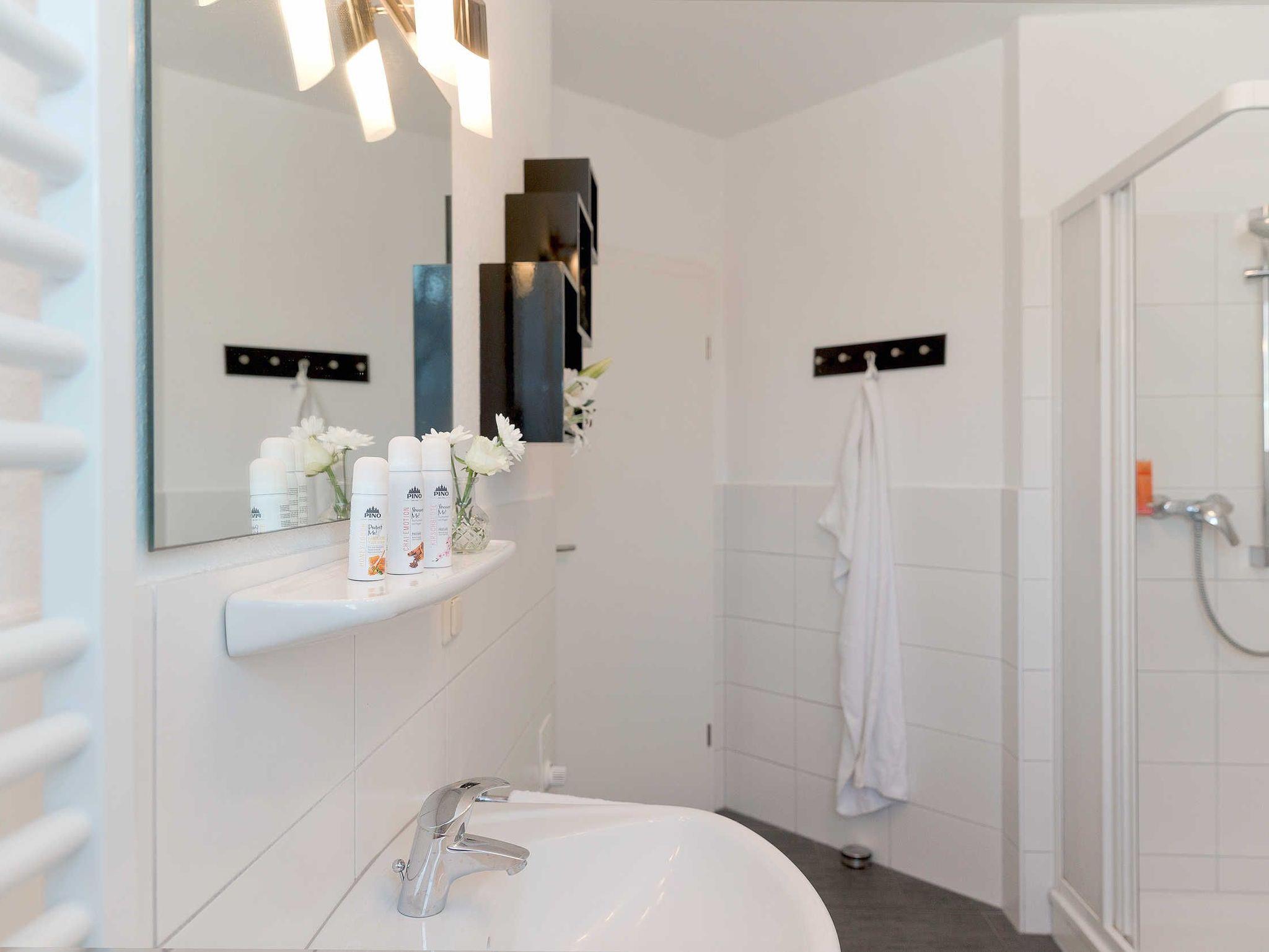 Das Badezimmer ist mit Dusche, WC und Waschmaschine ausgestattet. Vom sonnigen Balkon aus können Sie entspannte Stunden im Freien genießen. Ein eigener PKW-Stellplatz steht Ihnen ebenfalls zur Verfügung. Die Wohnung ist eine Nichtraucherunterkunft, Haustiere sind nicht erlaubt.