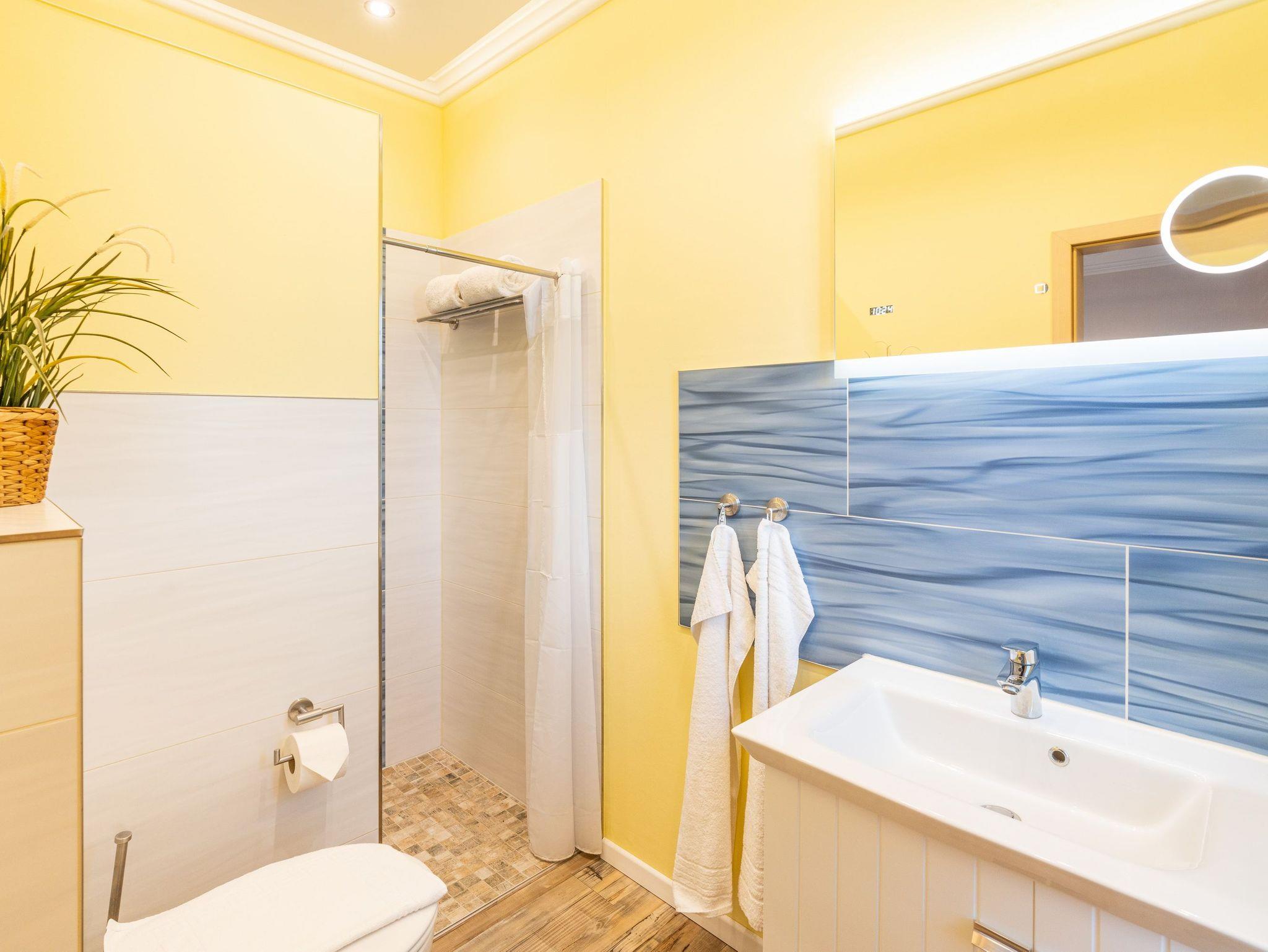 Damit Sie Ihre wohlverdiente Urlaubszeit bereits am Anreisetag in vollen Zügen genießen können ? haben wir das Bett für Sie und das für Ihre lieben Mitreisenden bereits bezogen und ein Duschtuch sowie ein kleines Handtuch bereitgelegt. Das Bad verfügt über Waschbecken, Dusche, WC und einem Haartrockner.