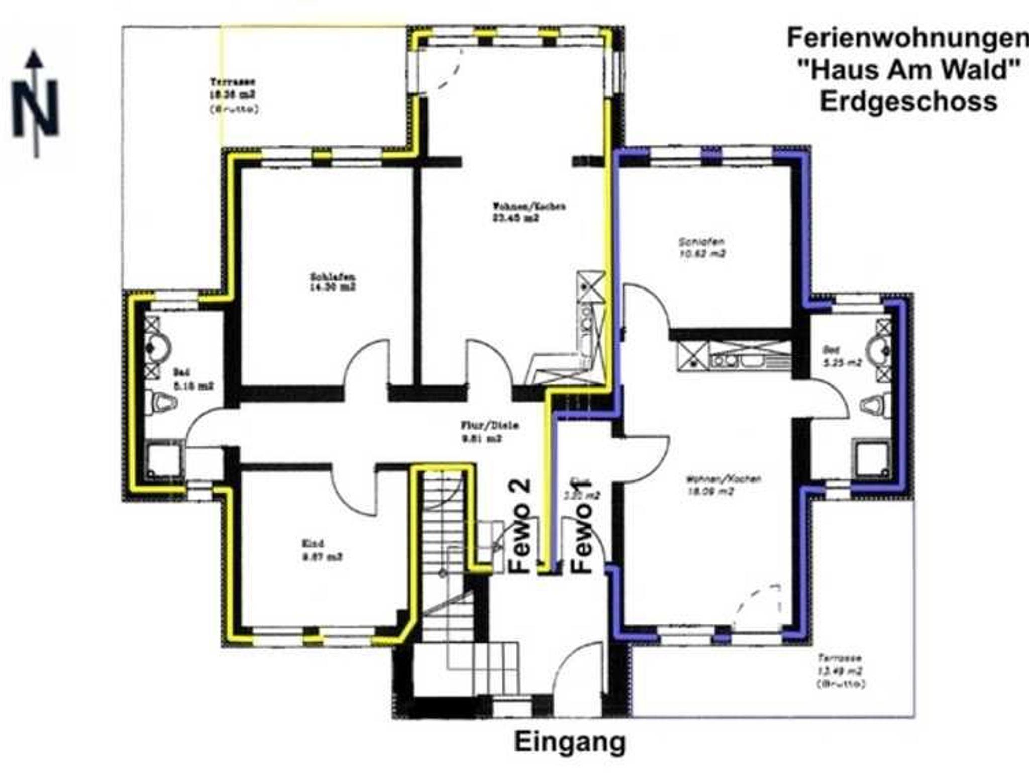 Ferienwohnung (Nr. 2) im Erdgeschoss links ist für 2 bis 5 Personen (inkl. Kleinkind bis 3 Jahre) ausgestattet.