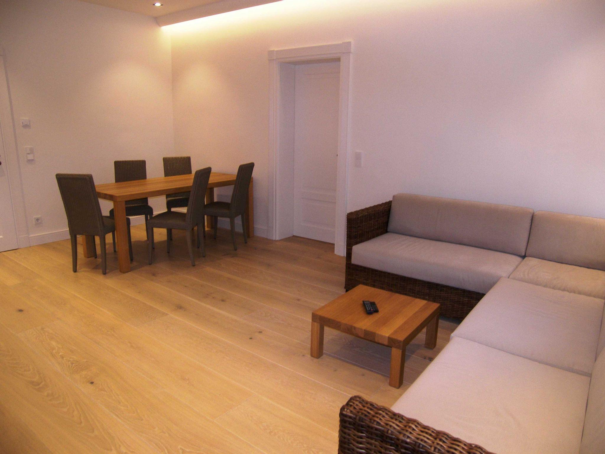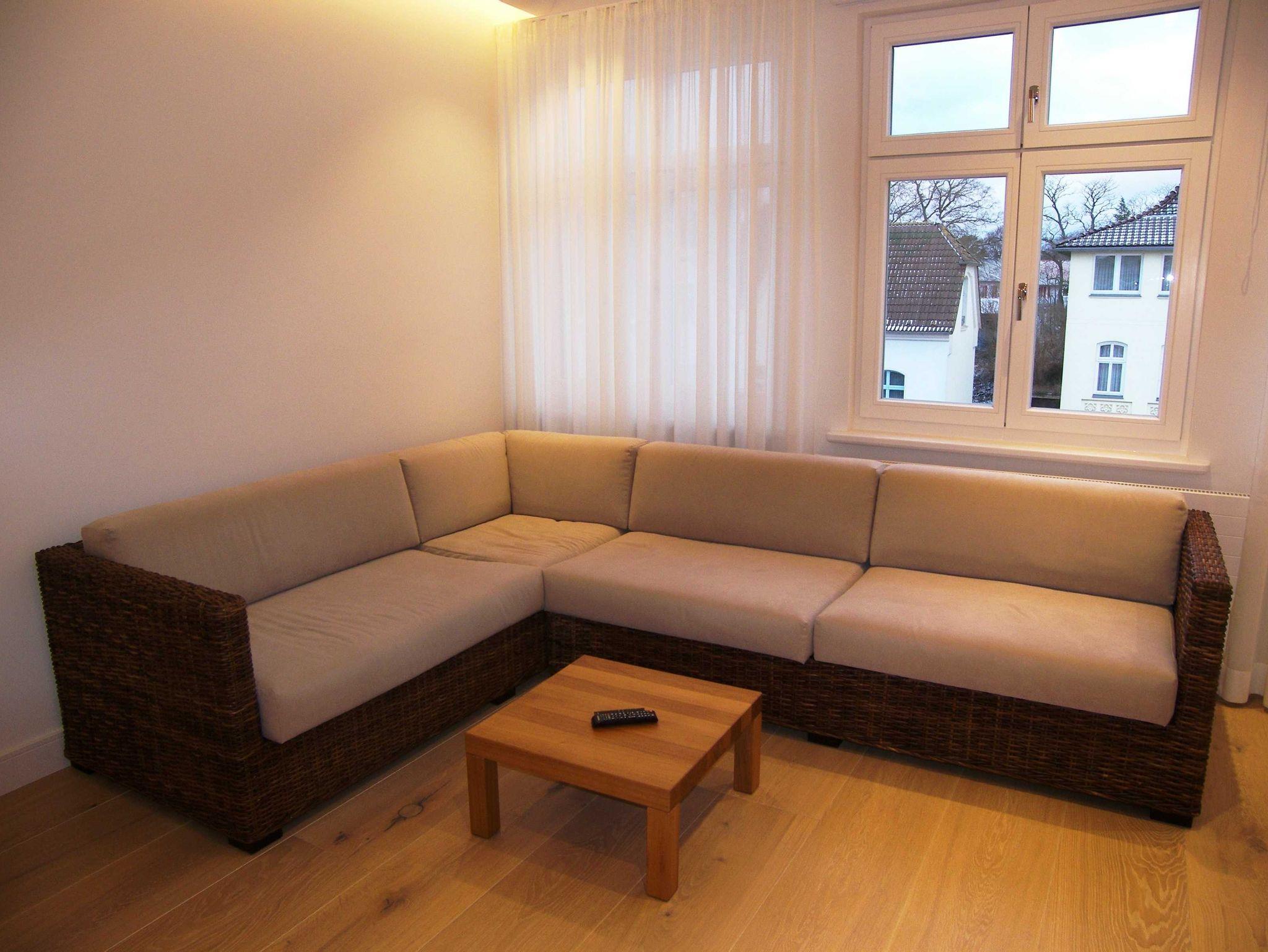 Sie verfügt über ein separates Schlafzimmer für zwei Personen mit einem großen Schrank und einem Arbeitsplatz. Das Wohnzimmer bietet zusätzlich eine Schlafgelegenheit für 2 Personen, hat ein großes Ecksofa, eine Essecke und einen Flachbildfernseher.