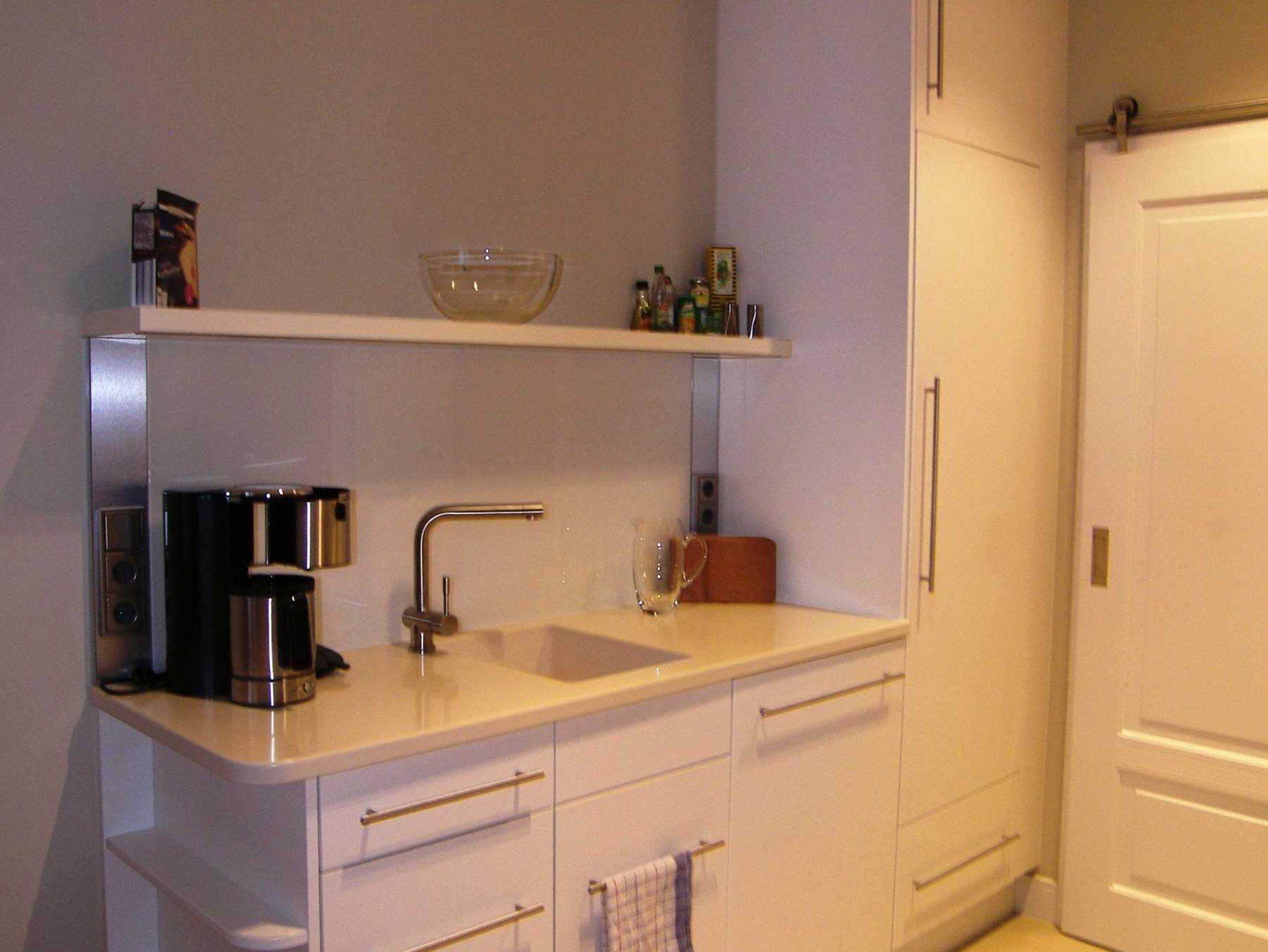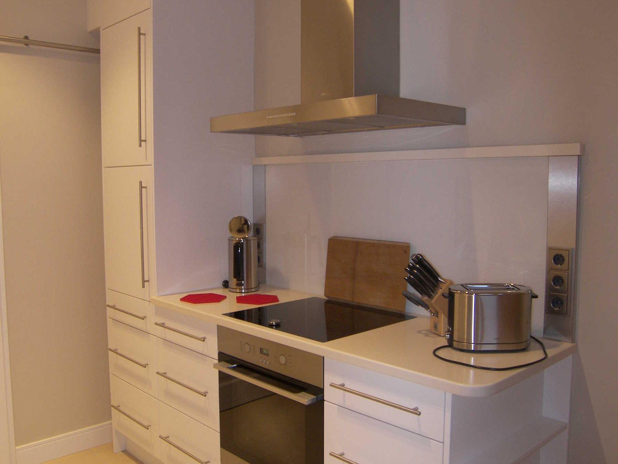 Die Küche ist mit Backofen, einem Kühlschrank mit separater Tiefkühlgelegenheit, Kaffeemaschine, Toaster und Wasserkocher ausgestattet.