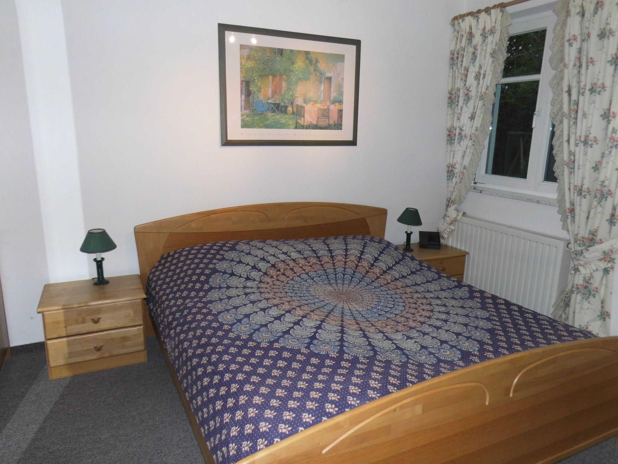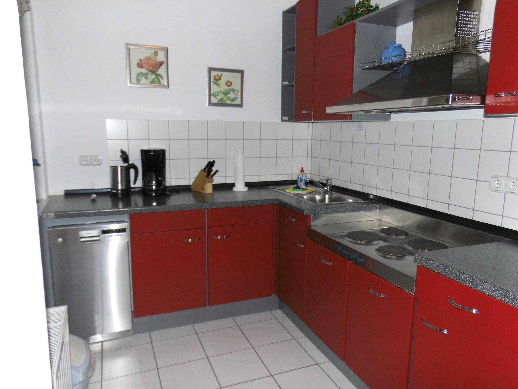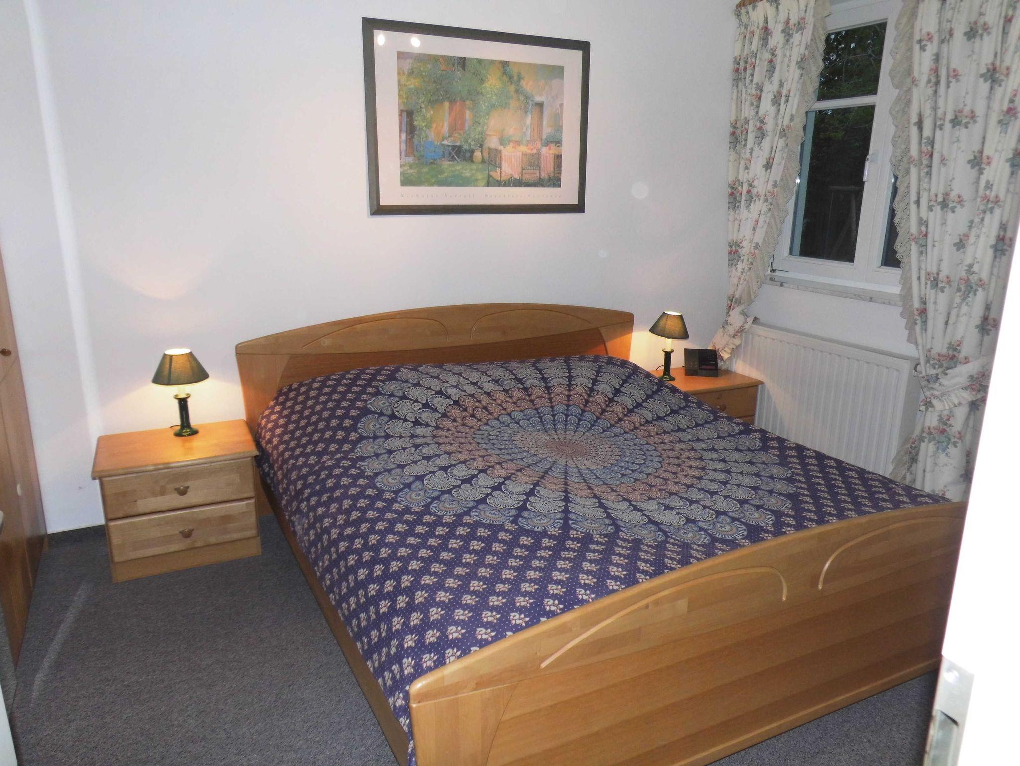 Die Parterre-Wohnung hat eine Terrasse die nach Süden ausgerichtet ist; mit 4 Terrassenstühlen, Tisch und Sonnenschirm. Die Wohnung ist hell und freundlich eingerichtet und verfügt über SAT-TV, CD-Player, und Radio. Eine gut ausgestattete Küche mit vollständigem Geschirr, Küchengeräten,Geschirrspüler, Kaffeemaschine, Wasserkocher und Toaster sind vorhanden. Schlafzimmer mit Doppelbett für 2 Personen; Wohnzimmer mit Schlafsofa für 2 Personen; Babyreisebett kann gemietet werden.