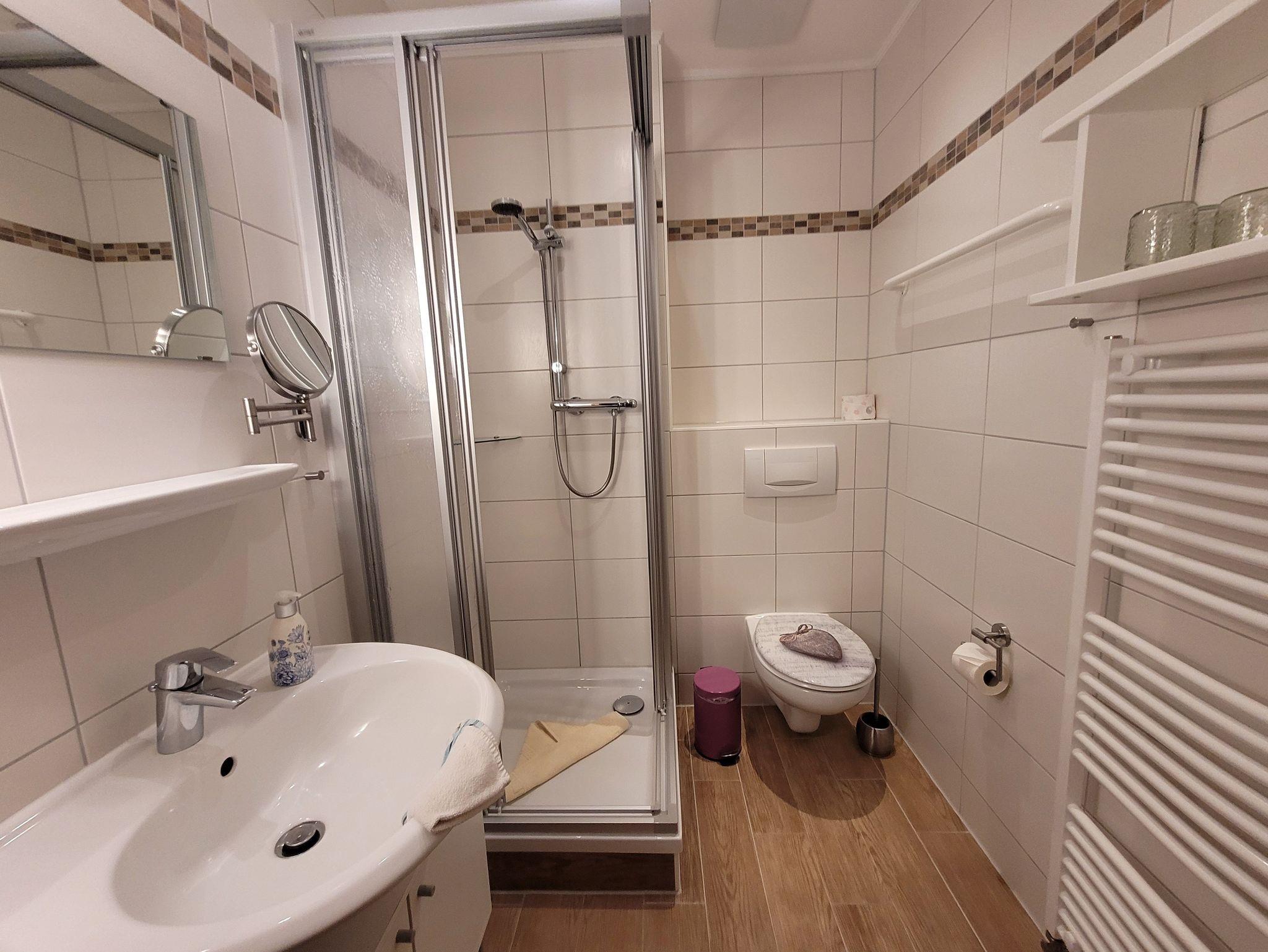 Die komplett eingerichtete Ferienwohnung mit Wohnzimmer, ein Schlafzimmer mit einem Ehebett und einer Liege, Küchenzeile, Dusche, WC, Flur und großem Balkon würde für Sie bereitstehen. Zur Ausstattung gehören weiter Radio, Sat-Fernseher, einmalig Bettwäsche und Handtücher. In der Küchenzeile sind Mikrowelle, Kaffeemaschine und Toaster, Eier- und Wasserkocher sowie ein 2- Platten-Kocher, Kühlschrank und Geschirr vorhanden. Wir möchten Sie darauf hinweisen, dass es sich bei unseren Ferienwohnungen um Nichtraucherwohnungen handelt. Natürlich dürfen Sie auf dem Balkon oder der Terrasse rauchen. Die Waschmaschinen- und Trocknerbenutzung ist nach vorheriger Absprache möglich.