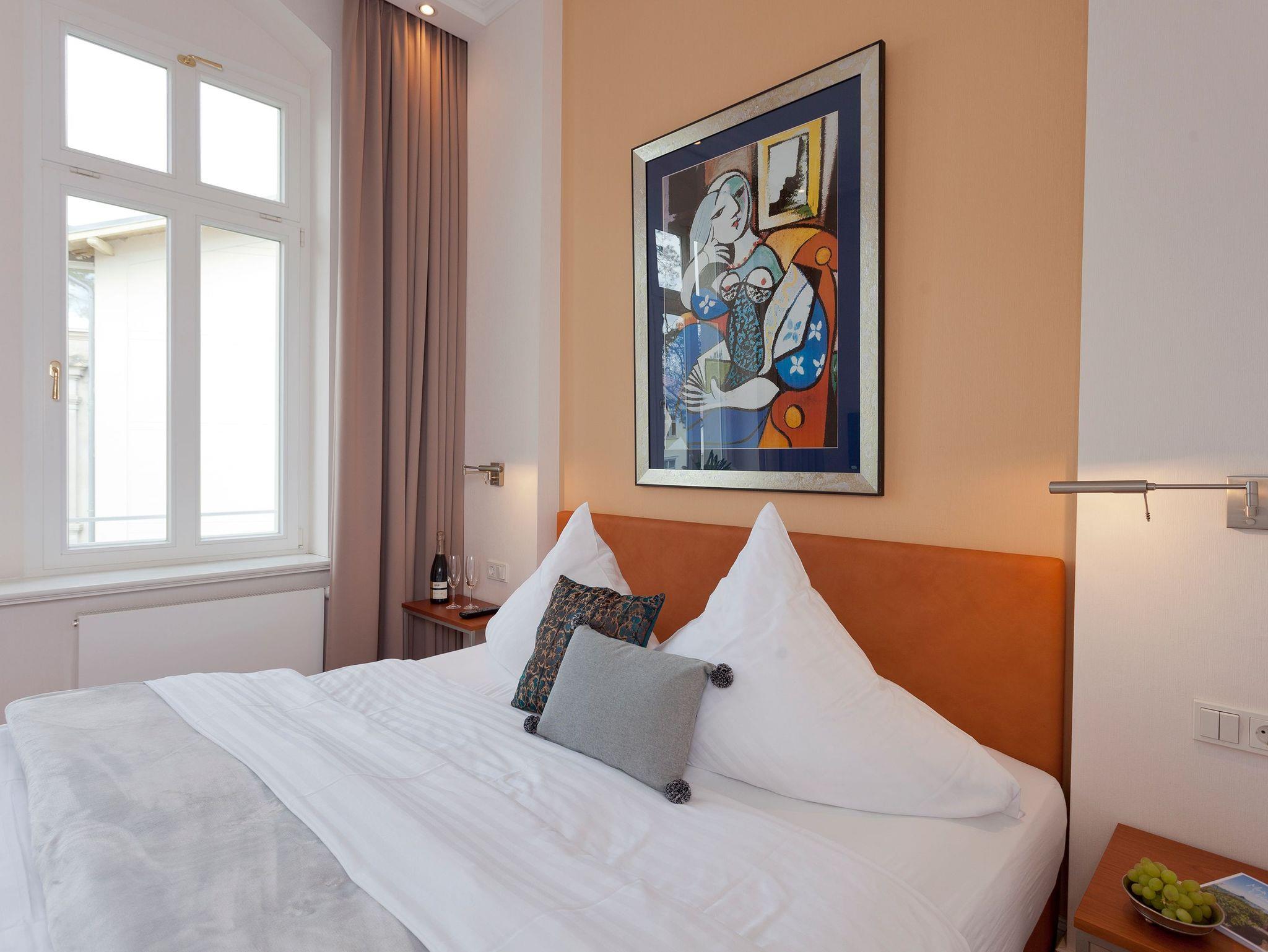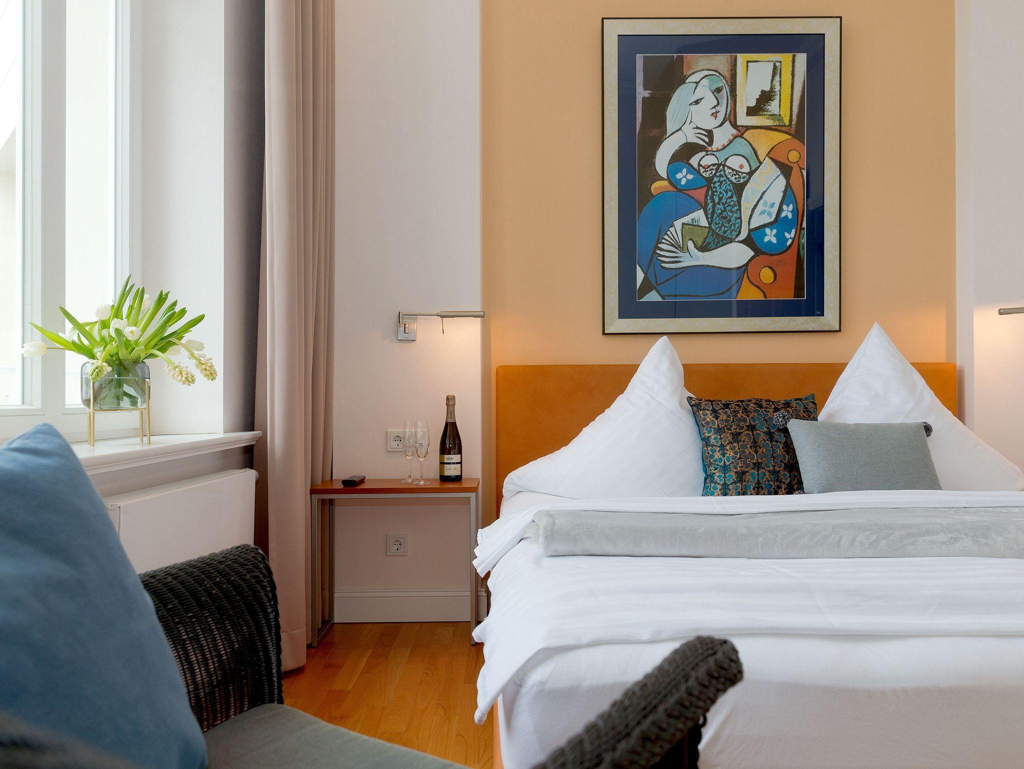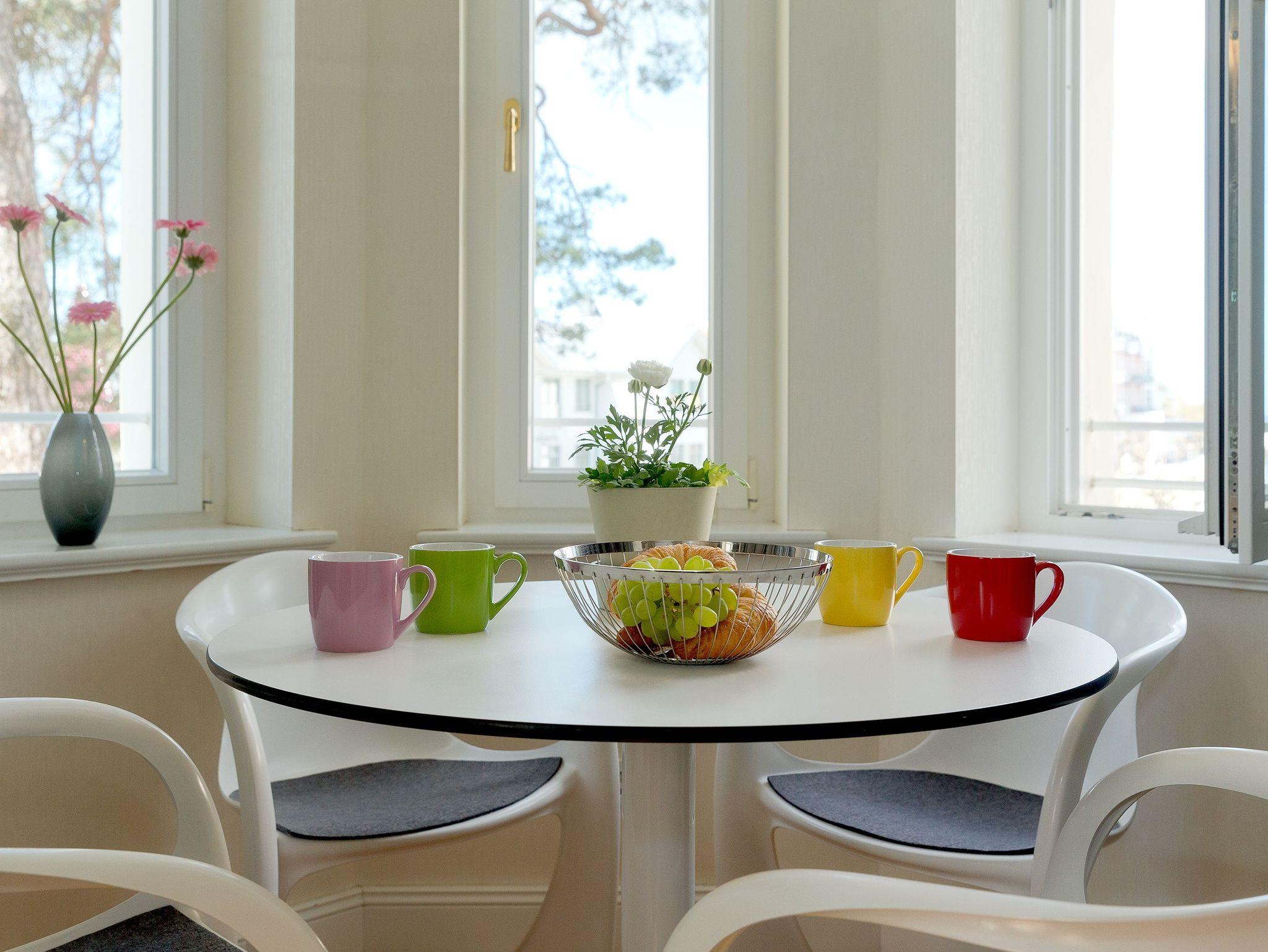 Das 3-Zimmer-Appartement liegt im 1. Obergeschoss der Villa Gruner und verfügt über einen kombinierten Wohn- Koch und Essbereich, zwei Schlafräume mit je einem Doppelbett (je 180 x 200cm / zwei getrennte Matratzen) und ein großzügiges Badezimmer mit ebenerdiger Echtglasdusche, WC und einem Haarfön.