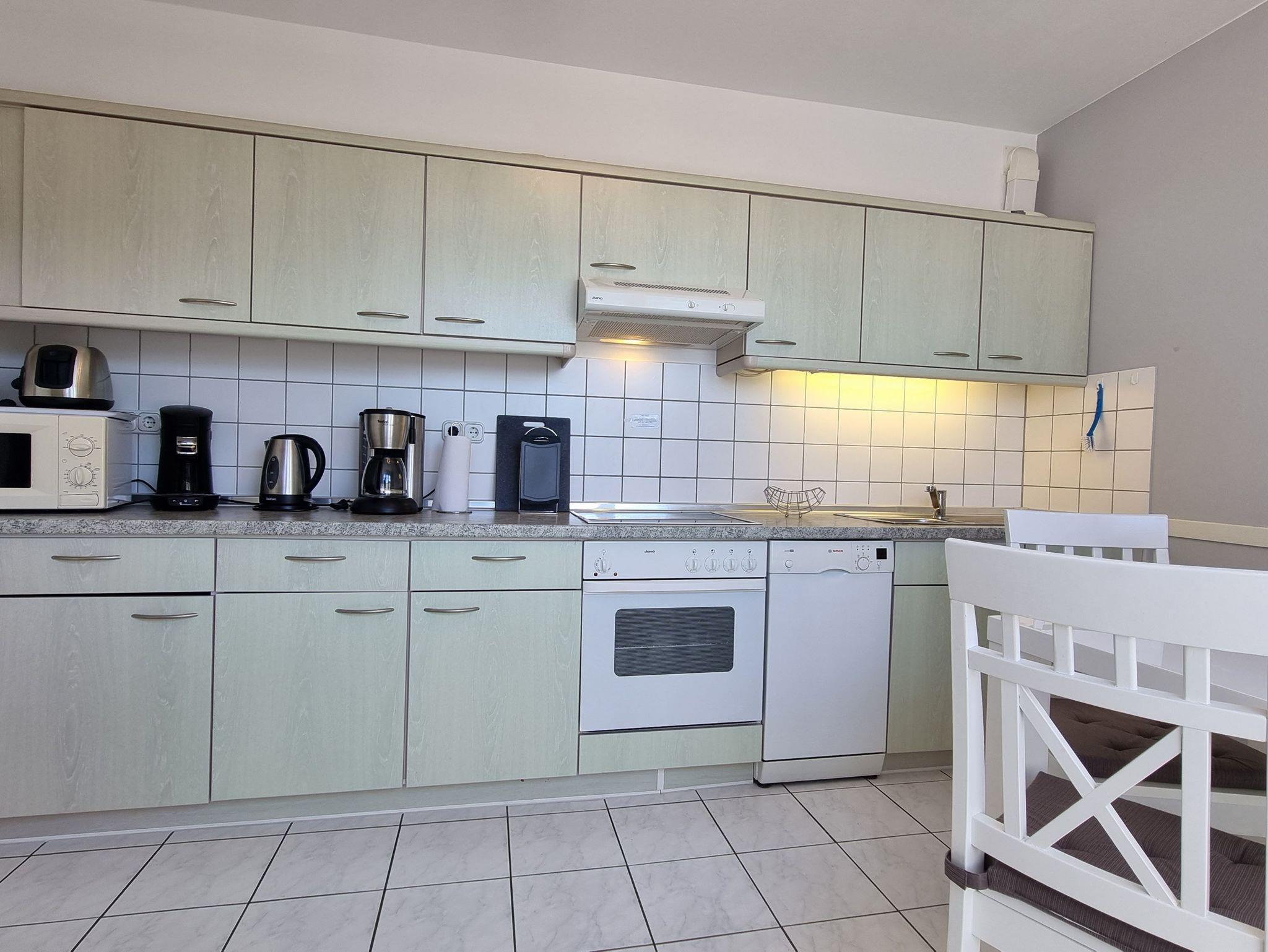 • Küche mit Esstisch und 4 Stühlen und Einbauküche inkl. Herd, Backofen, Mikrowelle, Eierkocher, Toaster, Spülmaschine, Wasserkocher, Kaffeemaschine, Kaffeepadmaschine, Kühl-/Gefrierkombination und reichlich Geschirr;