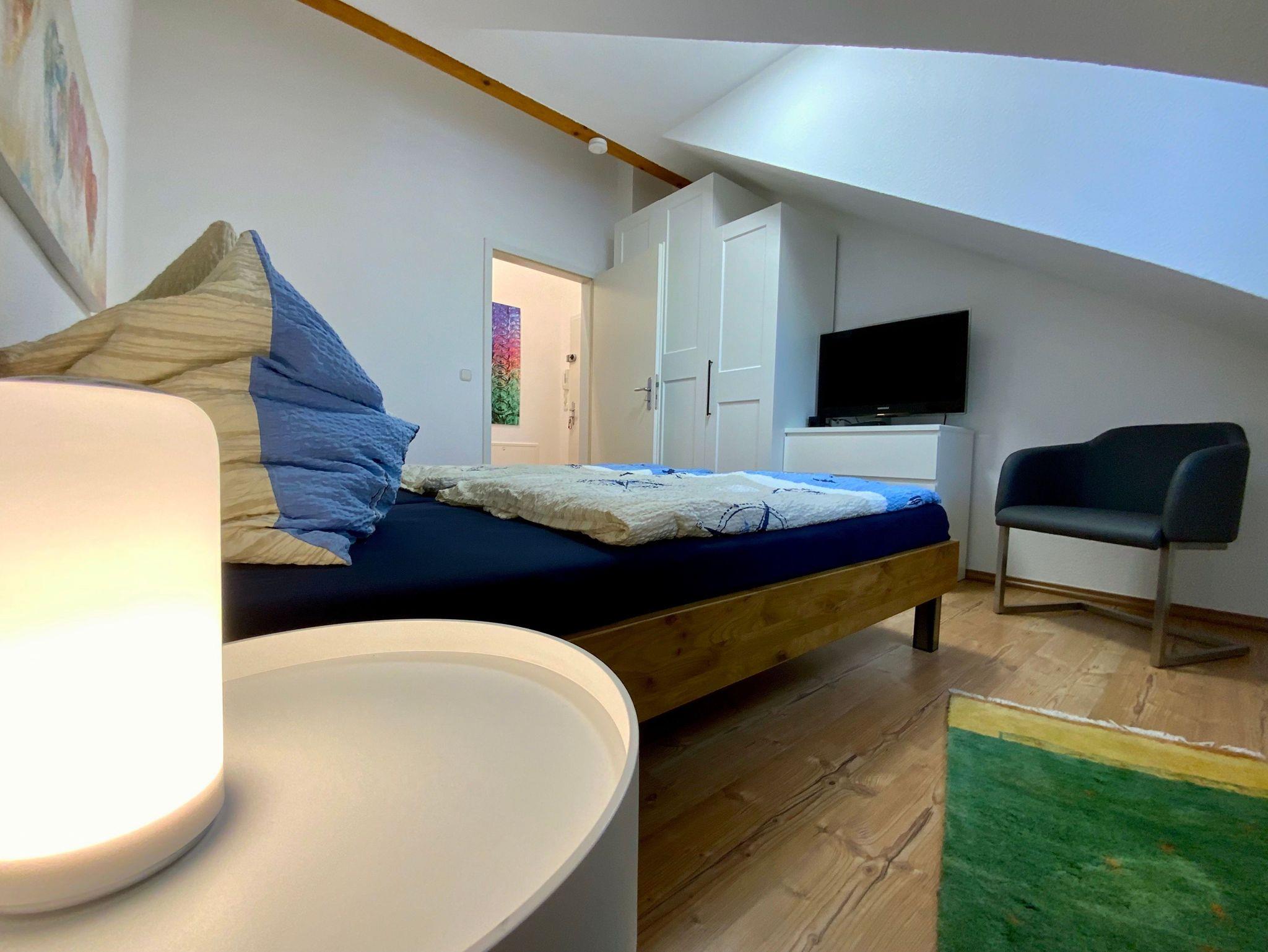 Möblierung, Dekoration, vor allem aber auch der architektonische Entwurf unserer Atelierwohnung mit ihren Schrägen, Gauben und offenen Dachräumen bieten Luxus und Ambiente.