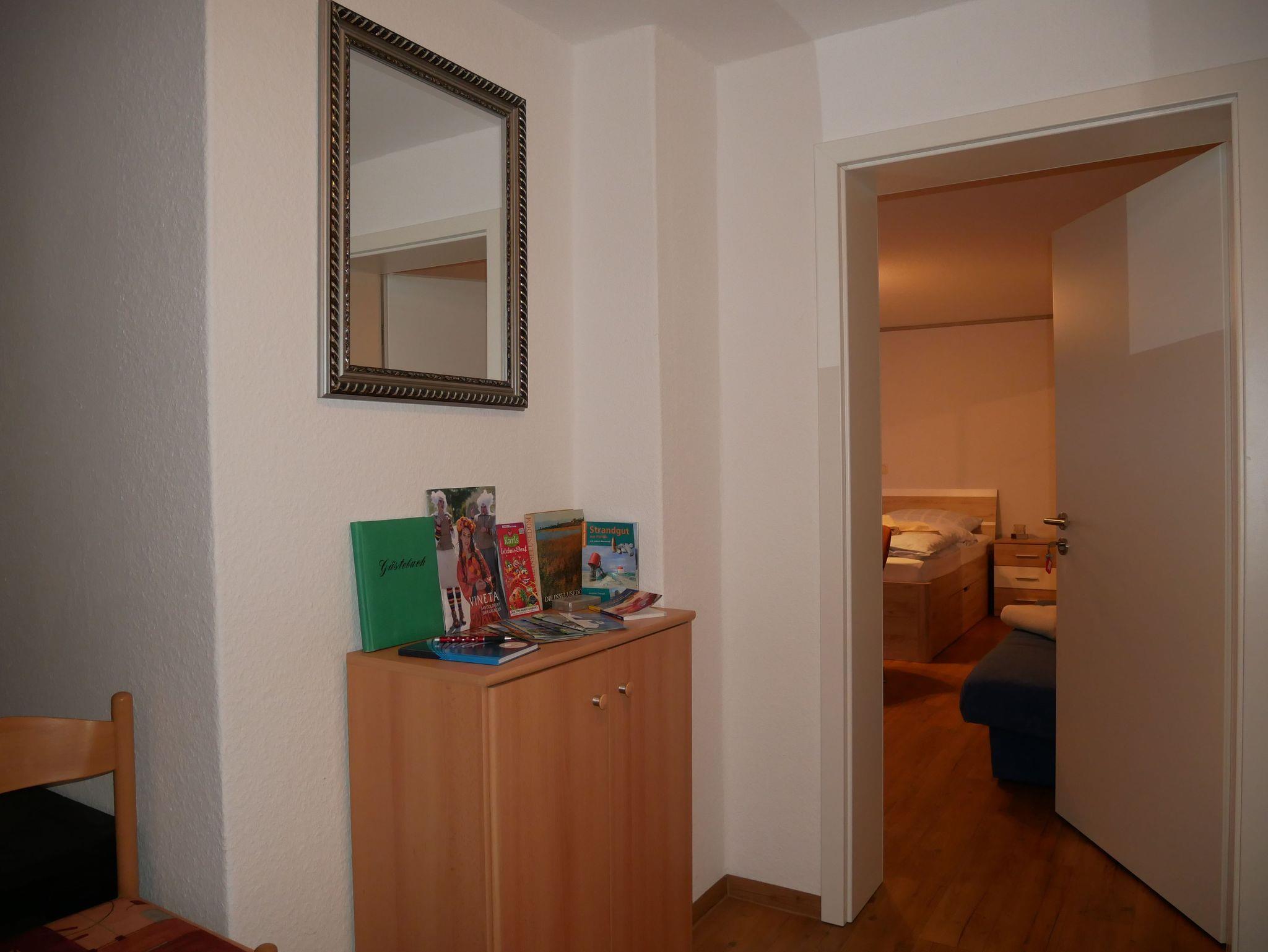Das Ferienzimmer 1 befindet sich im Untergeschoss des Einfamilienhauses. Es ist ausgestattet mit einem Doppelbett (1,80x2,00m), einer gemütlichen Couch, großen Kleiderschrank, Sitzbereich mit Tisch und zwei Stühlen, sowie mit einem Flachbildfernseher.