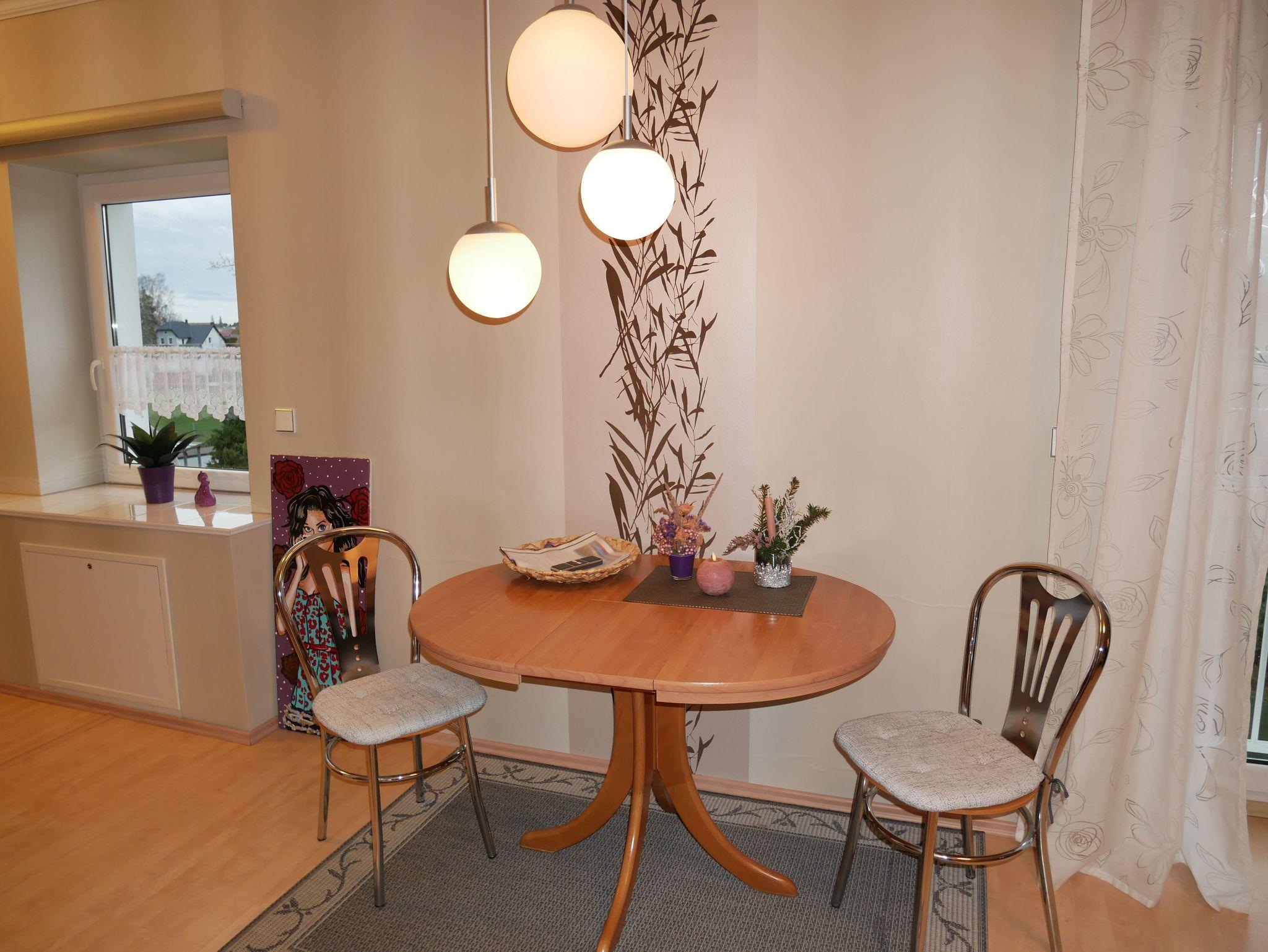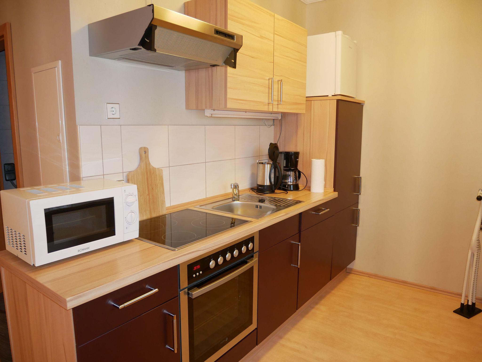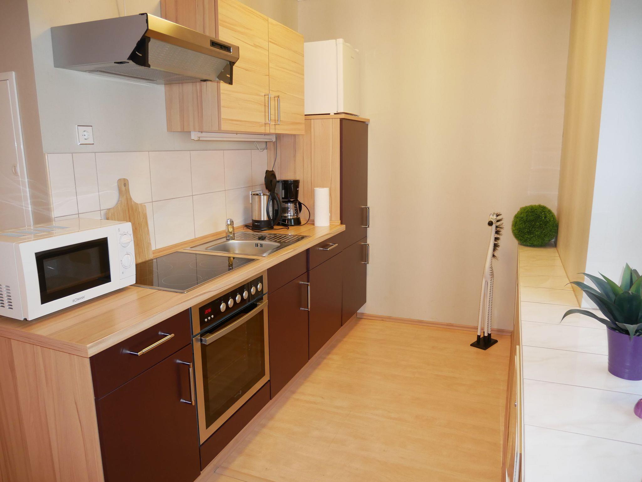 Schöne kleine, besonders für junge Paare geeignete Ferienwohnung im Obergeschoss, sehr modern eingerichtet. Die Wohnung verfügt über eine offene, voll ausgestattete Küche mit 4 Herdplatten, Kühlschrank, Gefrierschrank, Mikrowelle, Spülmaschine und einer Essecke.