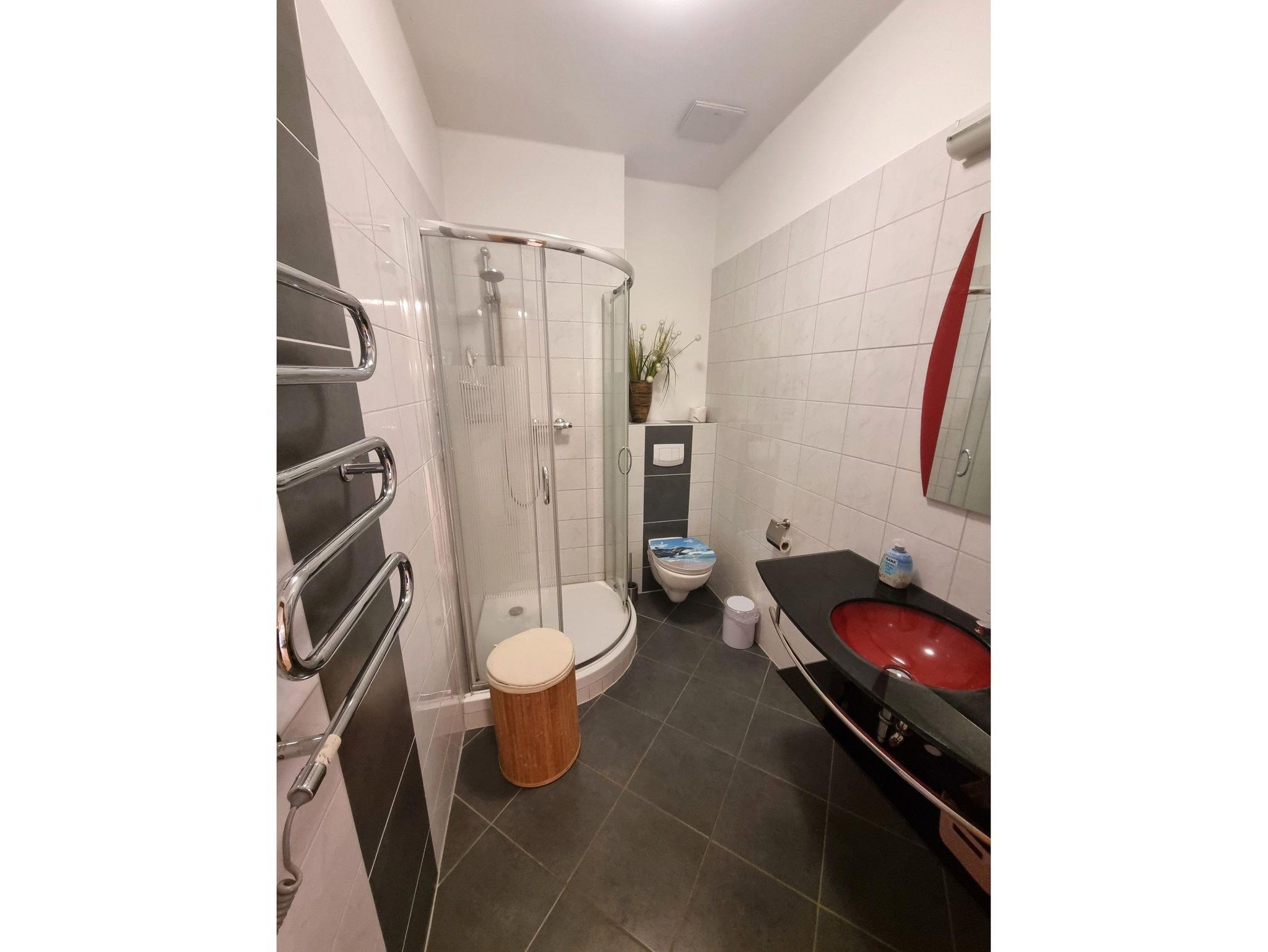 Der kombinierte Wohn- und Schlafraum (Futonbett) verfügt über eine Schlaf- und eine Sitzecke. Das schöne Badezimmer ist mit Waschbecken, Dusche und WC ausgestattet.