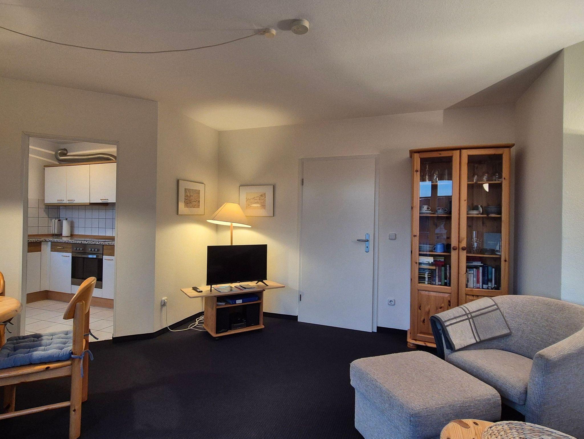 Ferienwohnung (Nr. 35) für bis zu 4 Personen (ca. 55 m²) im 1.OG mit Wohn- und Esszimmer mit offener Küche, 1 Schlafzimmer, 1 Bad und 1 Balkon.