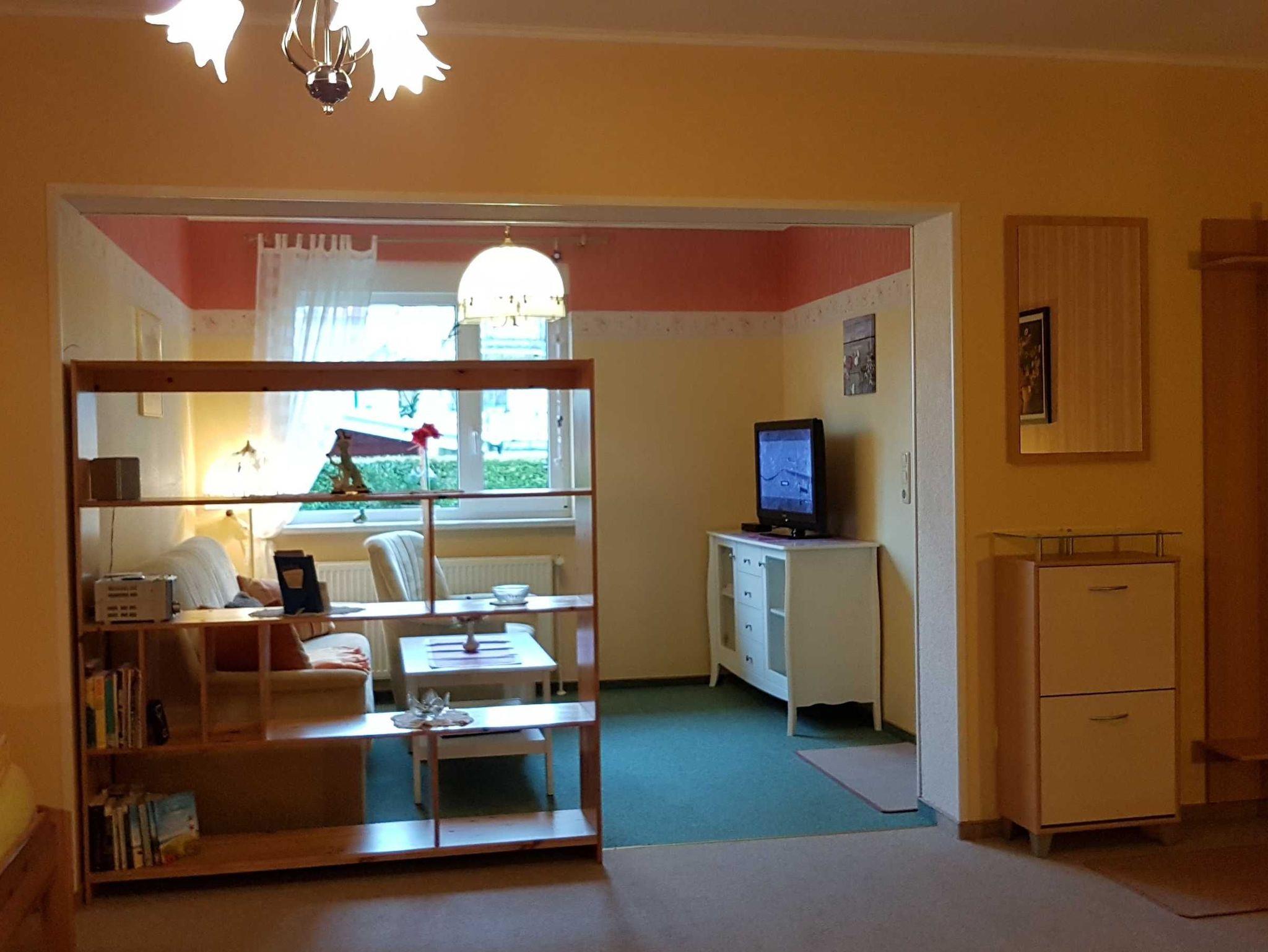Unser Ferienhaus liegt ca.15 Geh-Minuten vom Strand entfernt in einer ruhigen Wohnlage. Die komplett eingerichtete 1-Raum-Ferienwohnung mit gemütlichem Wohn- und Schlafbereich, Küche, Dusche & WC und großer Terrasse ca.15 Meter neben der Wohnung würde für Sie bereitstehen. Sie ist für zwei Personen buchbar. Zur Ausstattung gehören weiter Radio, TV, einmalig Bettwäsche und Handtücher. In der Küche sind Mikrowelle, Kaffeemaschine und Toaster, Eier-und Wasserkocher sowie ein 2-Platten-Kocher, Kühlschrank und Geschirr vorhanden. Zu jeder Wohnung gehört ein kostenloser Parkplatz für Ihr Auto. Auf unserem Gelände steht Ihnen ein Kinderspielplatz,ein Grillplatz, im Sommer ein kleines Kinderspielzimmer und ein Clubraum zum Tischtennis und Billard spielen zur Verfügung. Diese 1-Raumwohnung ist eine Nichtraucherwohnung und es sind k e i n e Haustiere erlaubt!