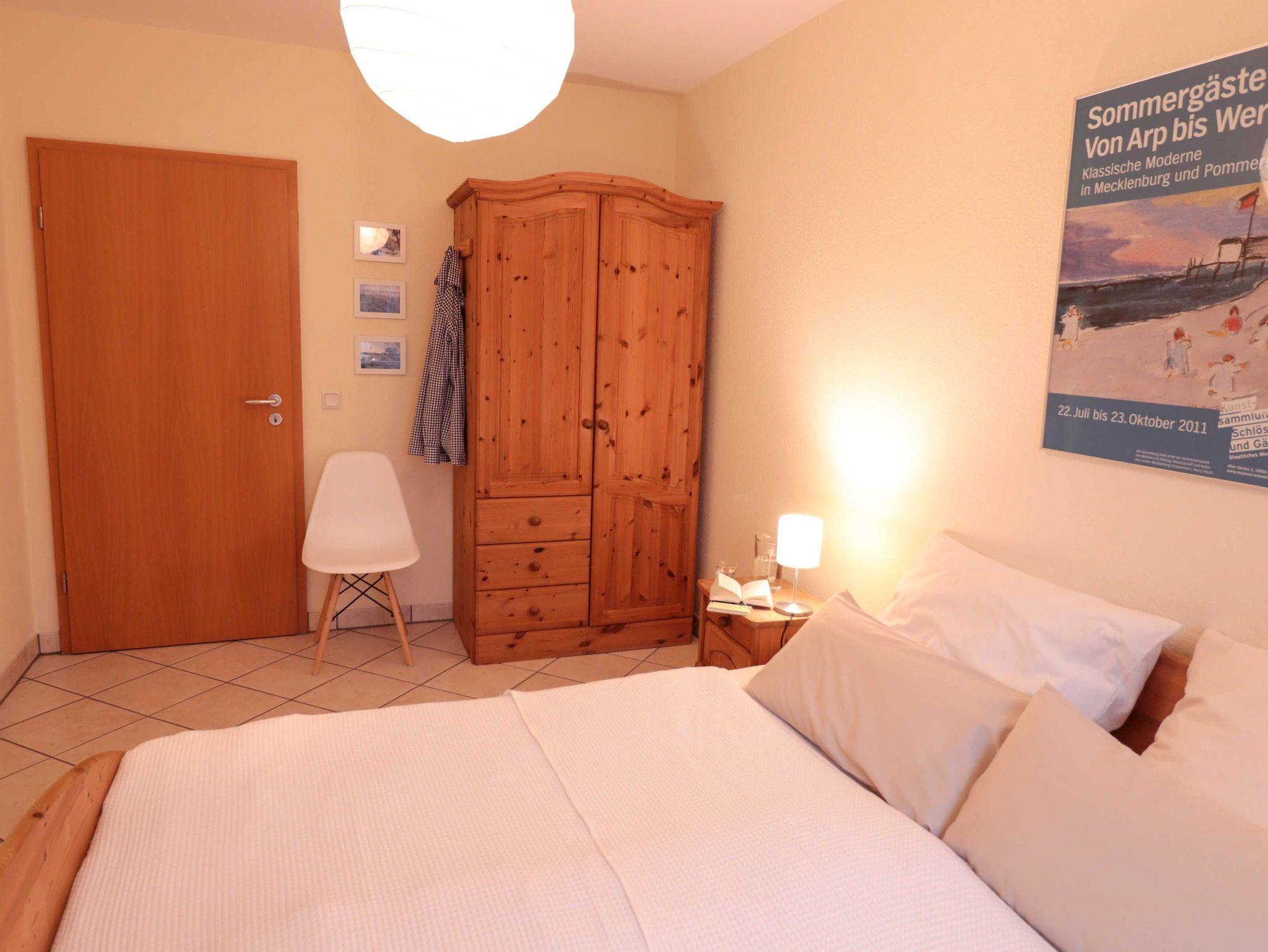 Alle Räume sowie das Badzimmer und Abstellkammer sind über einen zentralen Flur zu erreichen. Das 1. Schlafzimmer ist mit einem Doppelbett (180 x 200) mit getrennten Matratzen, sowie Kleiderschrank und Fernseher ausgestattet.