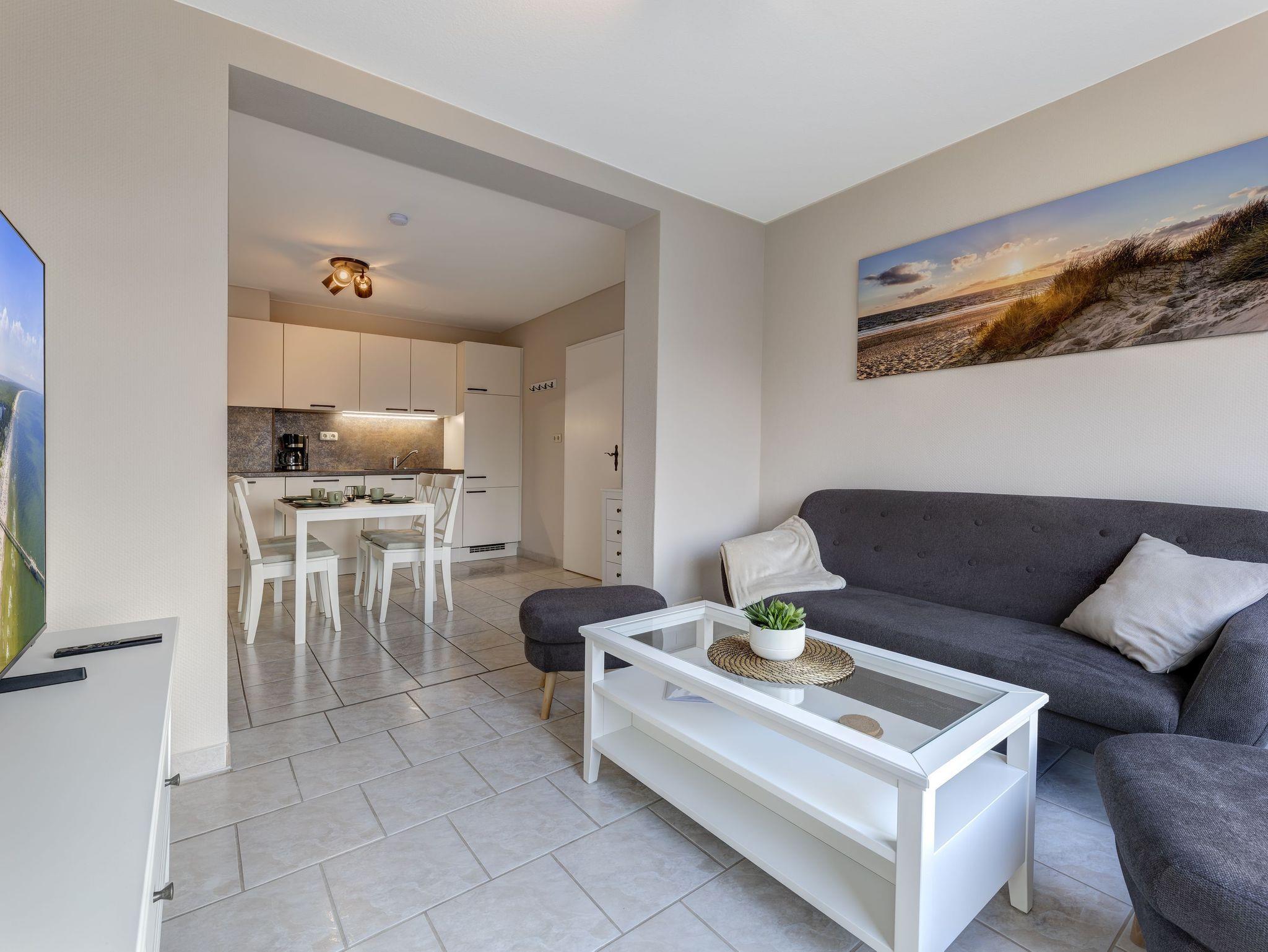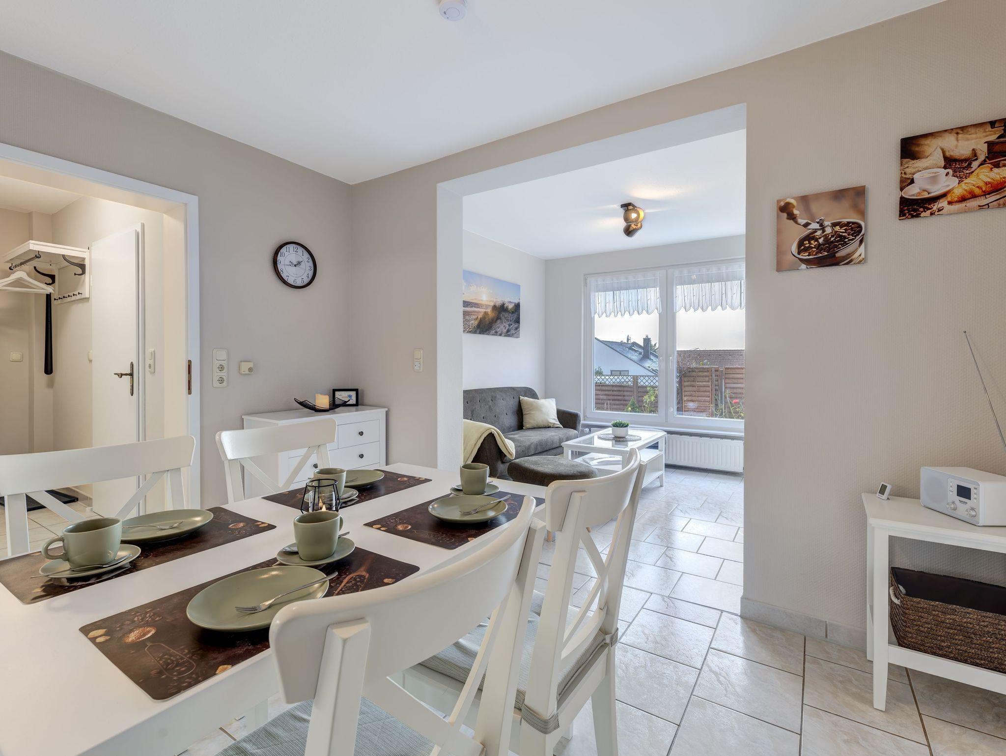 Das gemütliche Wohn-/Esszimmer verfügt über einen Wohnbereich mit Flachbild-TV, einen Essbereich für bis zu 4 Personen und einer offenen Küche.