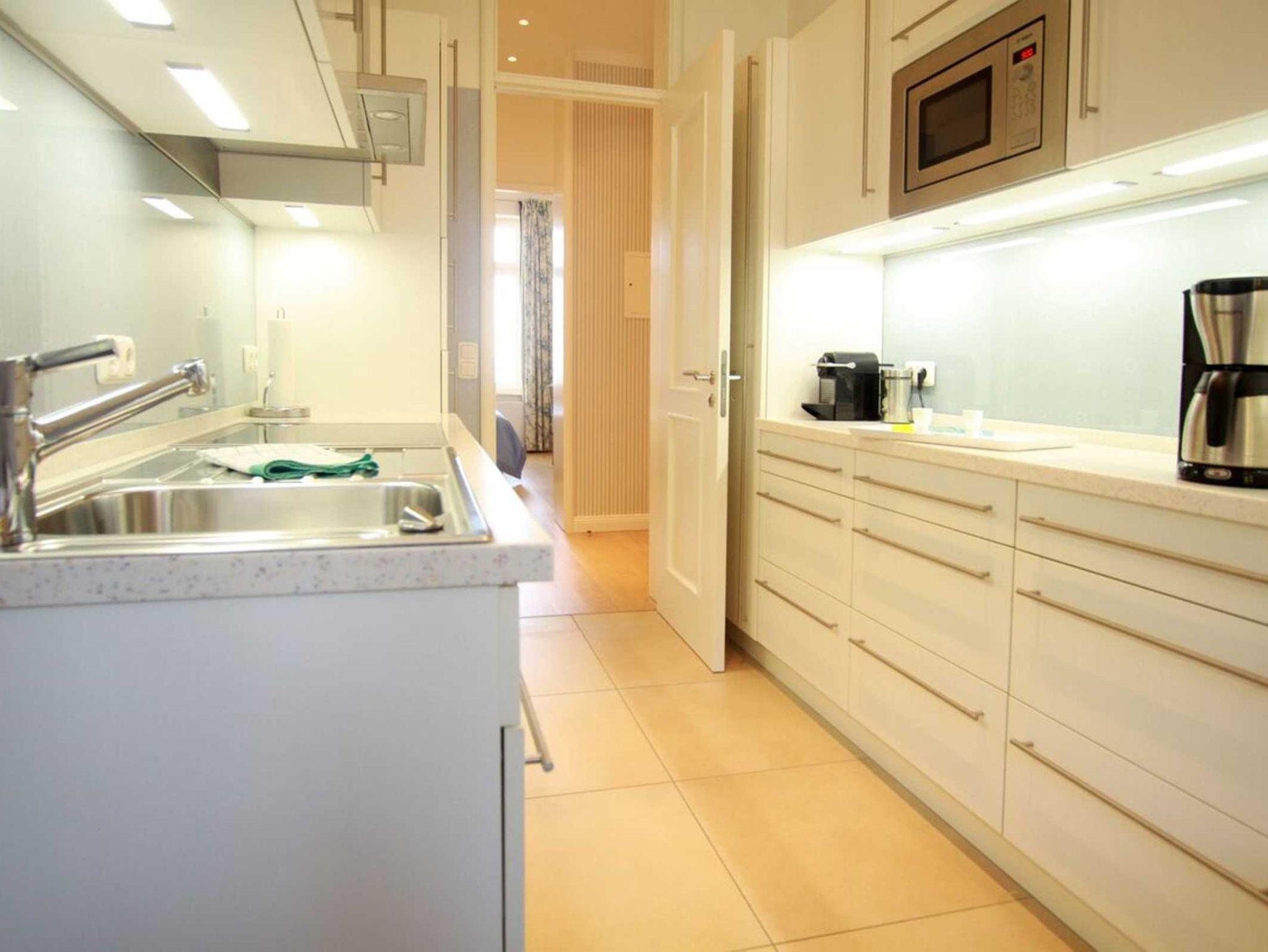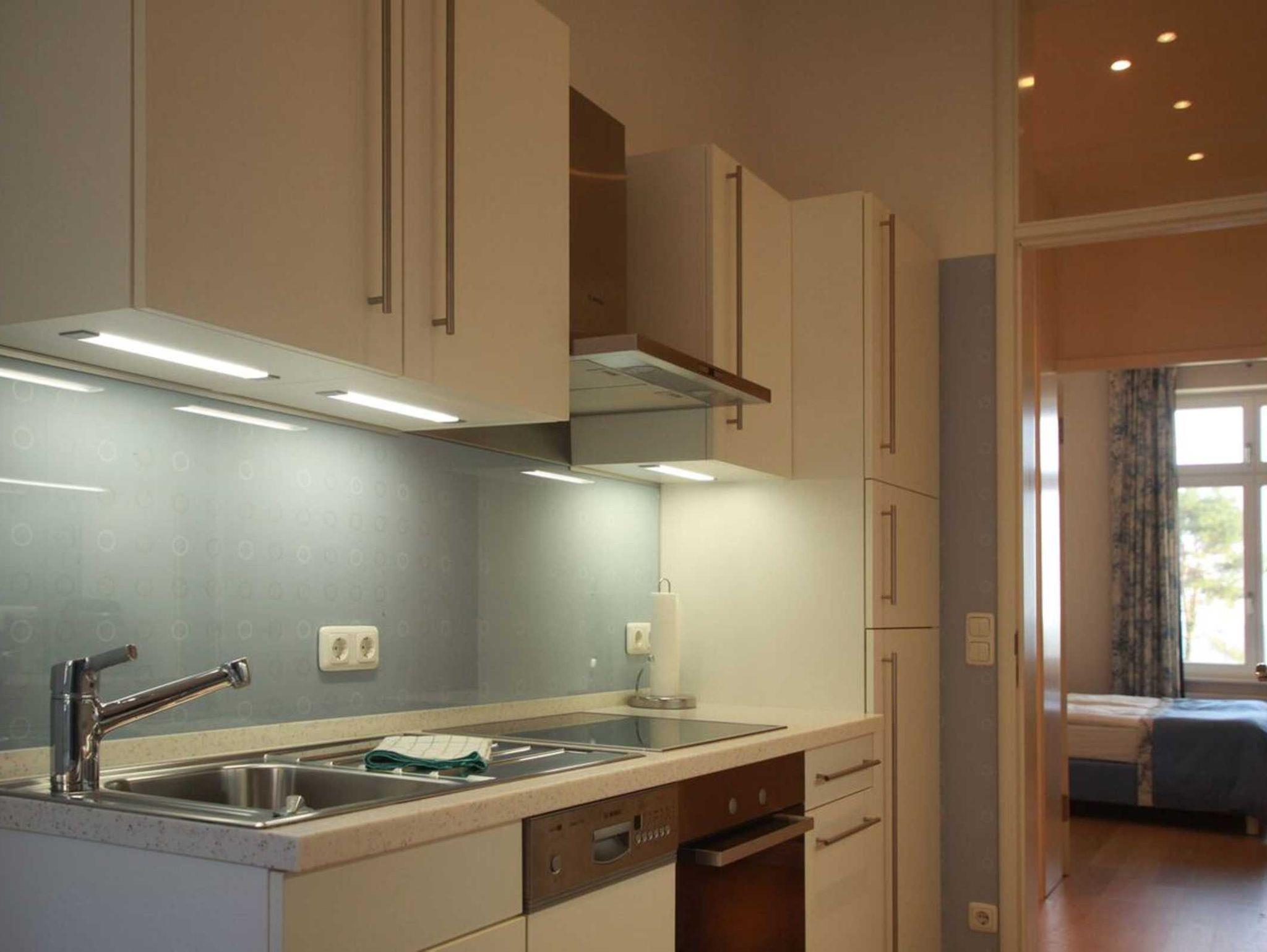 Die Nichtraucher Wohnung selbst ist aufwändig renoviert und individuell eingerichtet. Sie bietet Platz auf 86 qm für bis zu 4 Personen. Sie verfügt über einen Kamin im Wohnzimmer, einen großzügigen Essbereich mit direktem Blick auf Promenade und Ostsee, einer Loggia zur Seeseite und einem Balkon zur Waldseite, hier können Sie die Nachmittagssonne genießen.