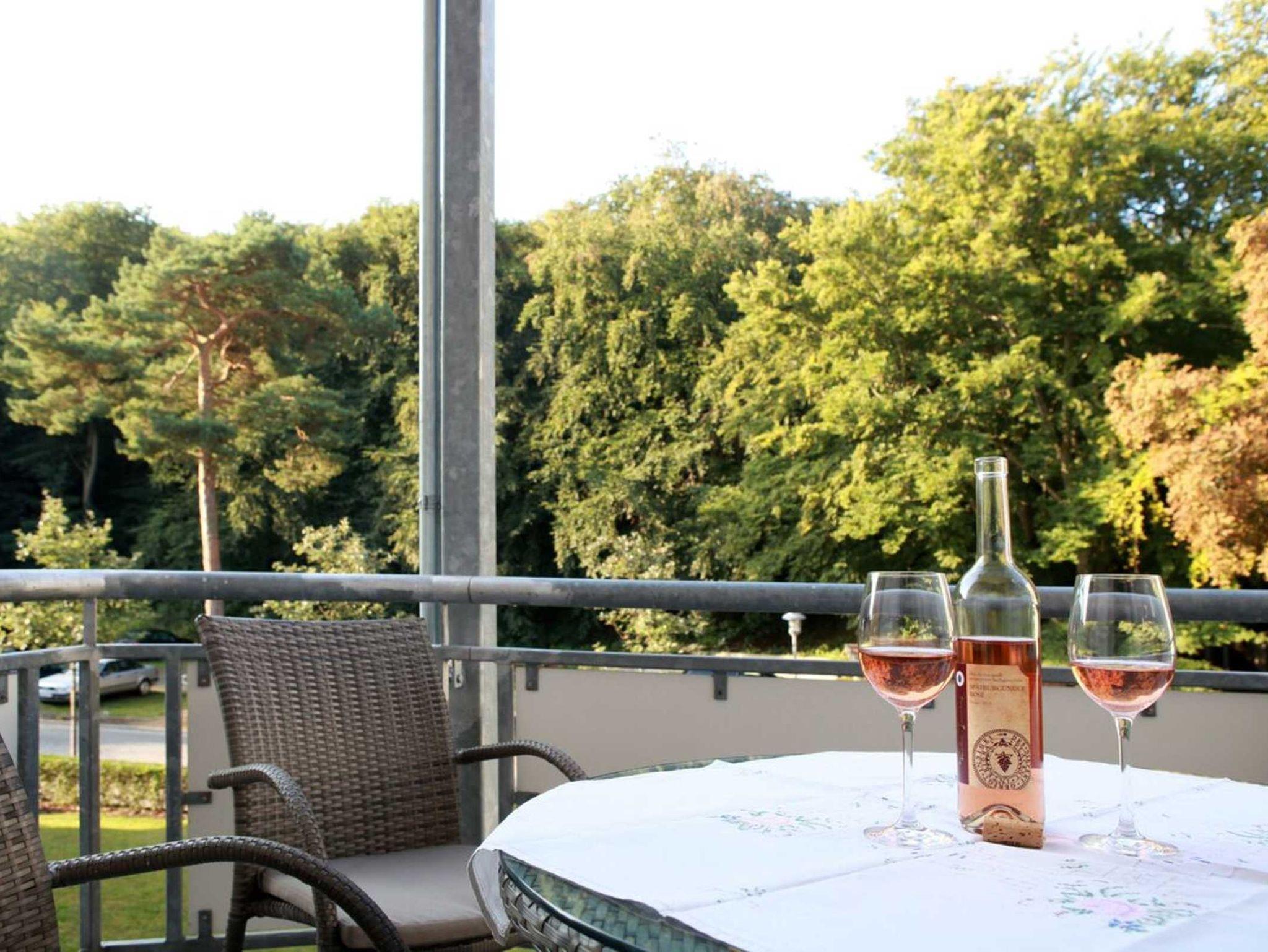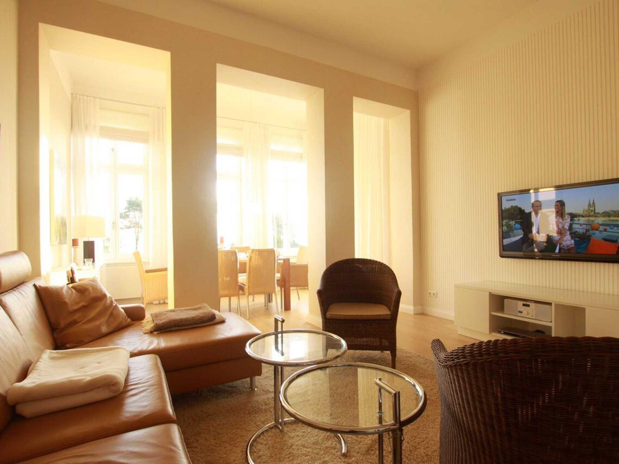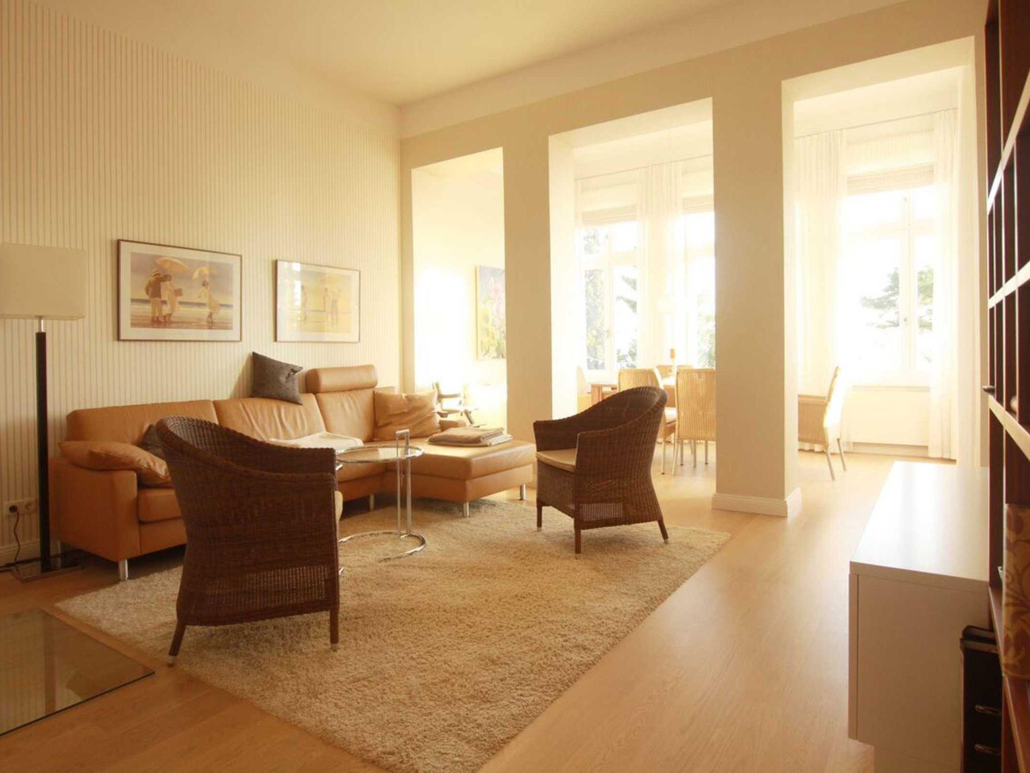 Die Nichtraucher Wohnung selbst ist aufwändig renoviert und individuell eingerichtet. Sie bietet Platz auf 86 qm für bis zu 4 Personen. Insgesamt drei Flachbild-TV bieten individuellen TV-Genuss. Des Weiteren verfügt die Wohnung über einen Kamin im Wohnzimmer, einen großzügigen Essbereich mit direktem Blick auf Promenade und Ostsee, einer Loggia zur Seeseite und einem Balkon zur Waldseite, hier können Sie die Nachmittagssonne geniessen.