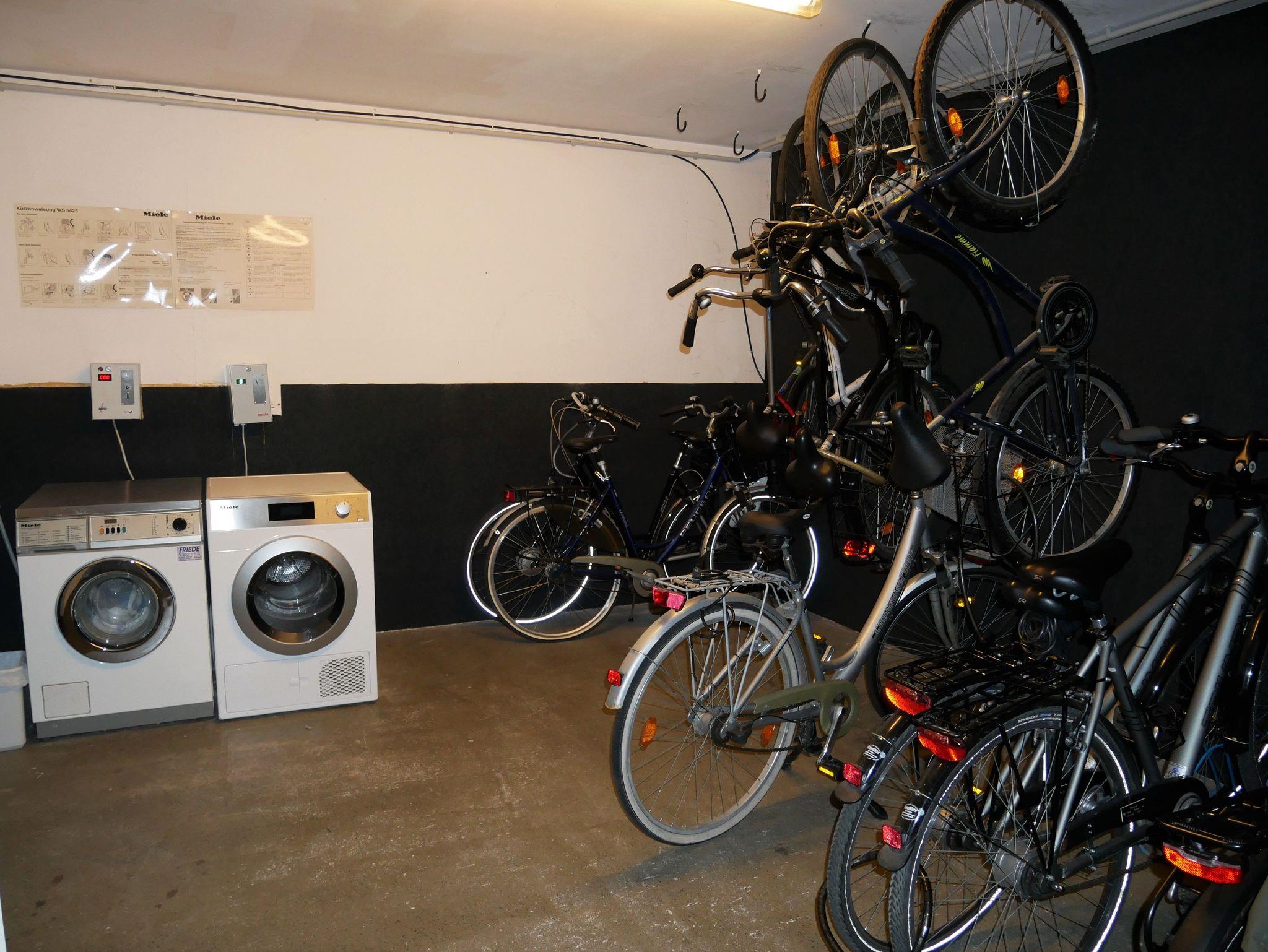 Die Ferienwohnung befindet sich im 1. Obergeschoß des Hauses. Ein abschließbarer Gemeinschaftsfahrradkeller befindet sich im Keller des Hauses mit Waschmaschine und Trockner sowie einen Tischtennisraum. Im Nebenhaus befindet sich das Schwimmbad mit Sauna und Ruheraum.