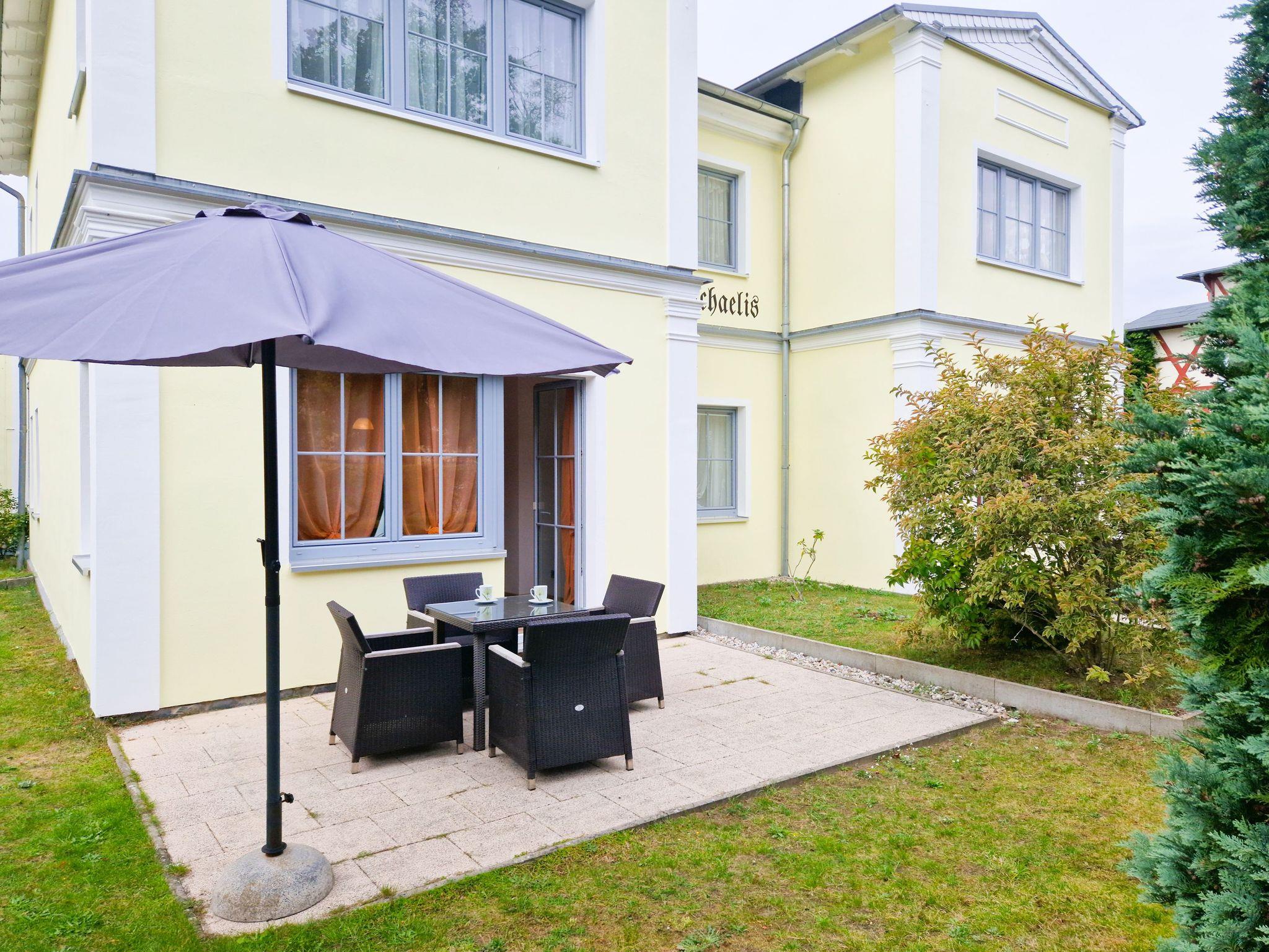 Die Wohnung befindet sich in einer Villa. Sie ist, wie auch die umgebenden Bauten, durch den Bäderbaustil des 19. Jahrhunderts geprägt. Ein stilvolles Ambiente. Relaxen Sie nach den Unternehmungen auf der Insel.