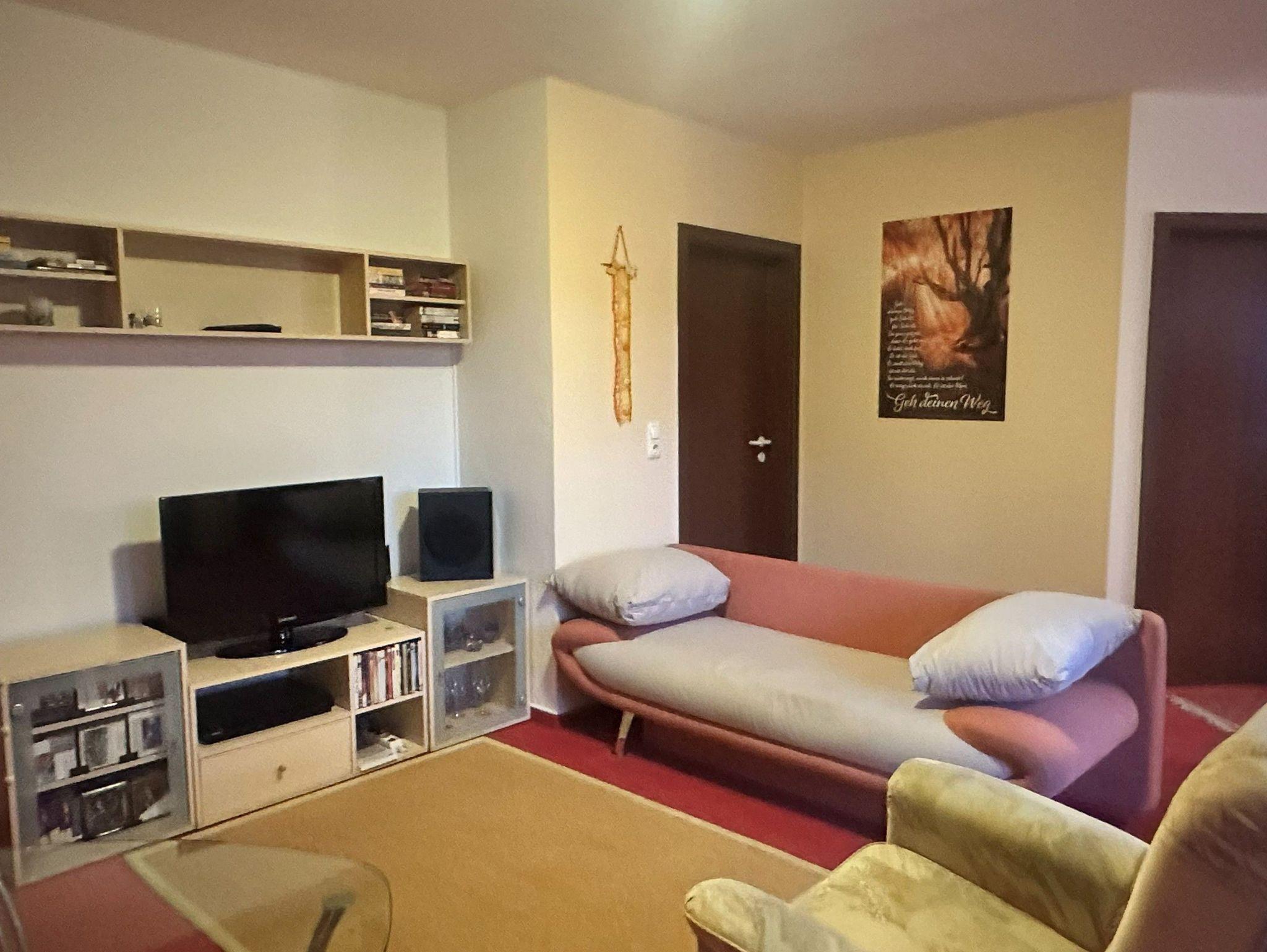 Das Wohnzimmer lädt mit gemütlicher Polsterecke, Sessel und Schlafcouch zum Entspannen ein. Für beste Unterhaltung sorgen LCD-TV in HD, digitales Kabelfernsehen (Sat-Anlage), Stereo- und Heimkinoanlage mit DVD-Player sowie Radioempfang. Bücher, DVDs und Musik-CDs stehen Ihnen ebenfalls zur Verfügung.