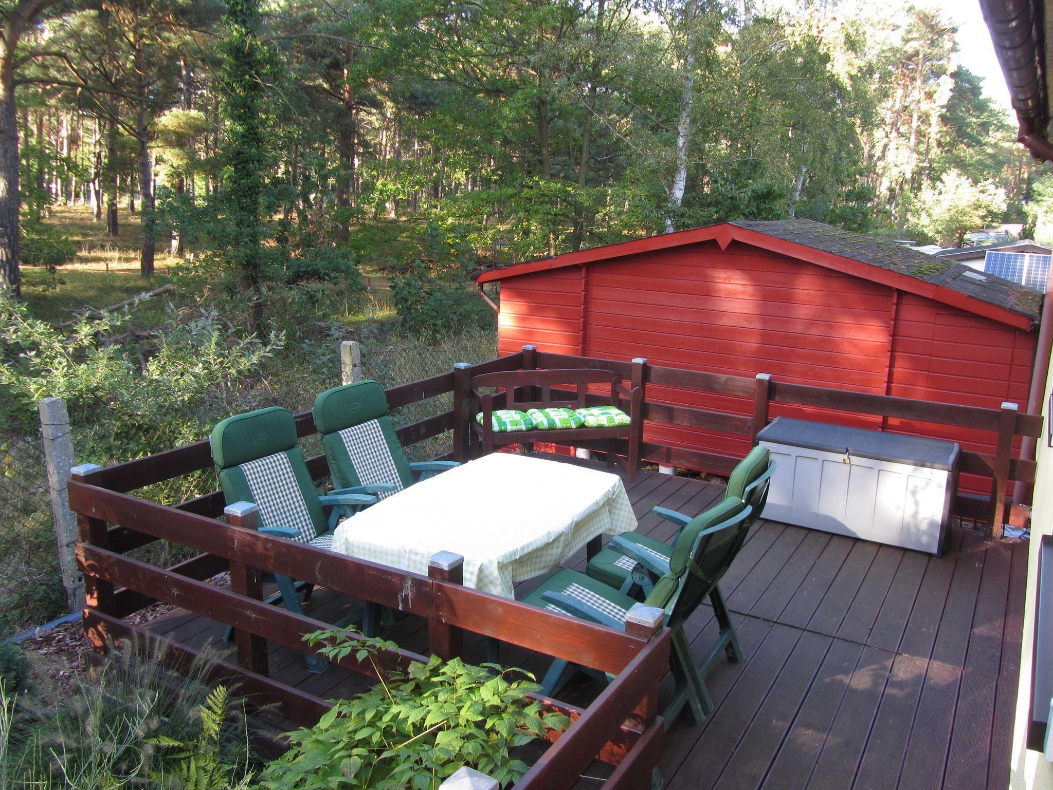 Es stehen Ihnen zwei Terrassen mit Gartenmöbeln zur Verfügung. Der Bungalow ist umgeben von Kiefern in einer ruhigen Ferienanlage und lädt zum Relaxen und Verweilen ein. Hier können Sie die Natur genießen und den Alltag hinter sich lassen.