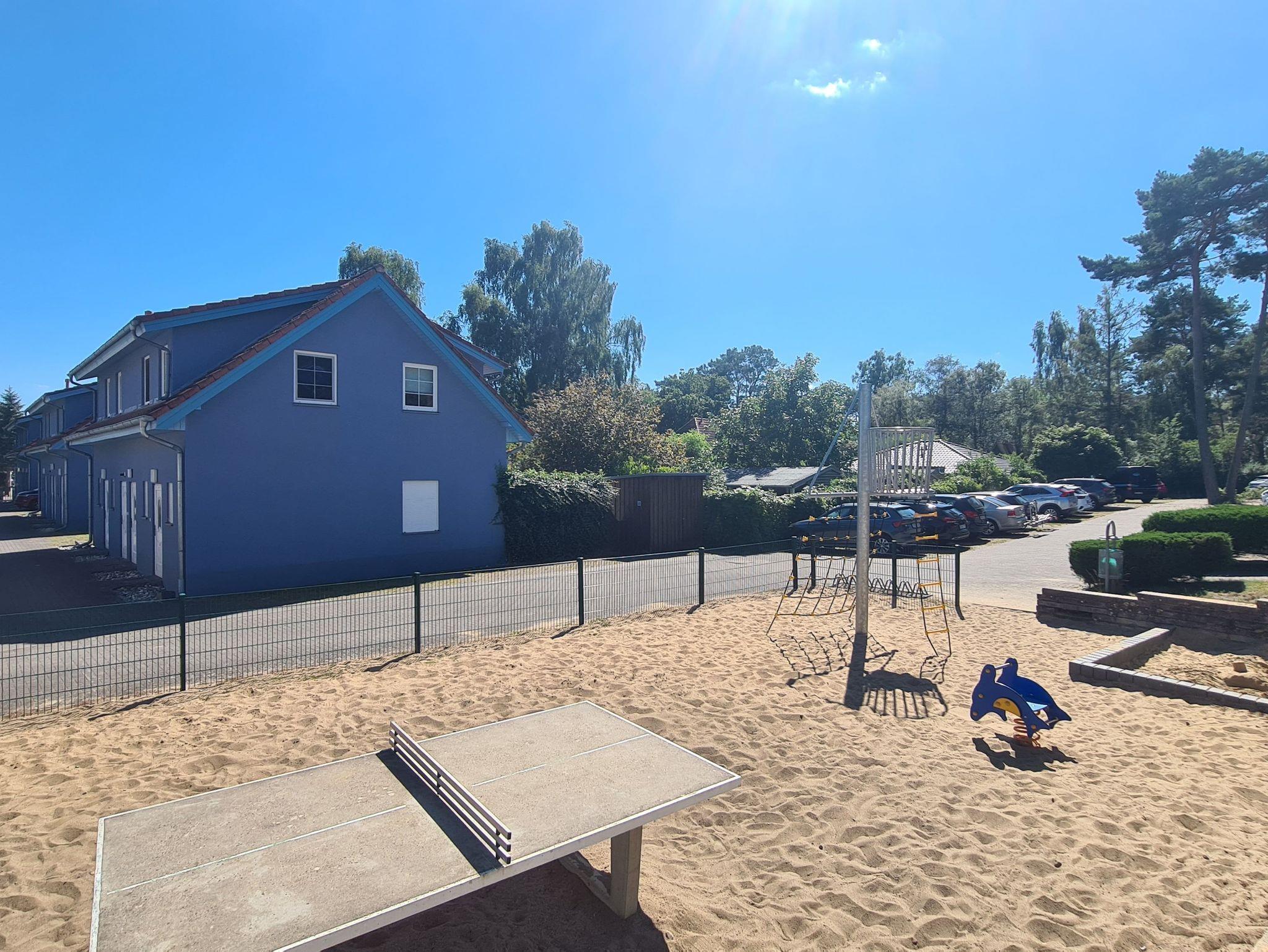 In dem Ferienpark befindet sich ein kleiner Spielplatz und eine Tischtennisplatte.