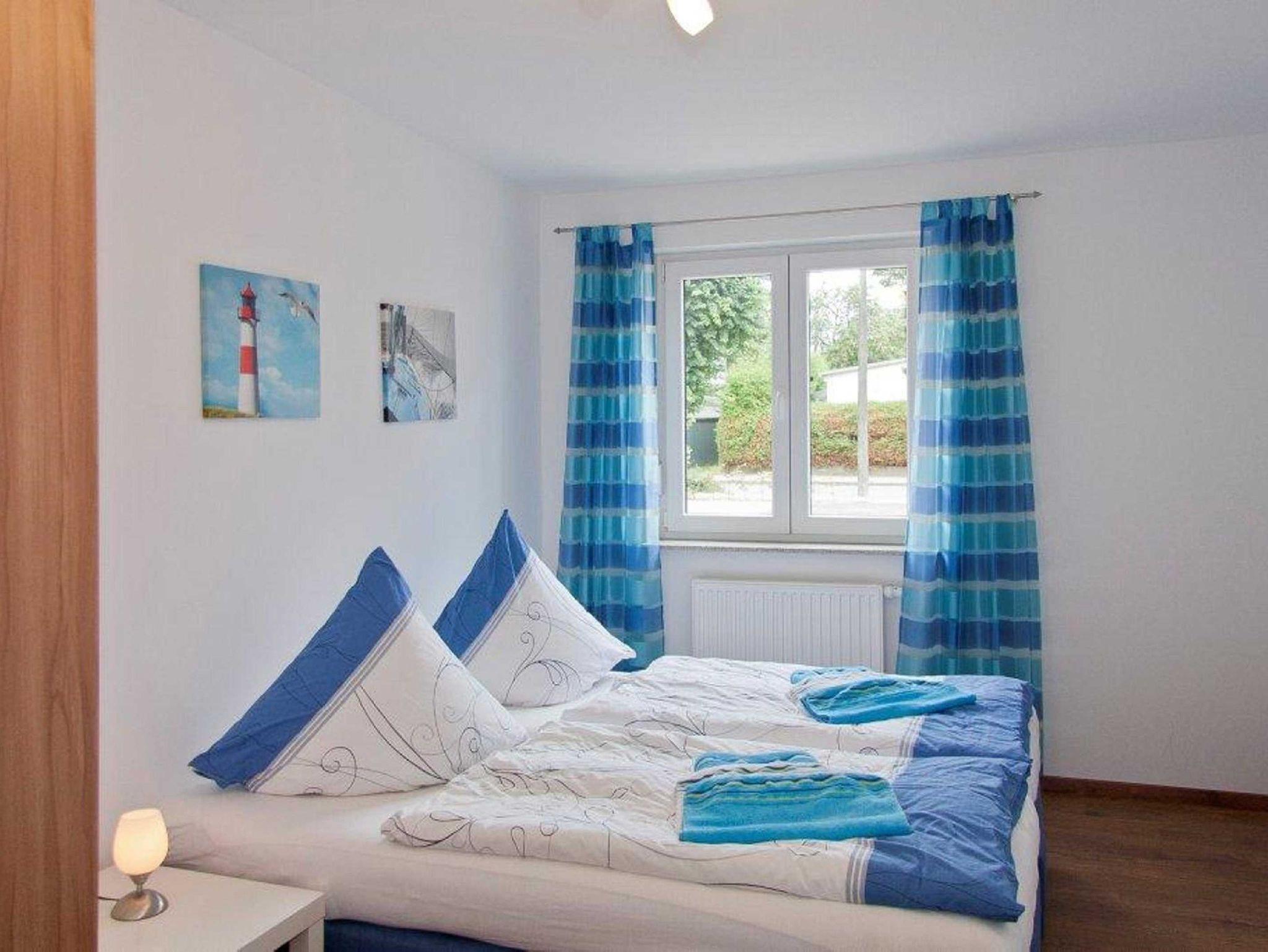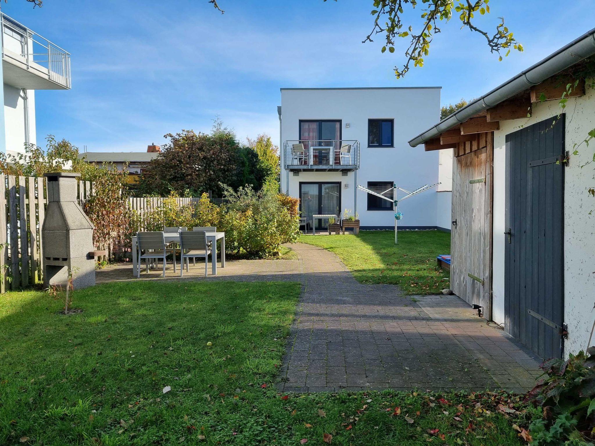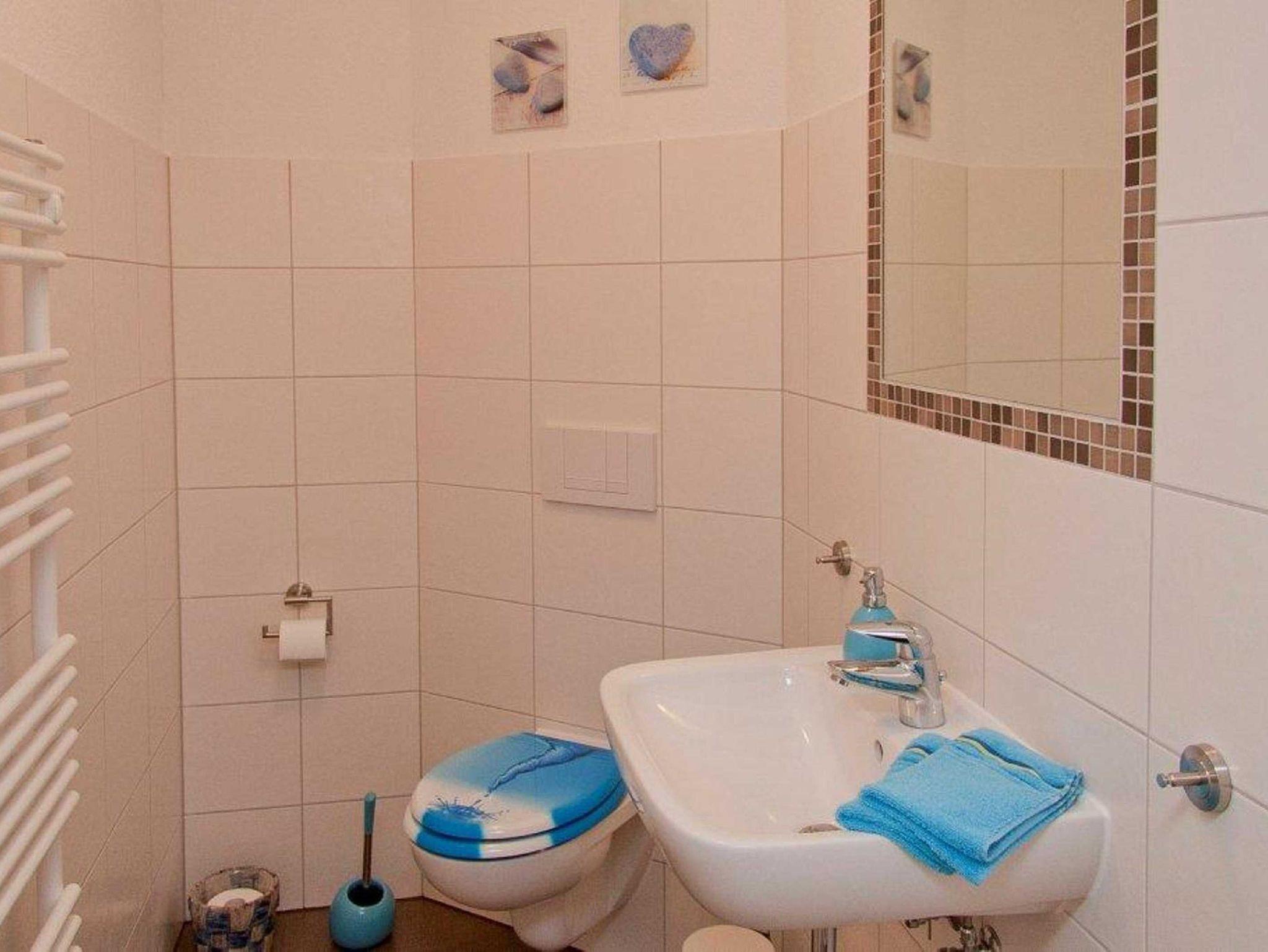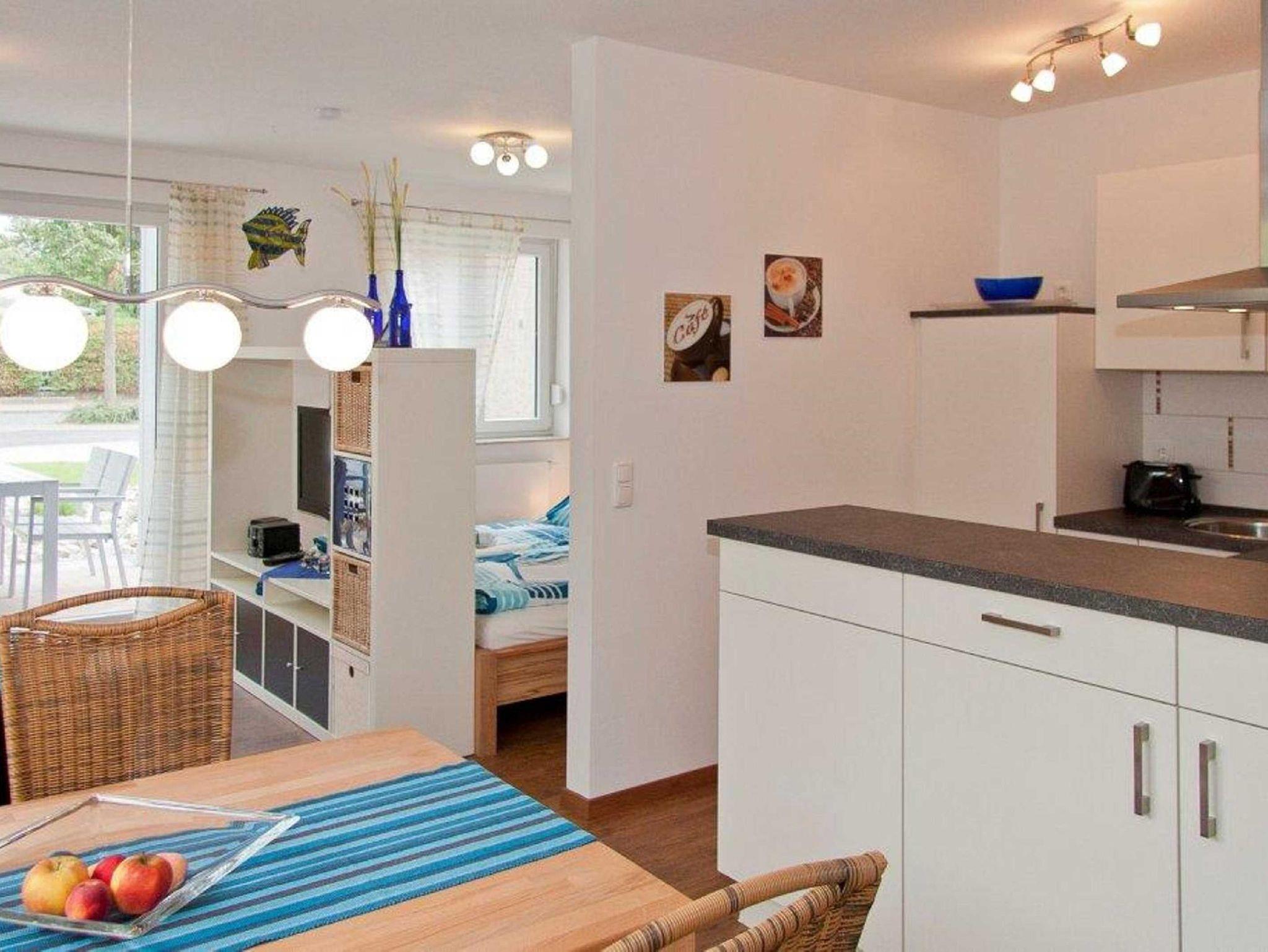 Nichtraucher-Ferienwohnung für max. vier Personen buchbar mit 69 qm. Die Wohnung ist modern und stilvoll nach dem Element Wasser in gehobener Qualität eingerichtet und verfügt über ein lichtdurchflutetes Wohn-/ Schlafzimmer mit Ledercouch und Sesseln und einem Doppelbett, das zum Wohlfühlen einlädt. Die offene Einbauküche ist voll ausgestattet (Herd/Backofen, Spülmaschine, Kühlschrank, Gefrierschrank, Kaffeemaschine, Toaster, Wasserkocher, ausreichend Geschirr) und mit einem schönen Esstisch/Stühle komplett. Sie finden ein Bad mit ebenerdiger Dusche und Glastrennwand/ Waschtisch und ein separates WC mit Waschtisch vor. Ein zweites Schlafzimmer ist ausgestattet mit Boxspringbetten, die variabel als Doppelbett oder als zwei Einzelbetten nutzbar sind. Die Bettwäsche, Handtücher, Badematte und Geschirrtücher sind für den Aufenthalt inklusive. Die Erdgeschosswohnung verfügt über Außenrollläden und hat eine Terrasse mit Gartenmöbeln zur Straßenseite. Im Garten erwartet sie ein Bereich mit festem Grill, Gartenmöbeln, Sandkasten mit Spielzeugen zum gemütlichen Beisammensein und Erholen. Ein abschließbarer Fahrradschuppen mit Steckdosen zum Aufladen der E-Bike steht zur Verfügung. Für jede Wohnung ist ein ausgeschilderter PKW-Parkplatz vorhanden.