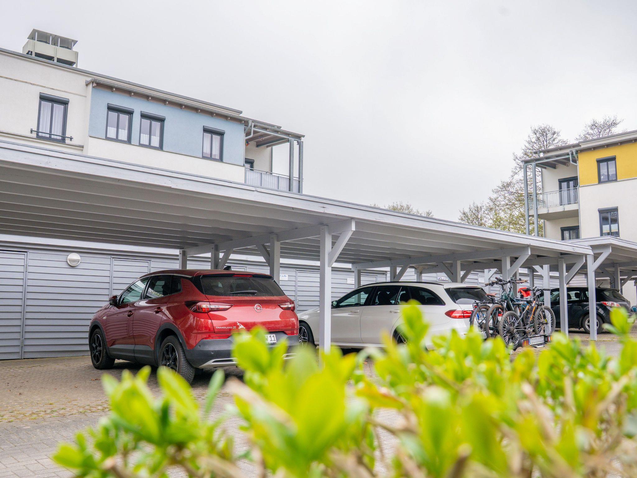 • PKW-Stellplatz (Carport), eigener Fahrradschuppen und Bollerwagen für die kleinen Gäste