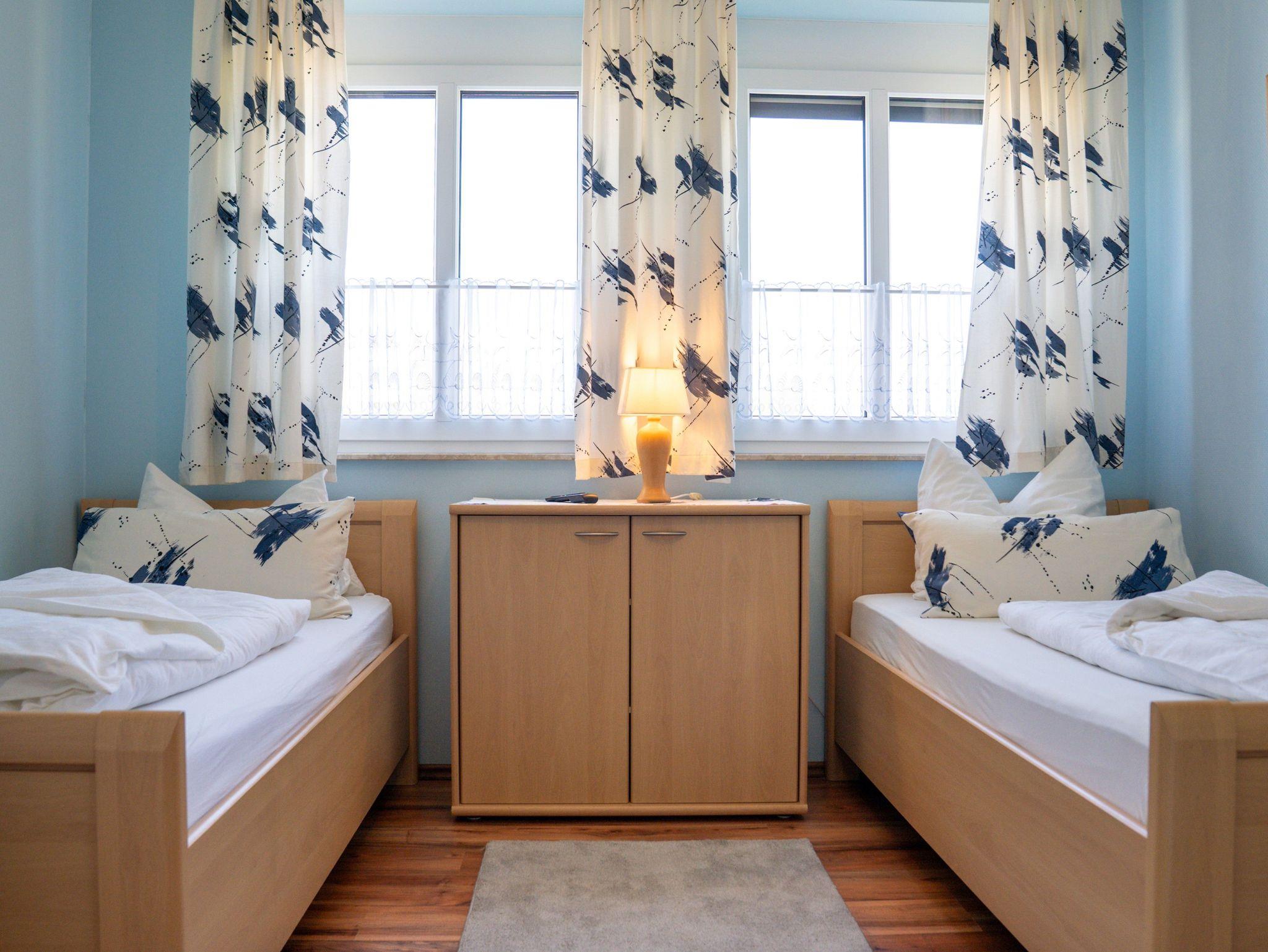 • Schlafraum mit zwei Einzelbetten und TV-Gerät