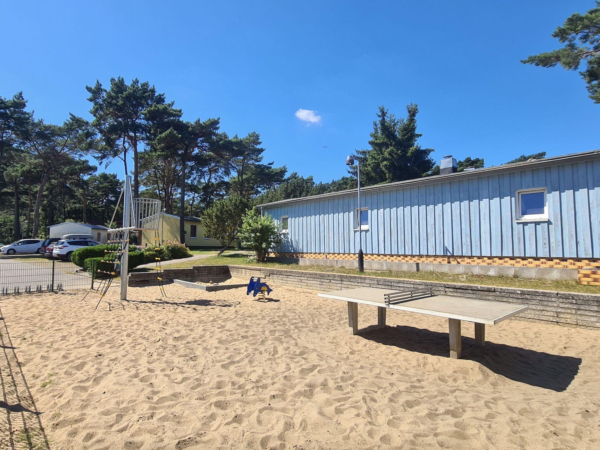 In dem Ferienpark befindet sich ein kleiner Spielplatz und eine Tischtennisplatte.