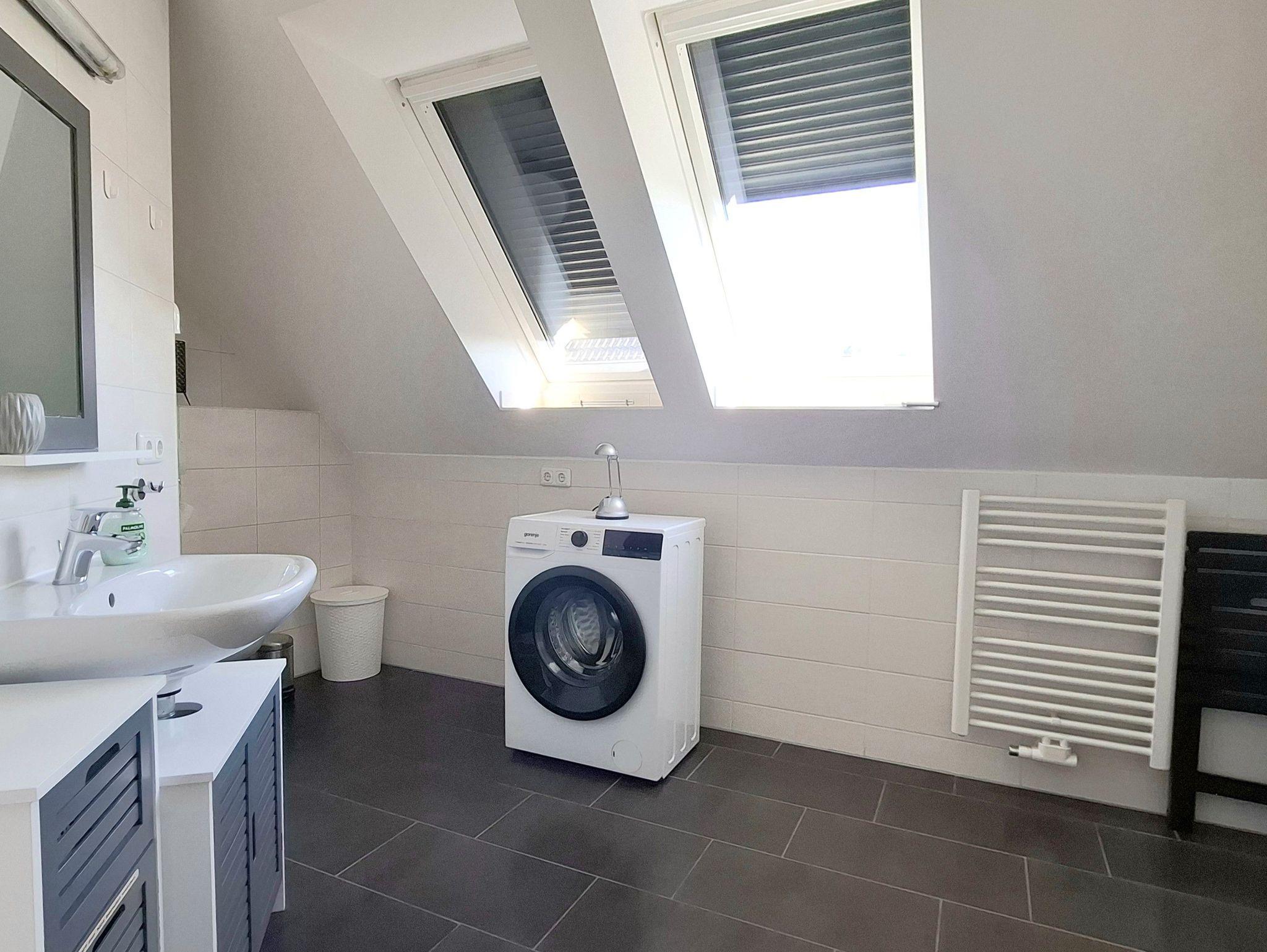 Das moderne Badezimmer ist mit Dusche/WC, Haartrockner und Waschmaschine ausgestattet. Wäscheständer sowie Bügeleisen stehen Ihnen ebenfalls zur Verfügung.