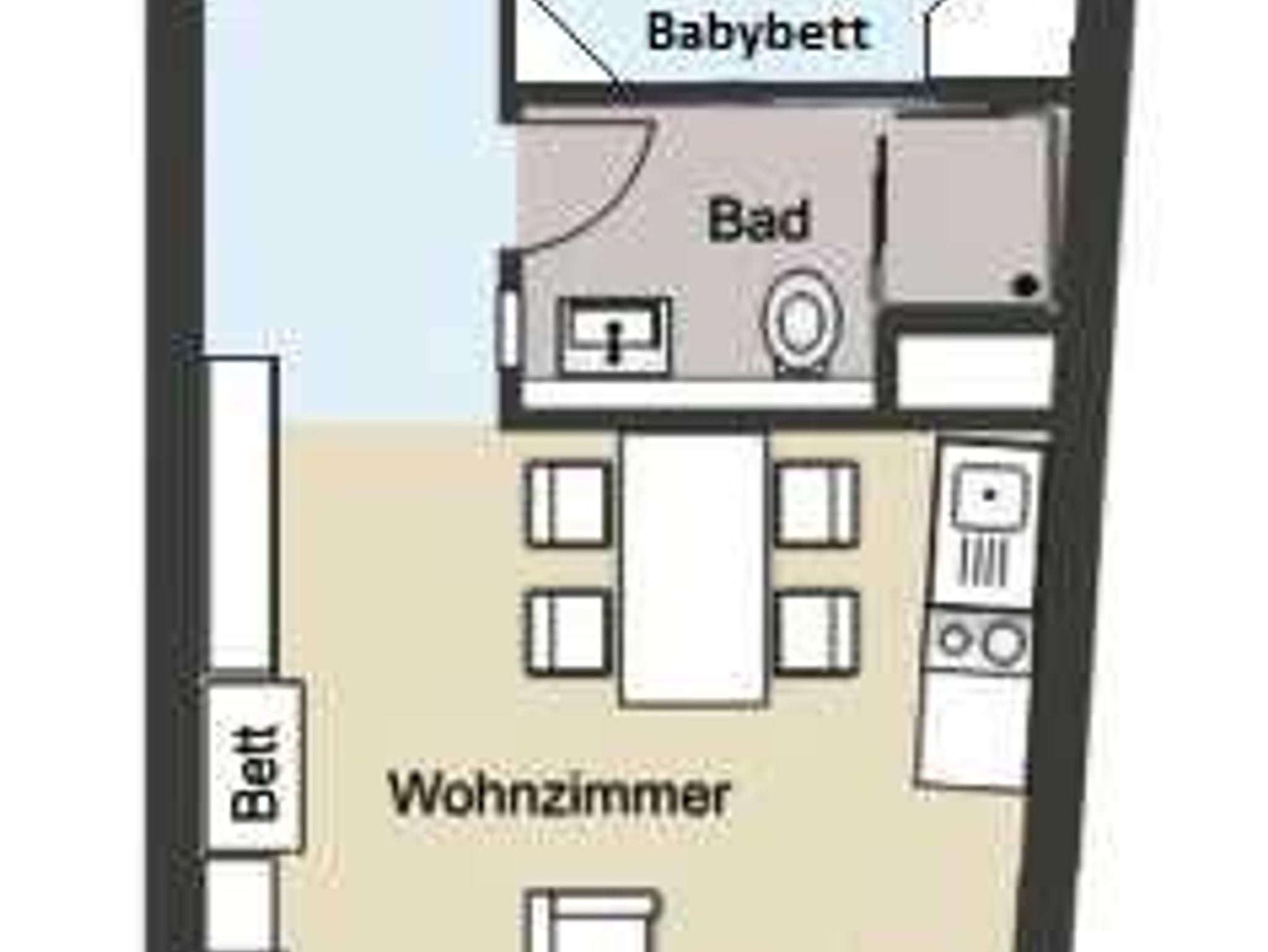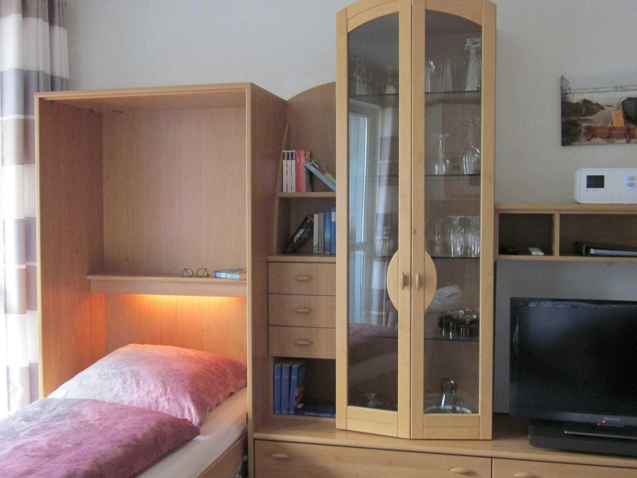 1 Wohnzimmer mit 2 Schrankbetten mit Ess- und Küchenbereich, Farbfernseher, DAB+ Radio mit Bluetooth und USB, WLAN für max. 2 Geräte.