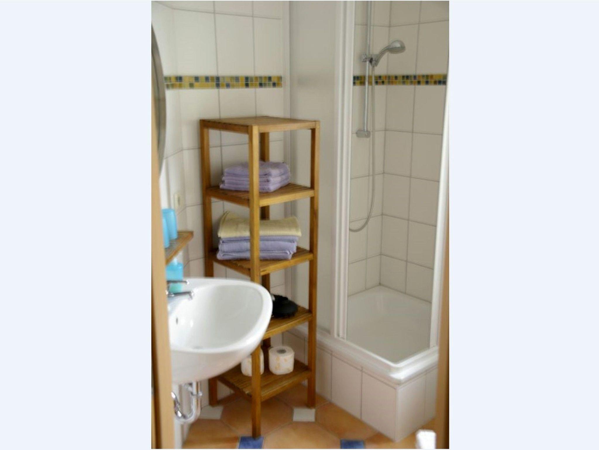 Das Badezimmer ist mit einer Dusche, WC, Waschbecken und einem Föhn ausgestattet und dank eines Außenfensters gut belüftet. Wir wünschen Ihnen einen angenehmen und erholsamen Aufenthalt in unserer Ferienwohnung!