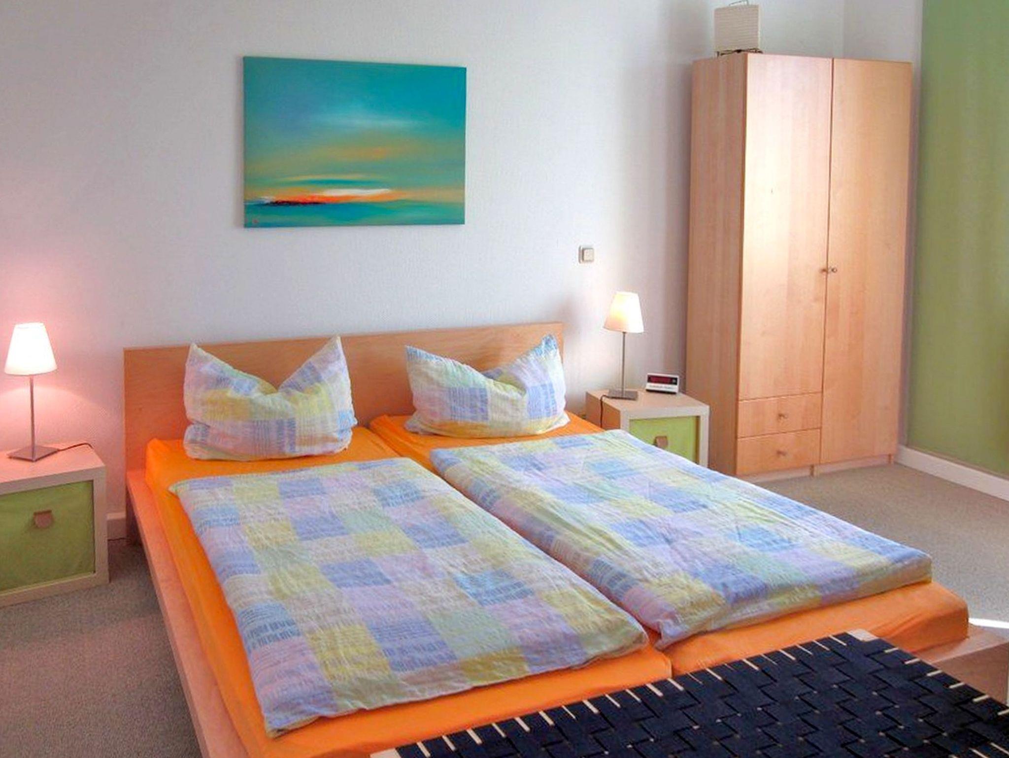 Im Schlafzimmer steht Ihnen ein großes Doppelbett und ein Kleiderschrank mit ausreichend Stauraum zur Verfügung. Die vollständig ausgestattete Küchenzeile ist in einem separaten Raum untergebracht, und von dort aus haben Sie direkten Zugang zu Ihrem privaten Balkon, der nach Süden ausgerichtet ist - der perfekte Ort, um das herrliche Ostseewetter zu genießen.