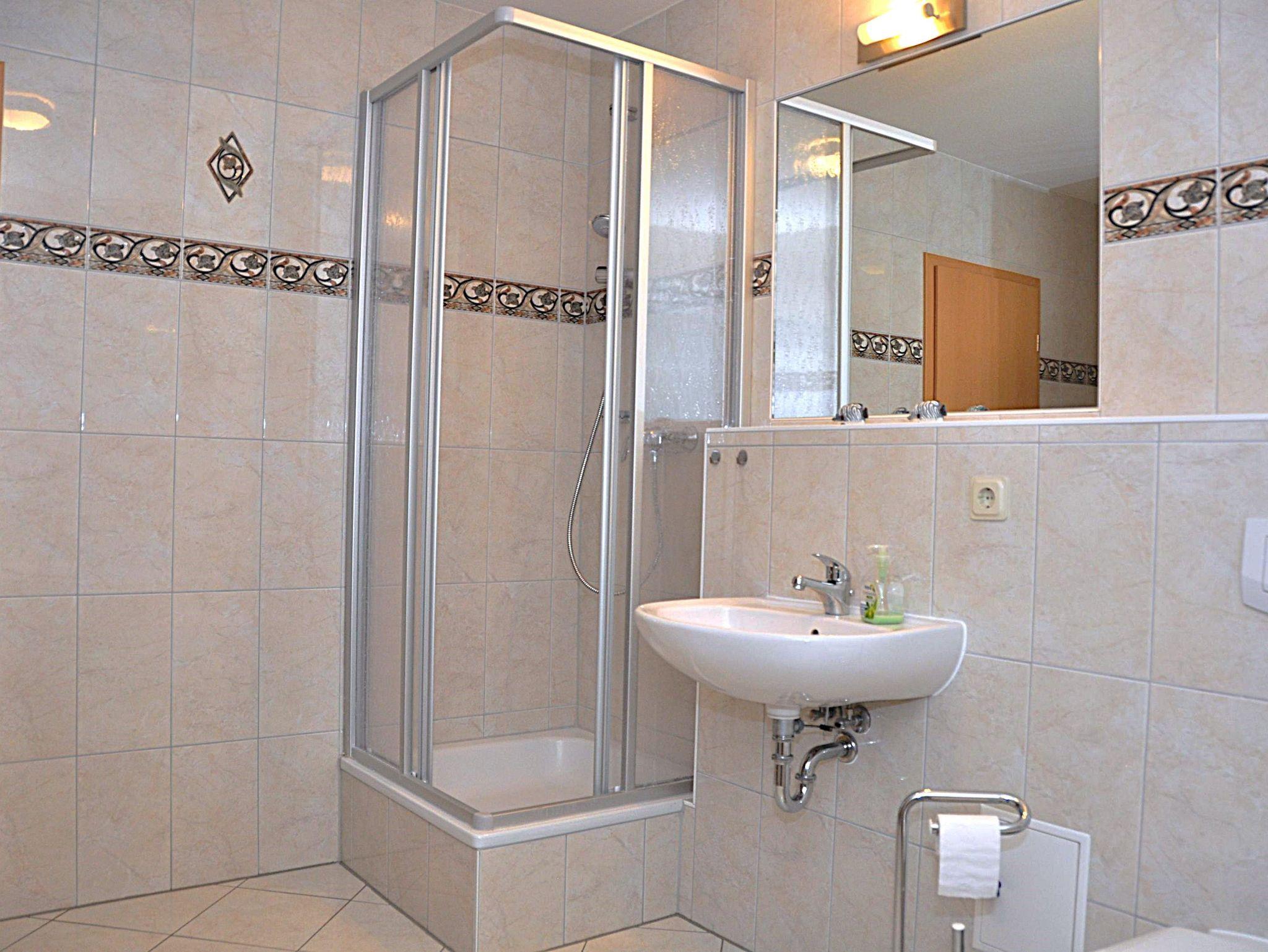 Das helle Tageslichtbad ist mit Badewanne, separater Dusche und WC ausgestattet.