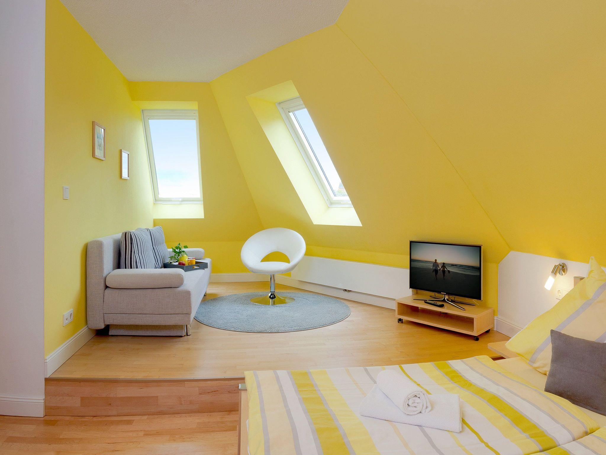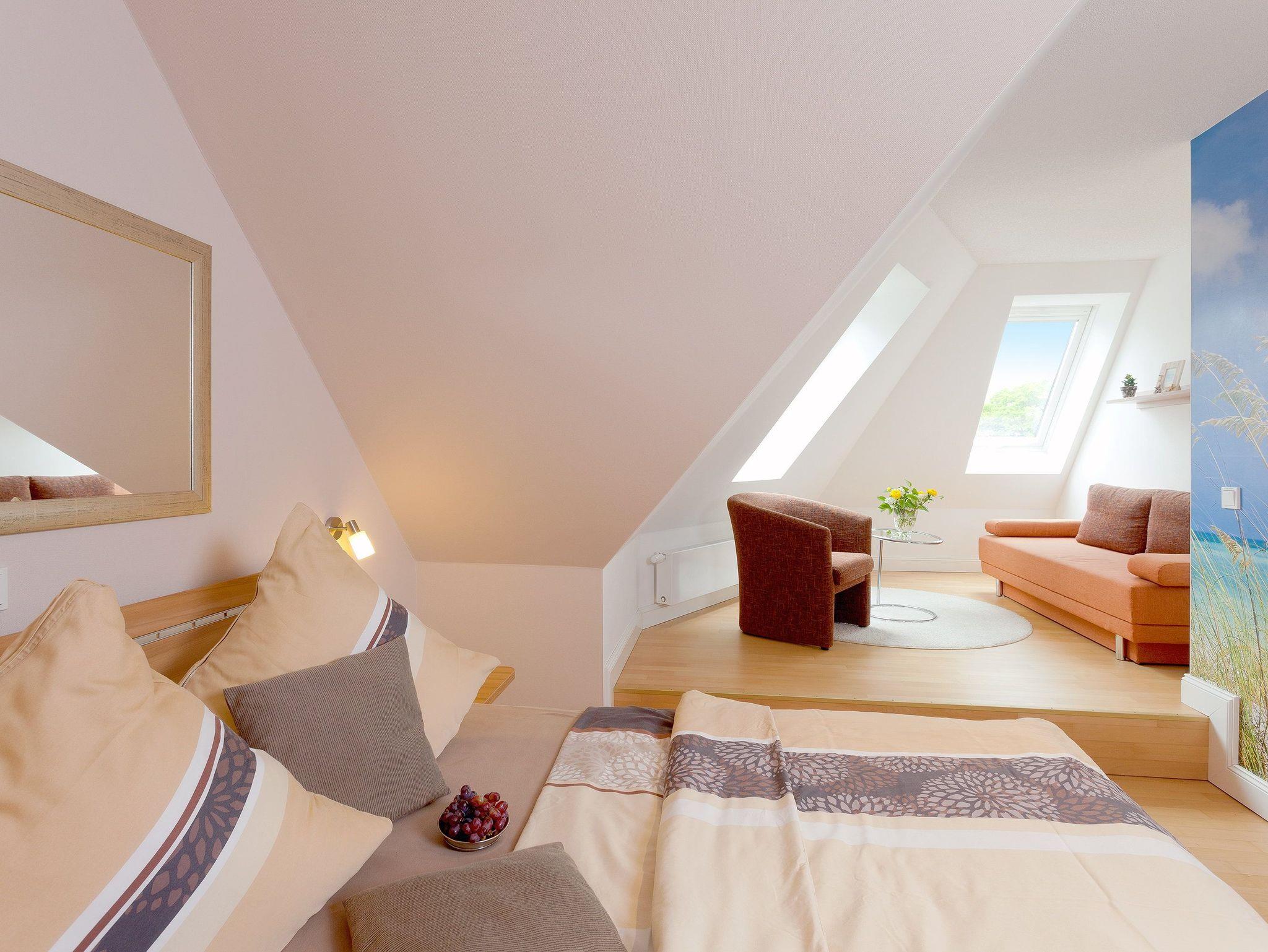 Die beiden Schlafräume verfügen über je ein Doppelbett (je 180 x 220cm / zwei getrennte Matratzen) sowie einen gemütlichen Relaxbereich mit Doppelschlafcouch (je 160 x 180cm) sowie eines der beiden über einen 32 Zoll LED TV sowie CD Radio.