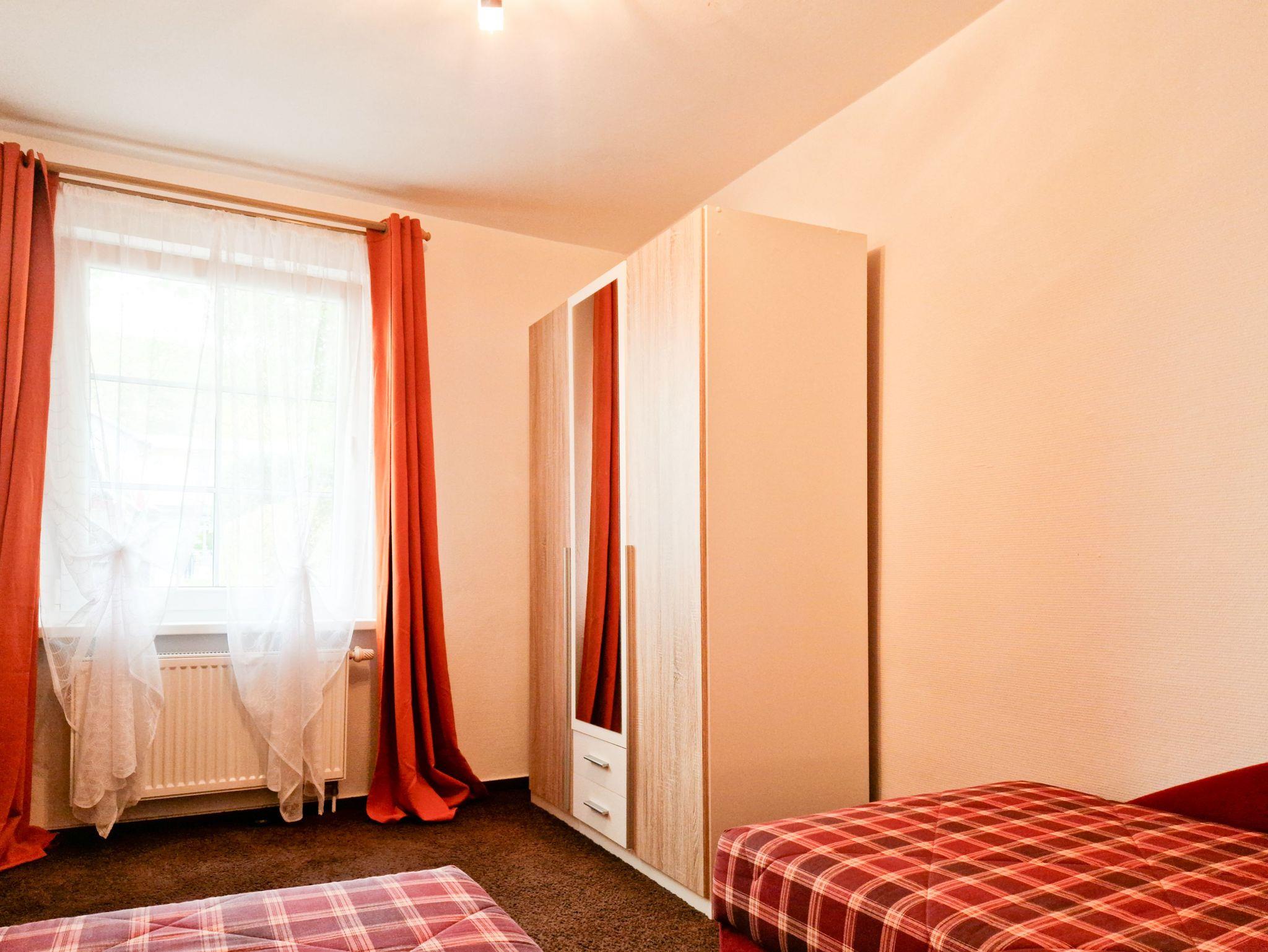 Die Wohnung bietet zwei liebevoll eingerichtete Schlafzimmer: eines mit einem bequemen Doppelbett und das andere mit zwei gemütlichen Einzelbetten - perfekt für Freunde oder Familienmitglieder, die gemeinsam entspannen möchten.