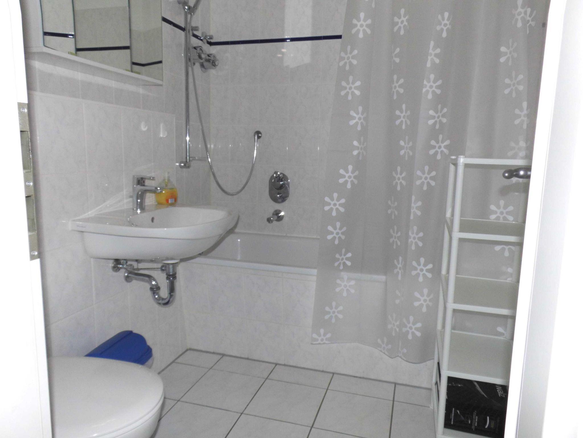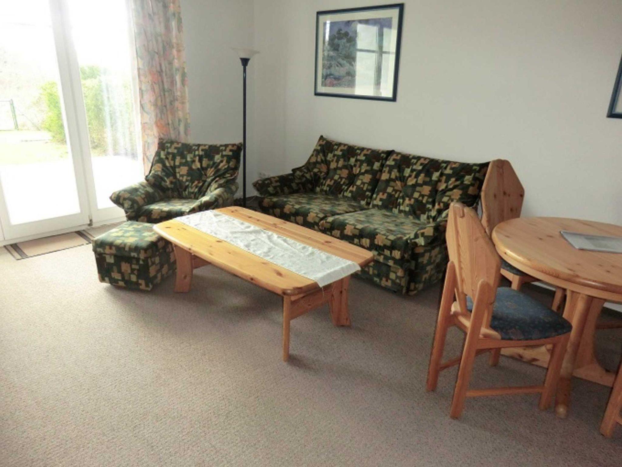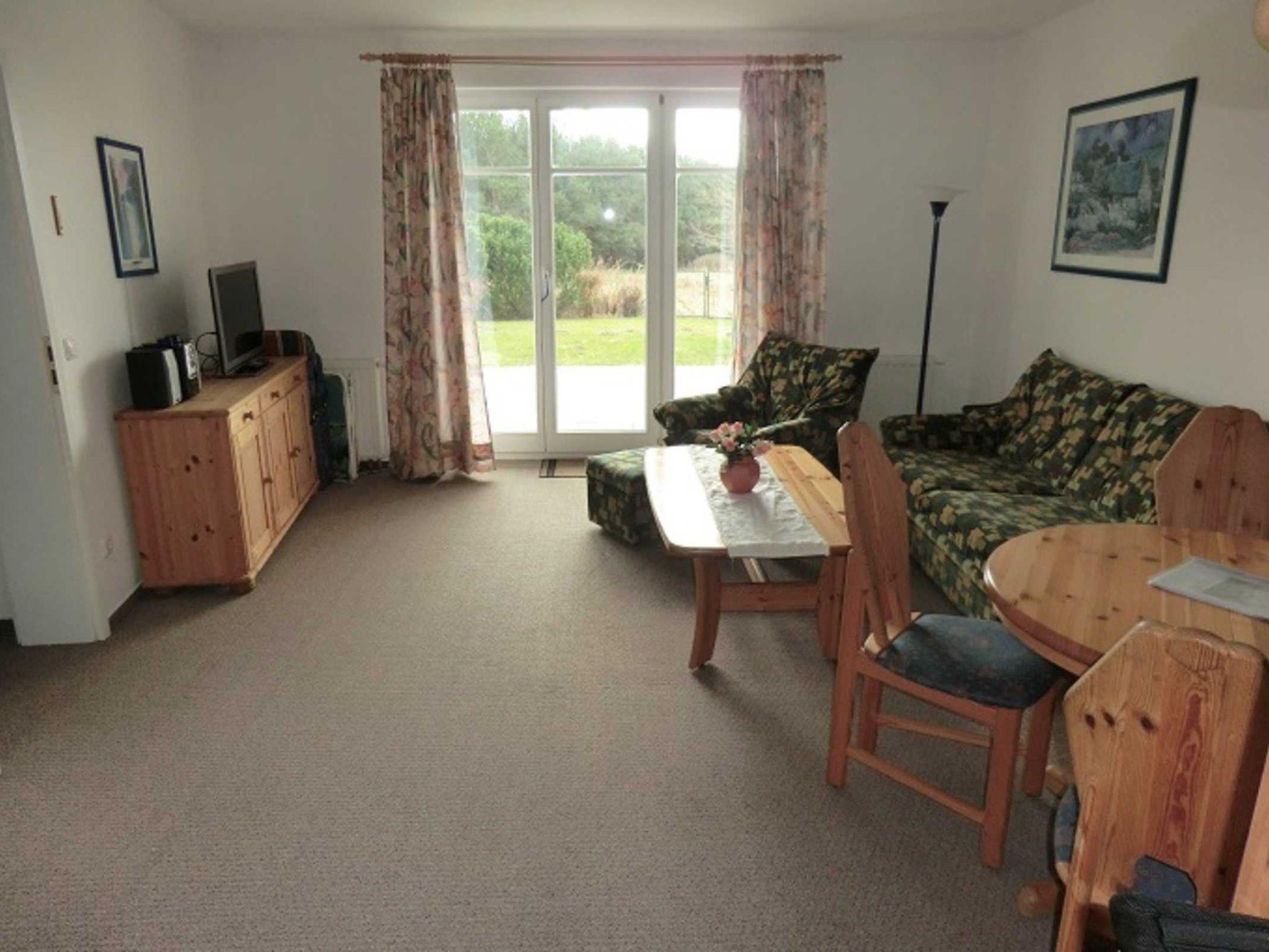 Die Parterre-Wohnung hat eine Terrasse die nach Süden ausgerichtet ist; mit 4 Terrassenstühlen, Tisch und Sonnenschirm. Die Wohnung ist hell und freundlich eingerichtet und verfügt über SAT-TV und Radio. Eine gut ausgestattete Küche mit Geschirrspüler, vollständigem Geschirr, Küchengeräten, Kaffeemaschine, Wasserkocher und Toaster sind vorhanden. Schlafzimmer mit Doppelbett für 2 Personen; Wohnzimmer mit Schlafsofa für 2 Personen; Babyreisebett kann gemietet werden.