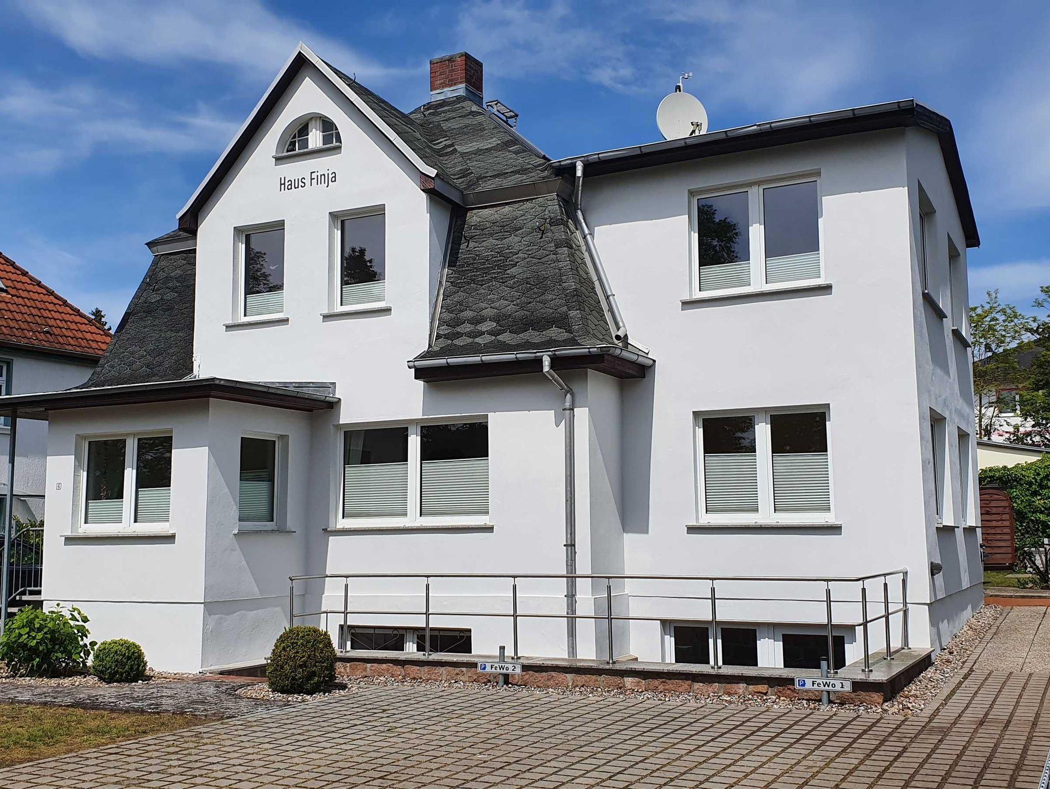 Das Ferienhaus Finja im stil einer Villa verfügt über die Ferienwohnungen 1 und 2 sowie im hinteren Bereich des Grundstücks über einen separaten Bungalow, hier befindet sich die Ferienwohnung 4.