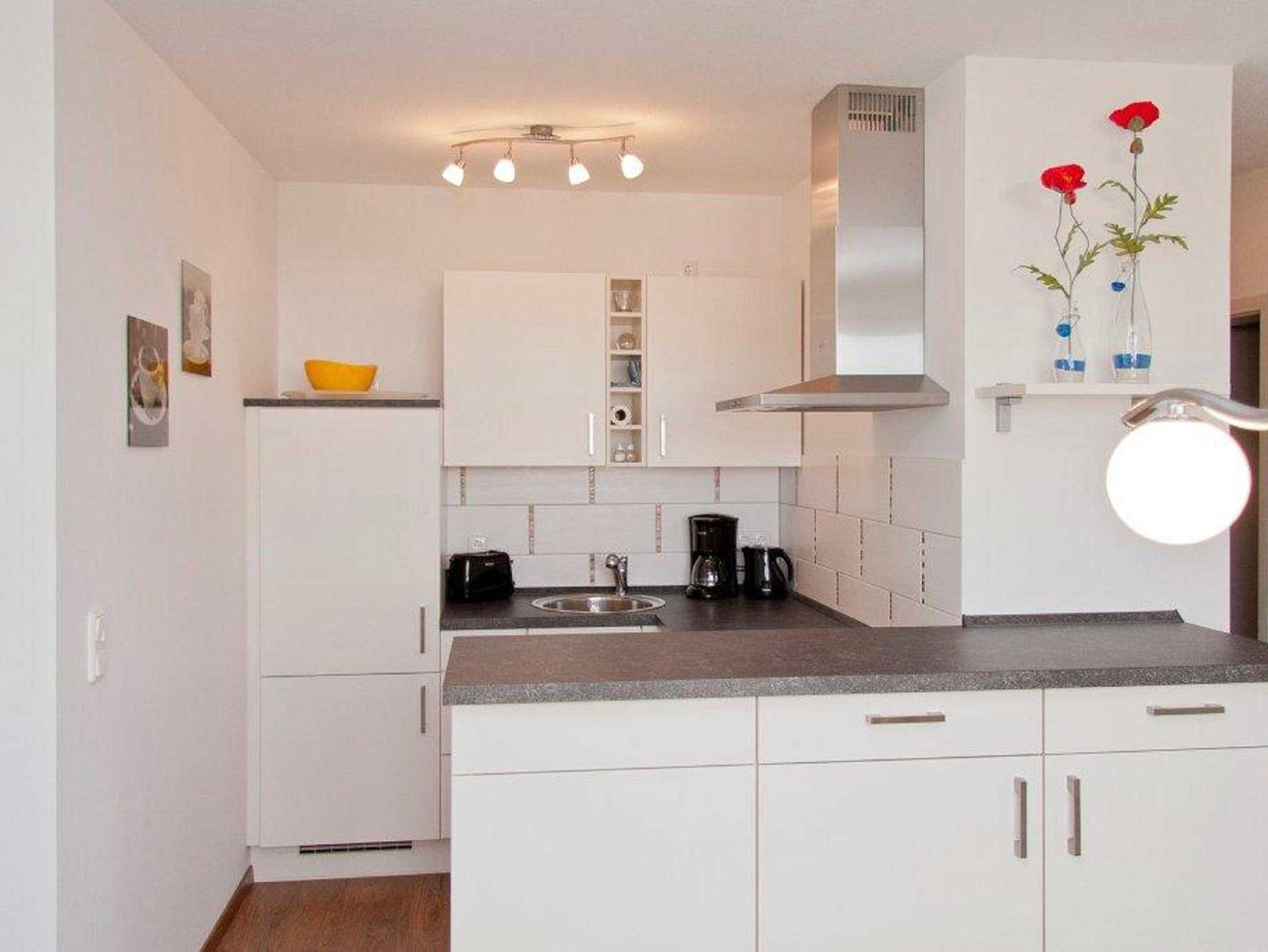 Nichtraucher-Ferienwohnung für max. vier Personen mit 69 qm. Die Wohnung ist modern und stilvoll nach dem Element Luft in gehobener Qualität eingerichtet und verfügt über ein lichtdurchflutetes Wohn-/ Schlafzimmer mit Ledercouch und Sesseln und einem Doppelbett, das zum Wohlfühlen einlädt. Die offene Einbauküche ist voll ausgestattet (Herd/Backofen, Spülmaschine, Kühlschrank, Gefrierschrank, Kaffeemaschine, Toaster, Wasserkocher, ausreichend Geschirr) und mit einem schönen Esstisch/Stühle komplett. Sie finden ein Bad mit ebenerdiger Dusche und Glastrennwand/ Waschtisch und ein separates WC mit Waschtisch vor. Ein zweites Schlafzimmer ist ausgestattet mit Boxspringbetten, die variabel als Doppelbett oder als zwei Einzelbetten nutzbar sind. Die Bettwäsche, Handtücher, Badematte und Geschirrtücher sind für den Aufenthalt inklusive. Die Obergeschosswohnung hat einen Balkon mit Gartenmöbeln zur Straßenseite raus. Im Garten erwartet sie ein Bereich mit festem Grill, Gartenmöbeln, Sandkasten mit Spielzeugen zum gemütlichen Beisammensein und Erholen. Ein abschließbarer Fahrradschuppen mit Steckdosen zum Aufladen der E-Bike steht zur Verfügung. Für jede Wohnung ist ein ausgeschilderter PKW-Parkplatz vorhanden.
