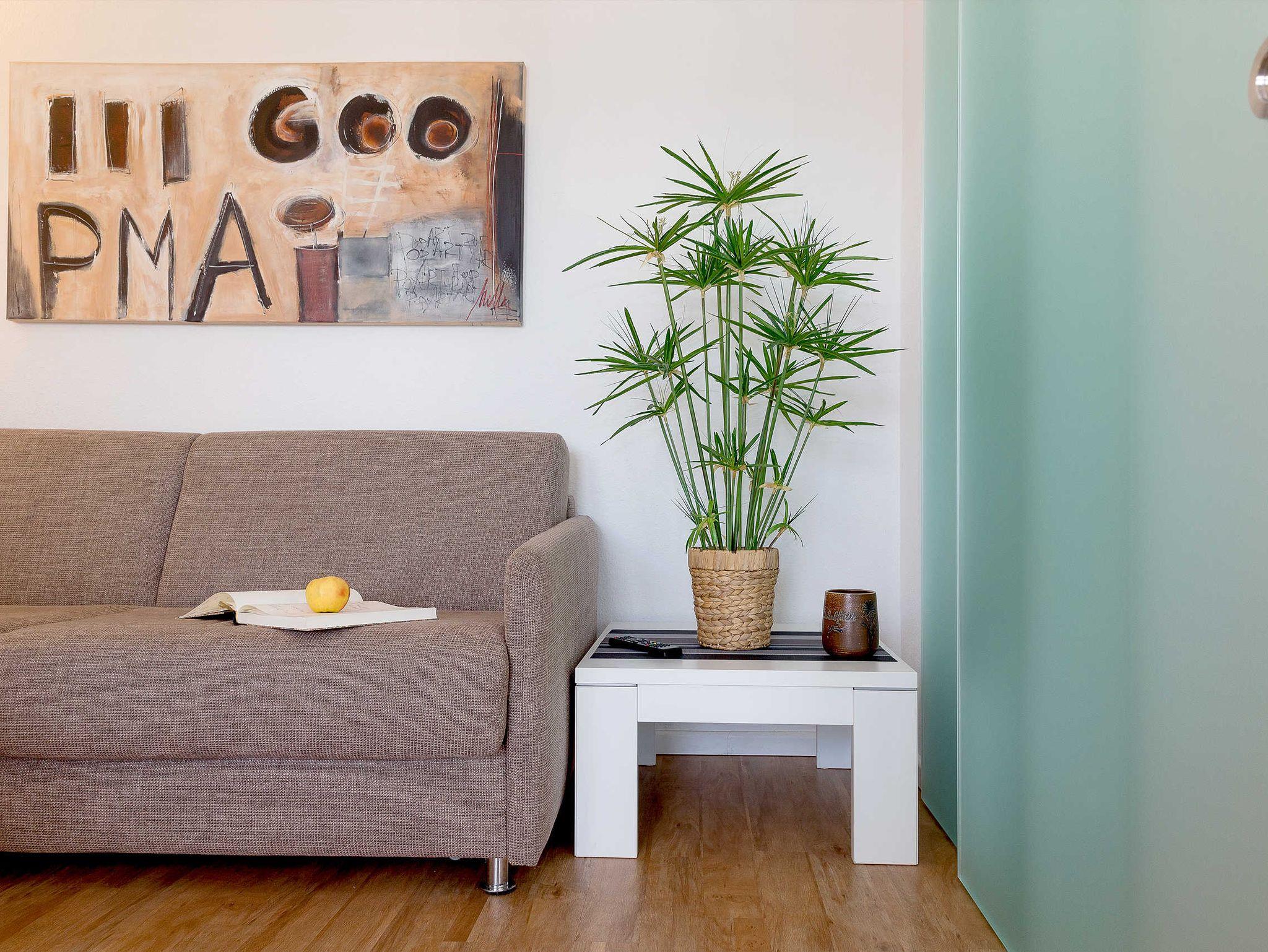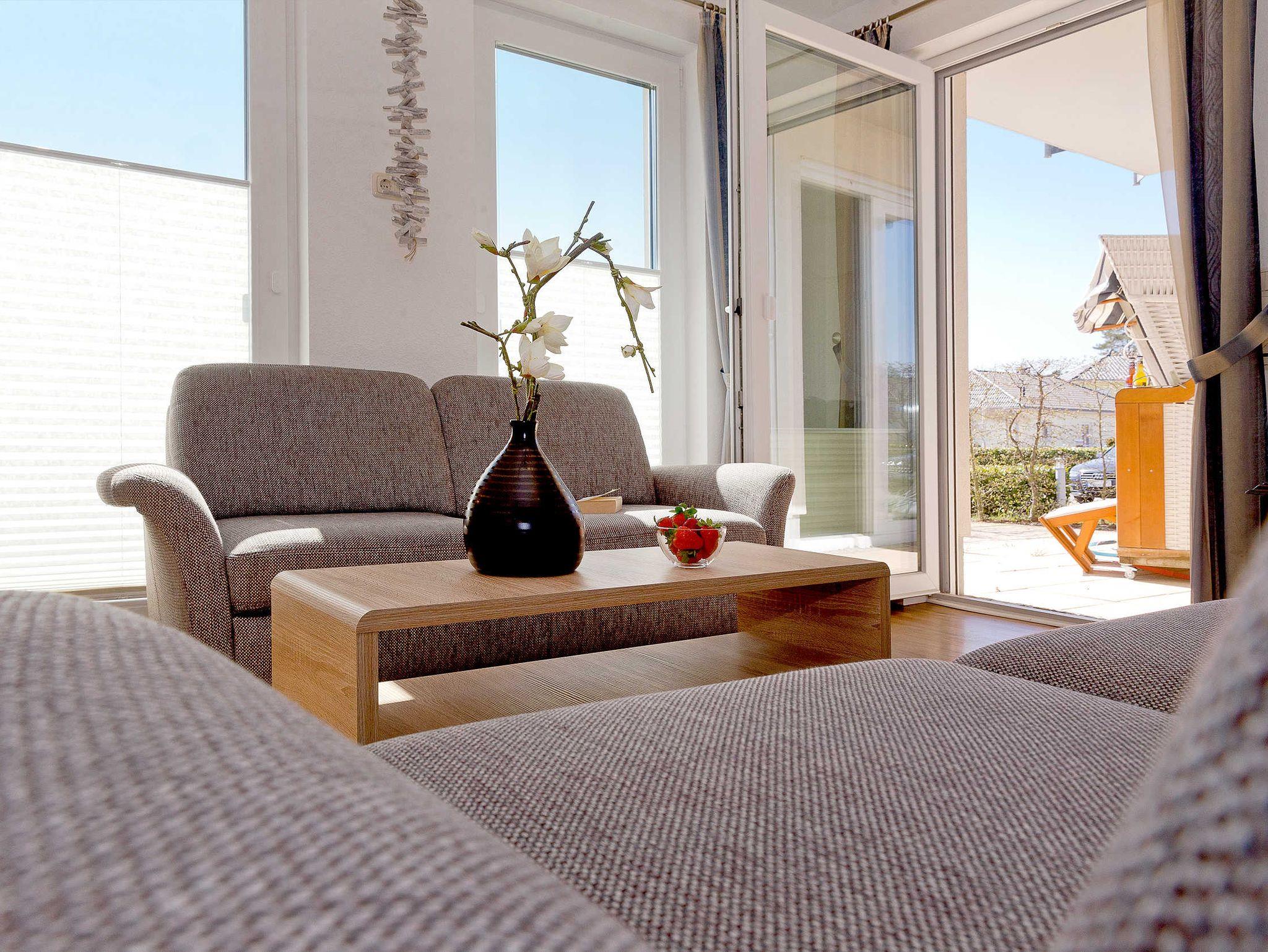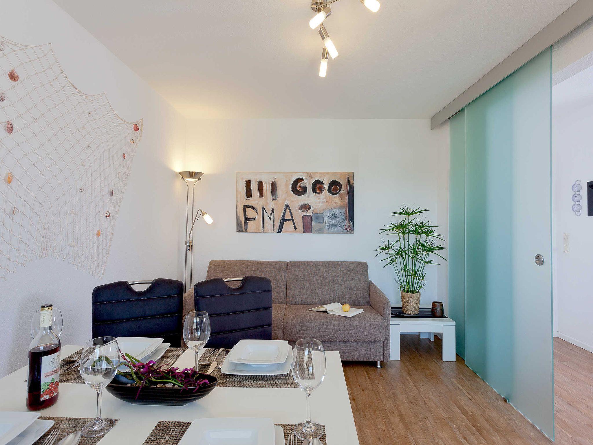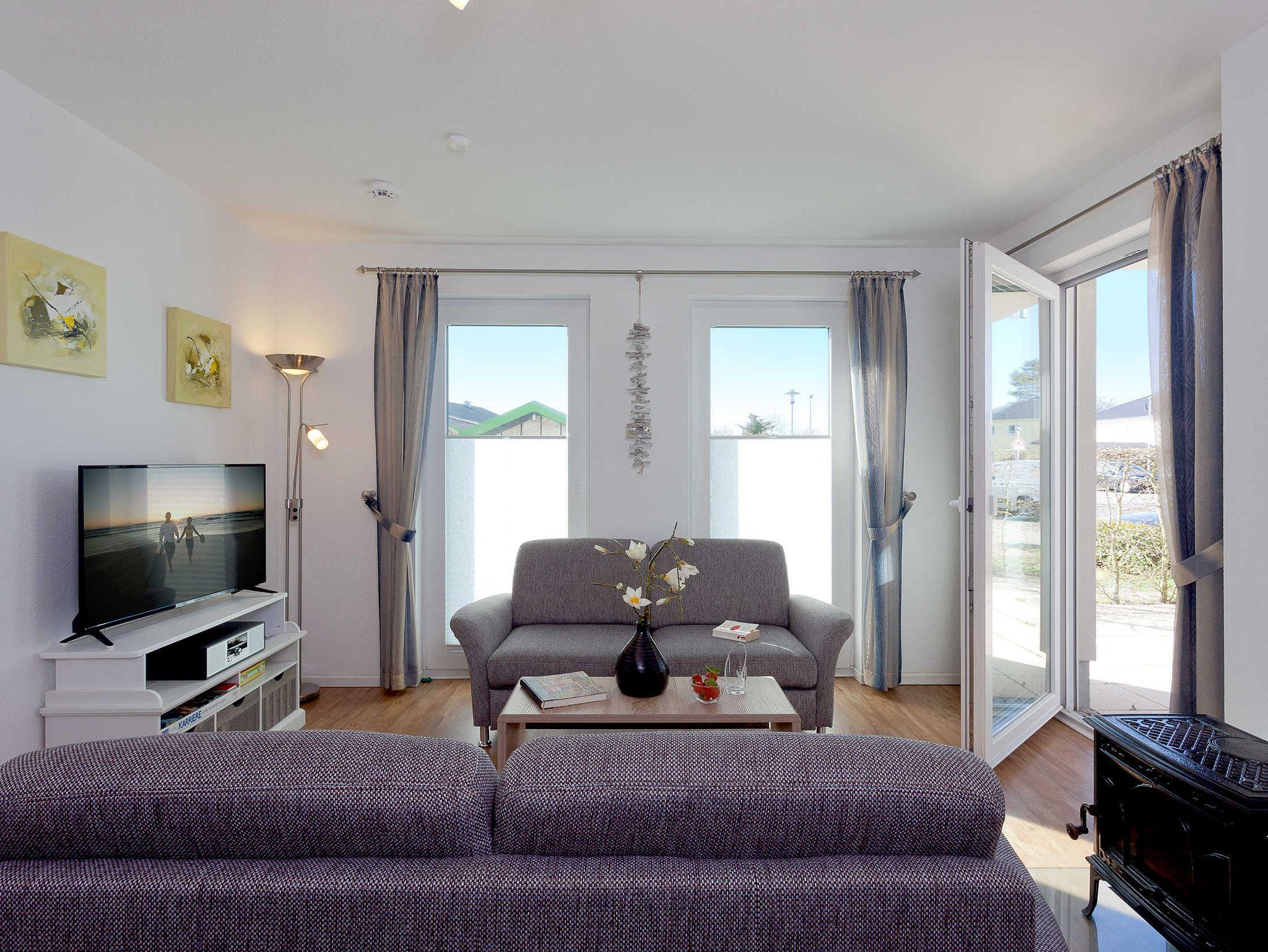 Ein Schlafraum ist mit einem gemütlichen Doppelbett ausgestattet. Der andere Schlafraum hat ein Schlafsofa und ist vom Wohnzimmer durch eine Glastür abgetrennt, in diesem Raum befindet sich auch die Essecke mit Sitzmöglichkeiten für 4 Personen. Es gibt ein großes und behagliches Wohnzimmer mit Fernseher und Stereoanlage. Die integrierte und moderne Küchenzeile bietet genügend Platz zur Selbstversorgung. Das Badezimmer besitzt eine Dusche, ein WC und eine Waschmaschine. Auf der Terrasse können Sie gemütlich den Tag ein- und ausklingen lassen. Ein PKW-Stellplatz steht ihnen natürlich zur Verfügung.