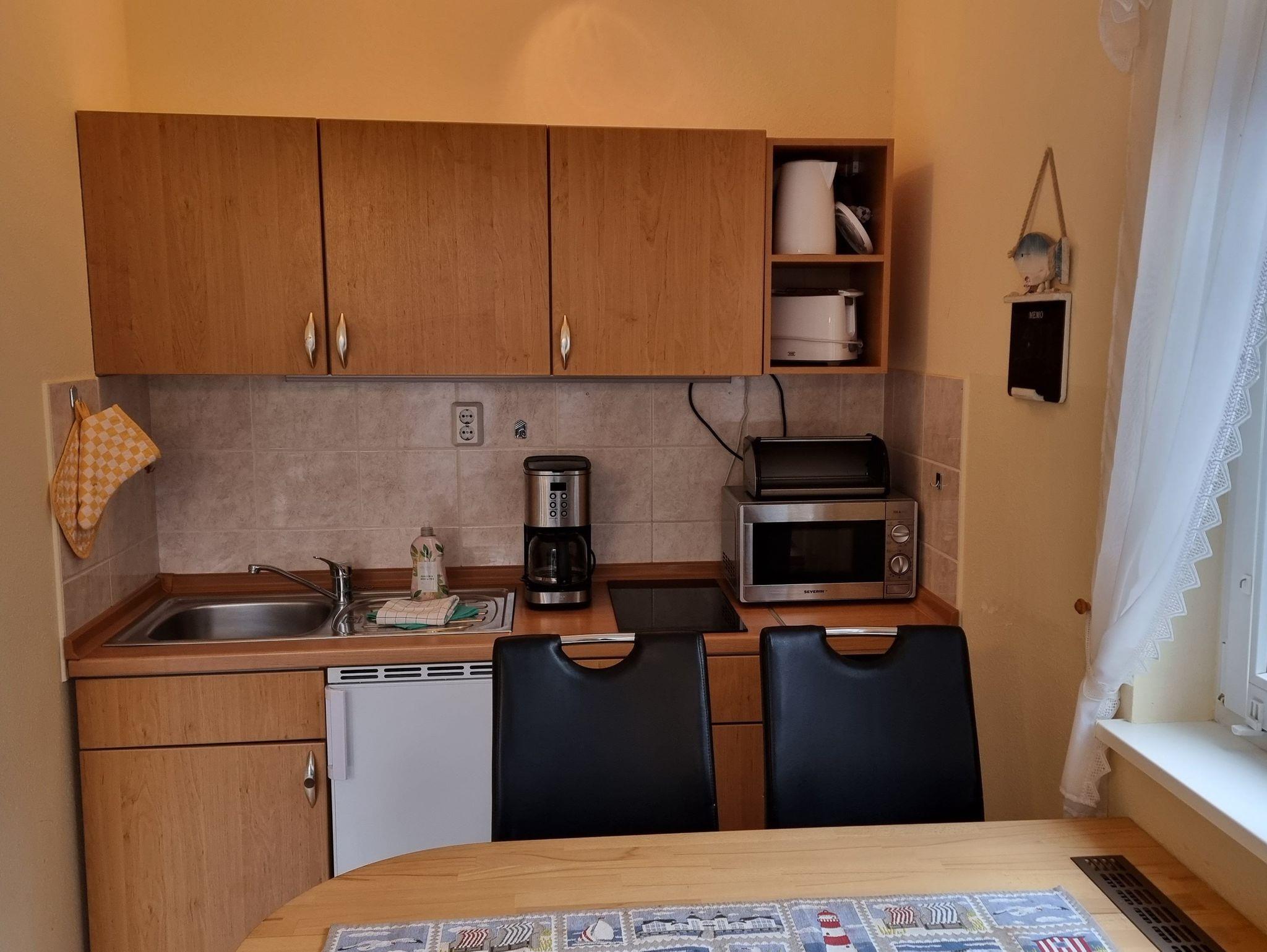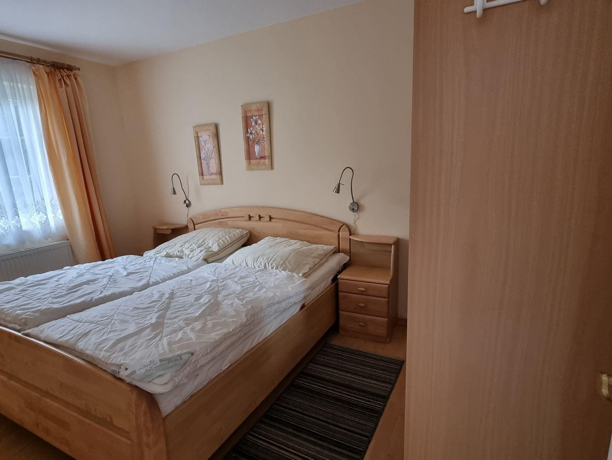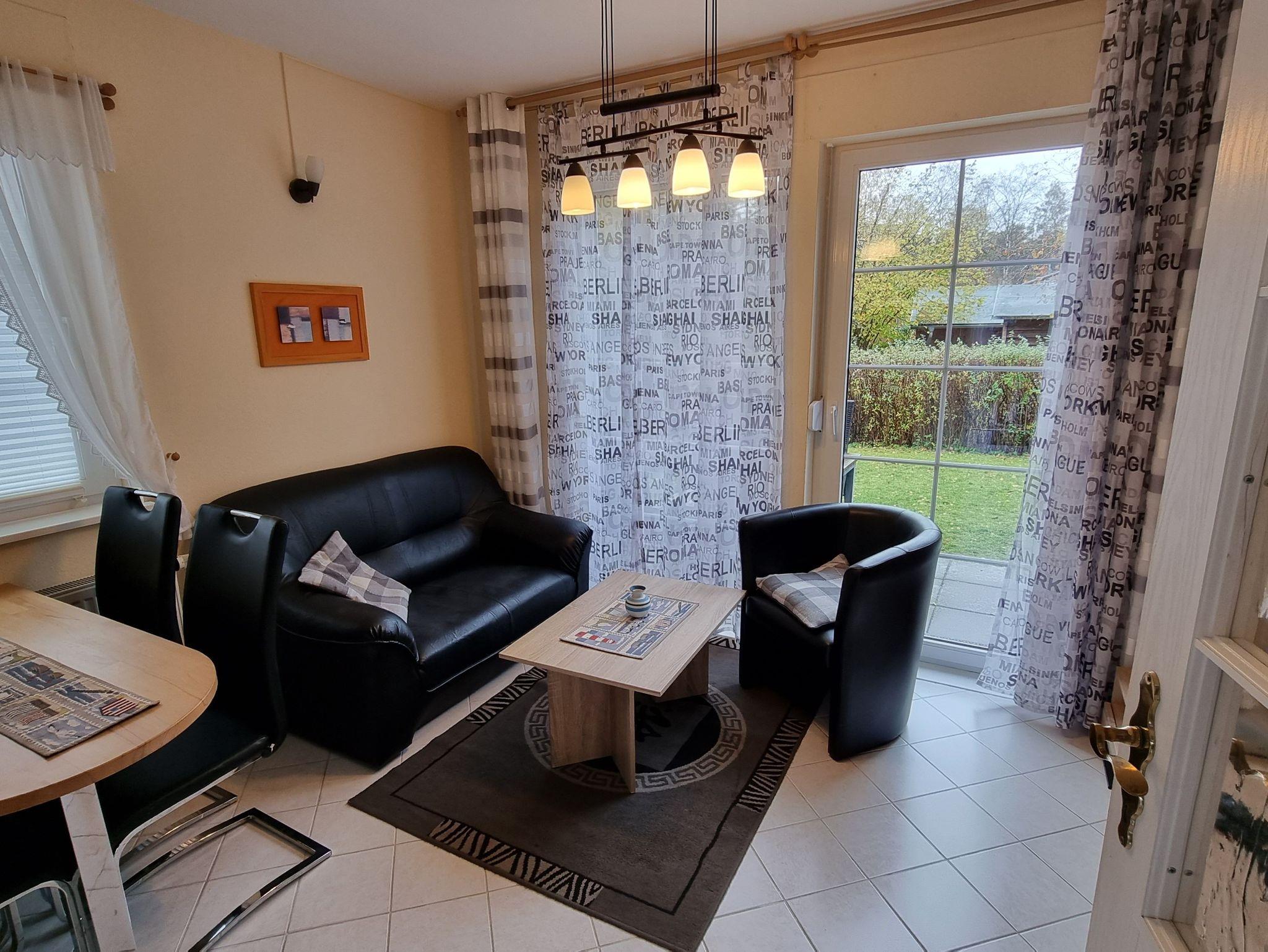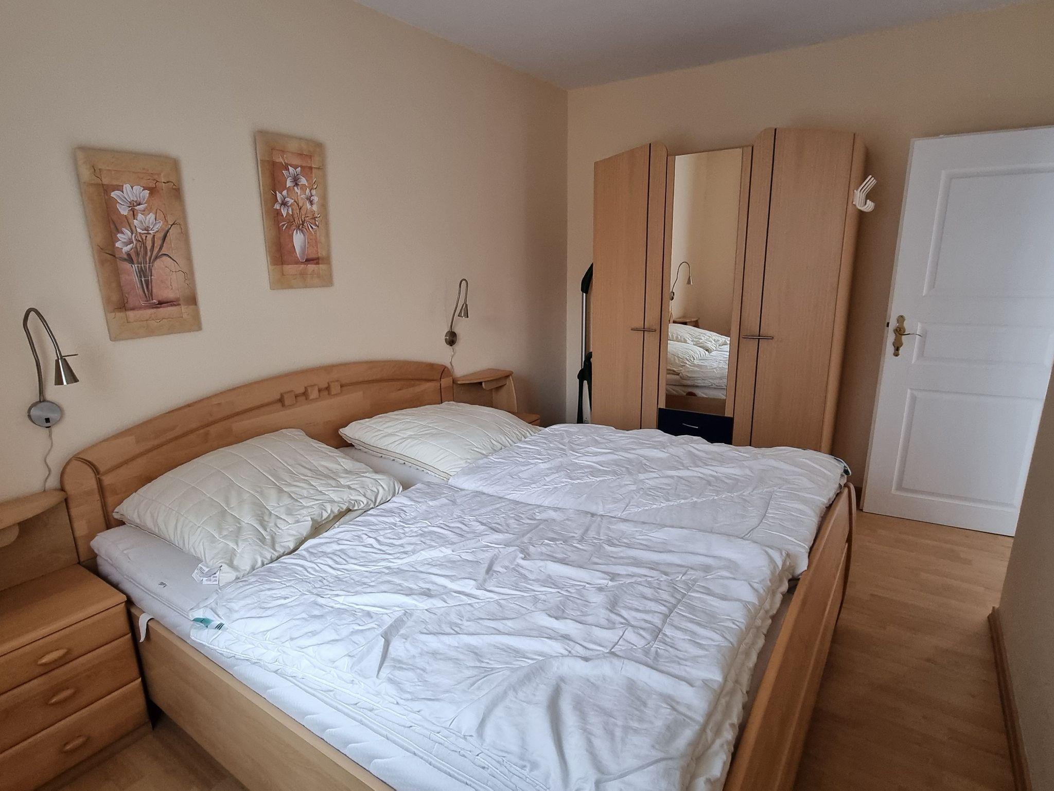 3-Zimmer Appartement (40 m²) im Erdgeschoss mit einer Terrasse und kleinem Gartenstück. Die Wohnung ist ausgestattet mit einer Einbauküche (2-Pl-Herd, Mikrowelle, Toaster, Kaffeemaschine), 2 Schlafzimmern (Etagenbett) und Bad mit Dusche/WC.
