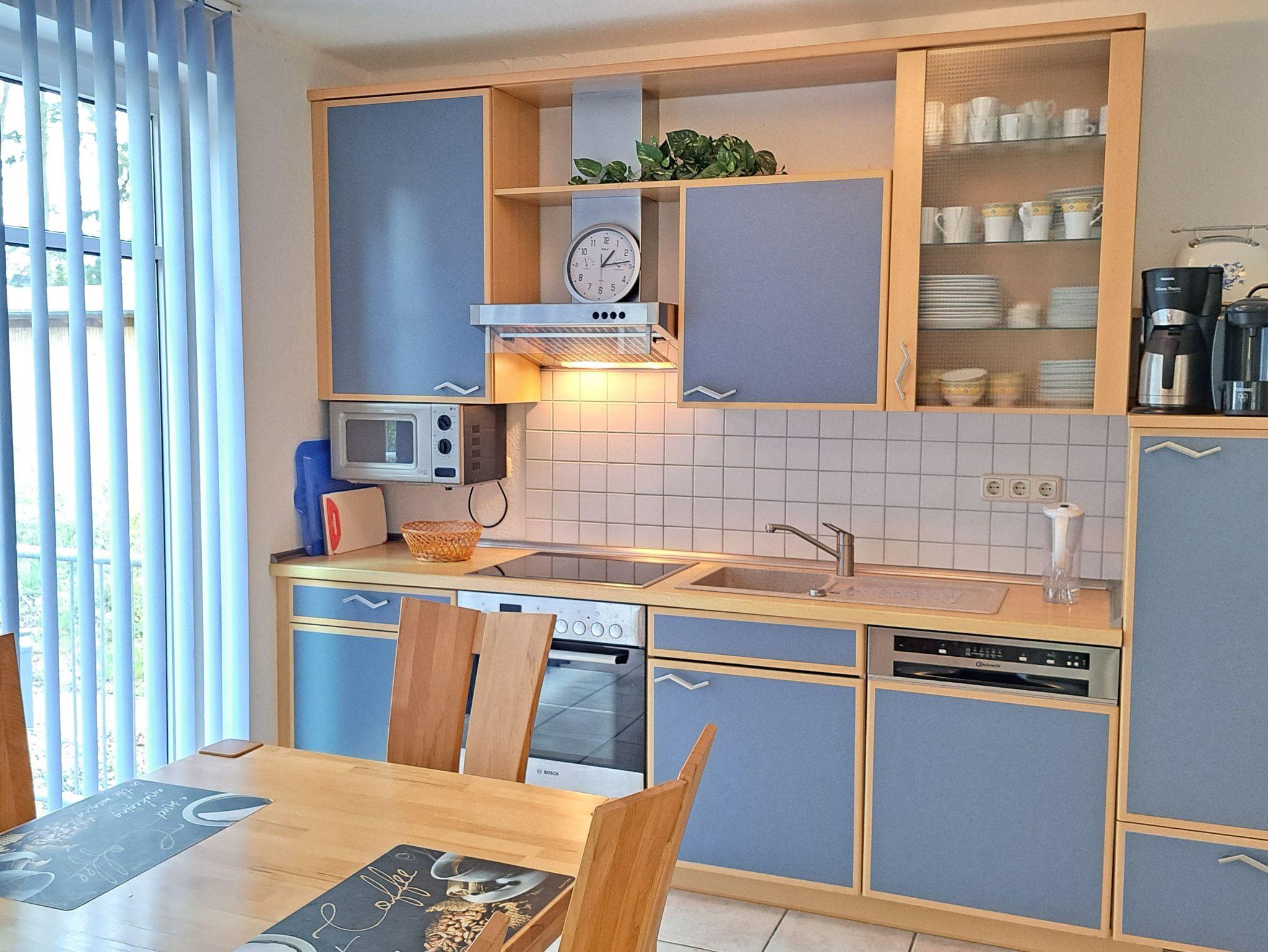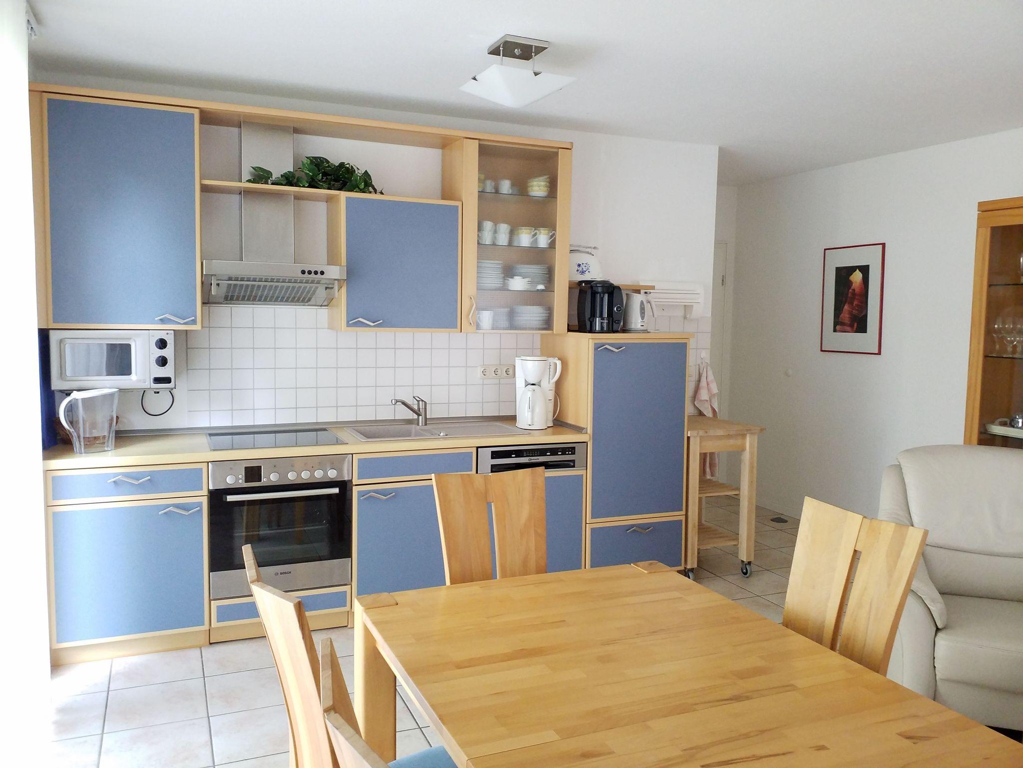 Die 3-Raum-Nichtraucher-Ferienwohnung ist ca. 60m² groß und allergikergerecht eingerichtet, komplett gefliest und mit hochwertigen Buche-Vollholzmöbeln ausgestattet.