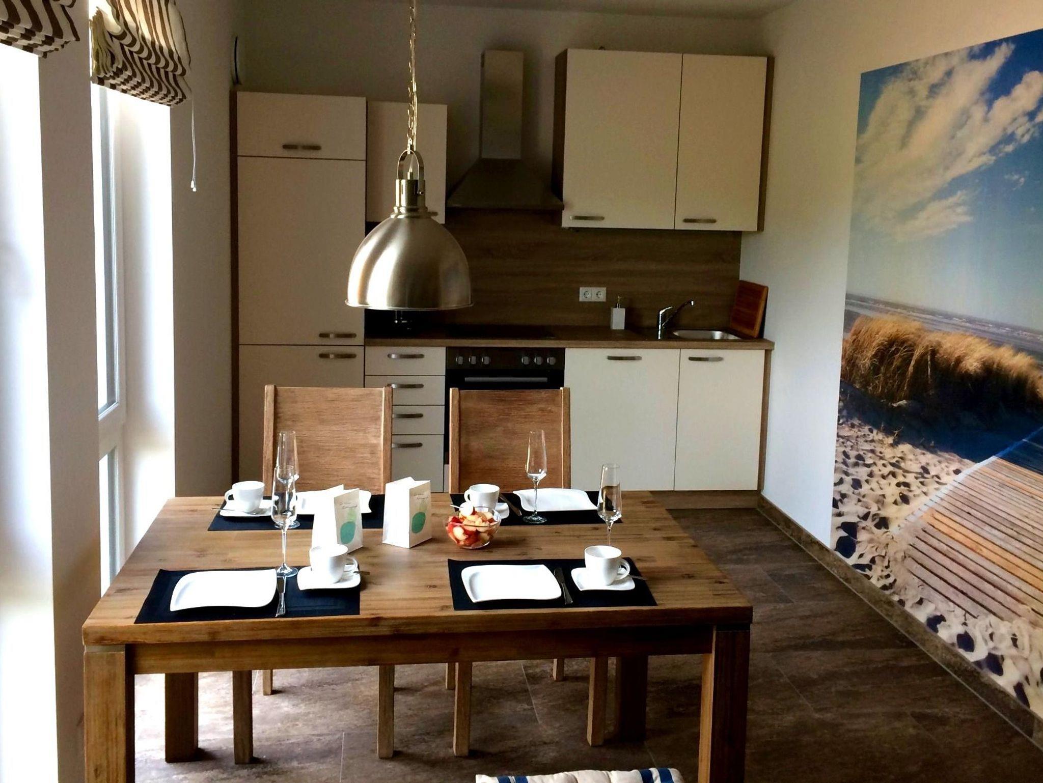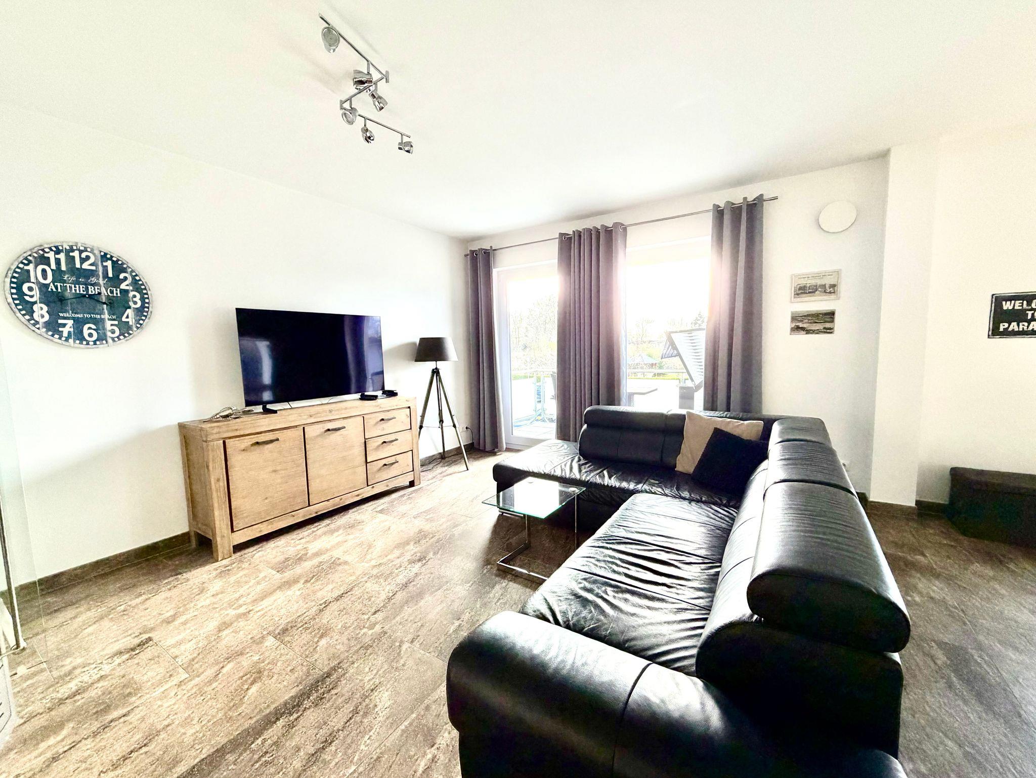 Ein Highlight der Wohnung ist der Balkon, der zur Westseite gelegen ist und mit einem Strandkorb ausgestattet ist der perfekte Ort, um den Sonnenuntergang zu genießen. Besonders in der kälteren Jahreszeit sorgt der Kamin für eine wohlige Wärme und behagliche Stunden.